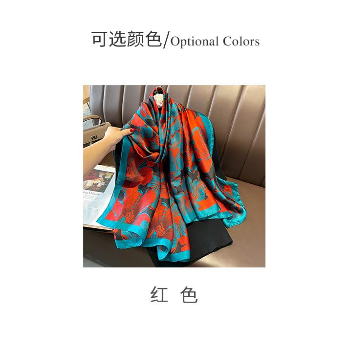 Bufanda de verano con estampado floral para mujer, nueva, de seda, con protección solar, estilo coreano, para primavera y otoño