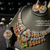 Collar con gemas de corazón de topacio azul agua brillante y aretes de circonita rosa fundida bañados en oro de 18 quilates.