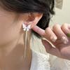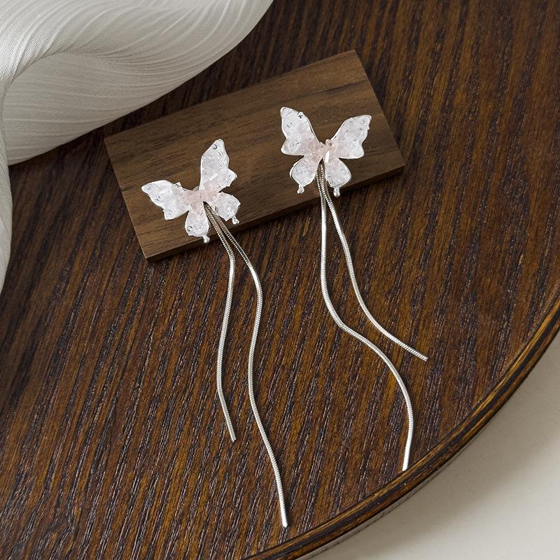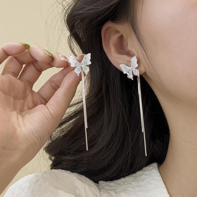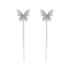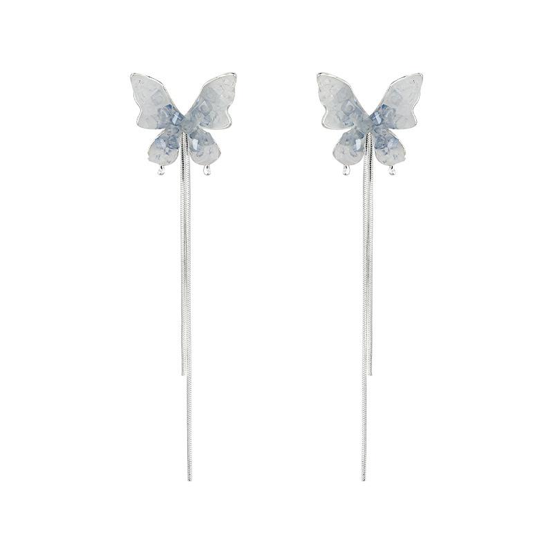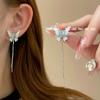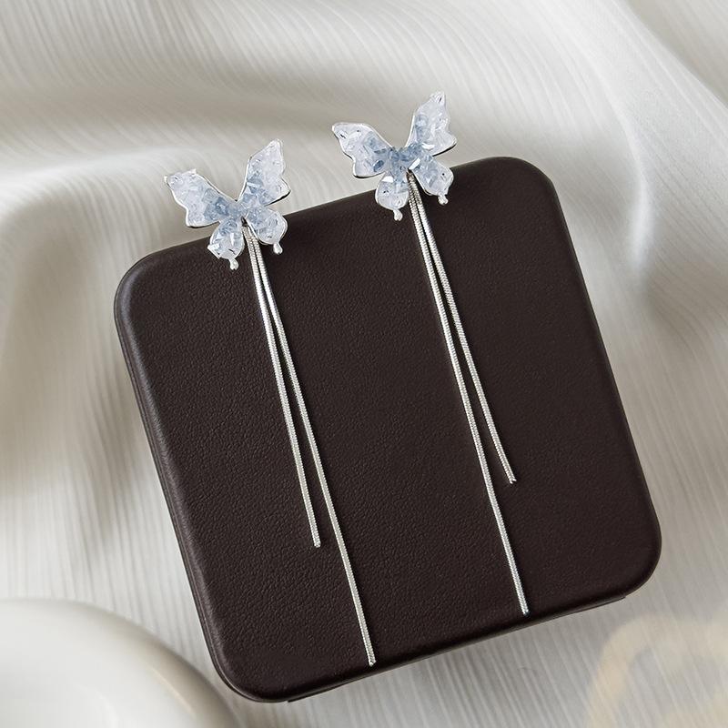 Aretes Elegantes Franceses de Borla de Mariposa Azul Aguja de Plata S925 Dama Elegante Combinable Moda Largos Desmontables Dos Usos