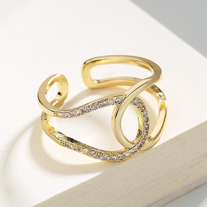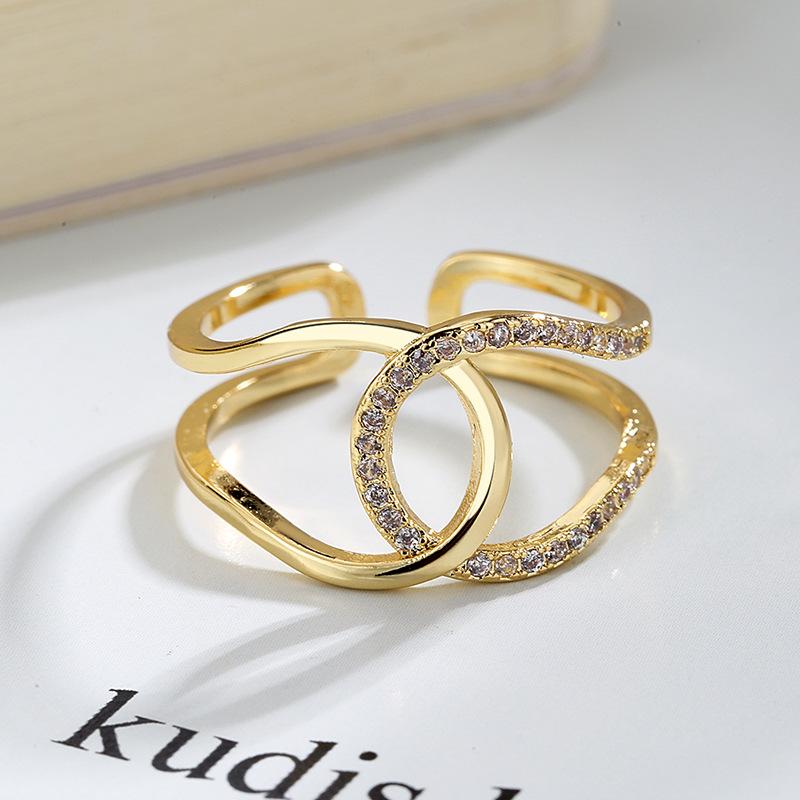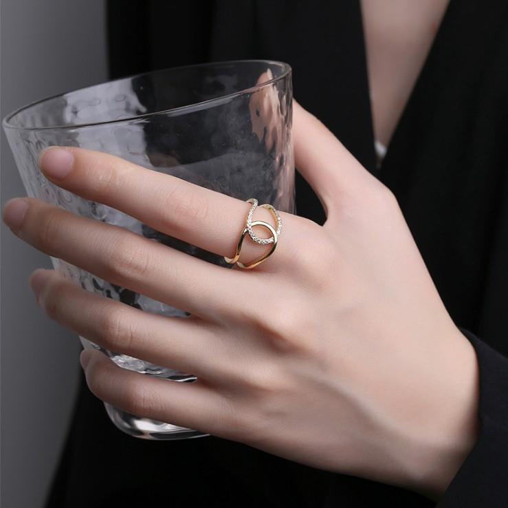 Anillo Cruzado Retro Estilo Coreano para Mujer Abierto Ajustable Estilo Japonés y Coreano Celebridad de Internet Simple Circonita Moda Anillo Retro Anillo de Cola
