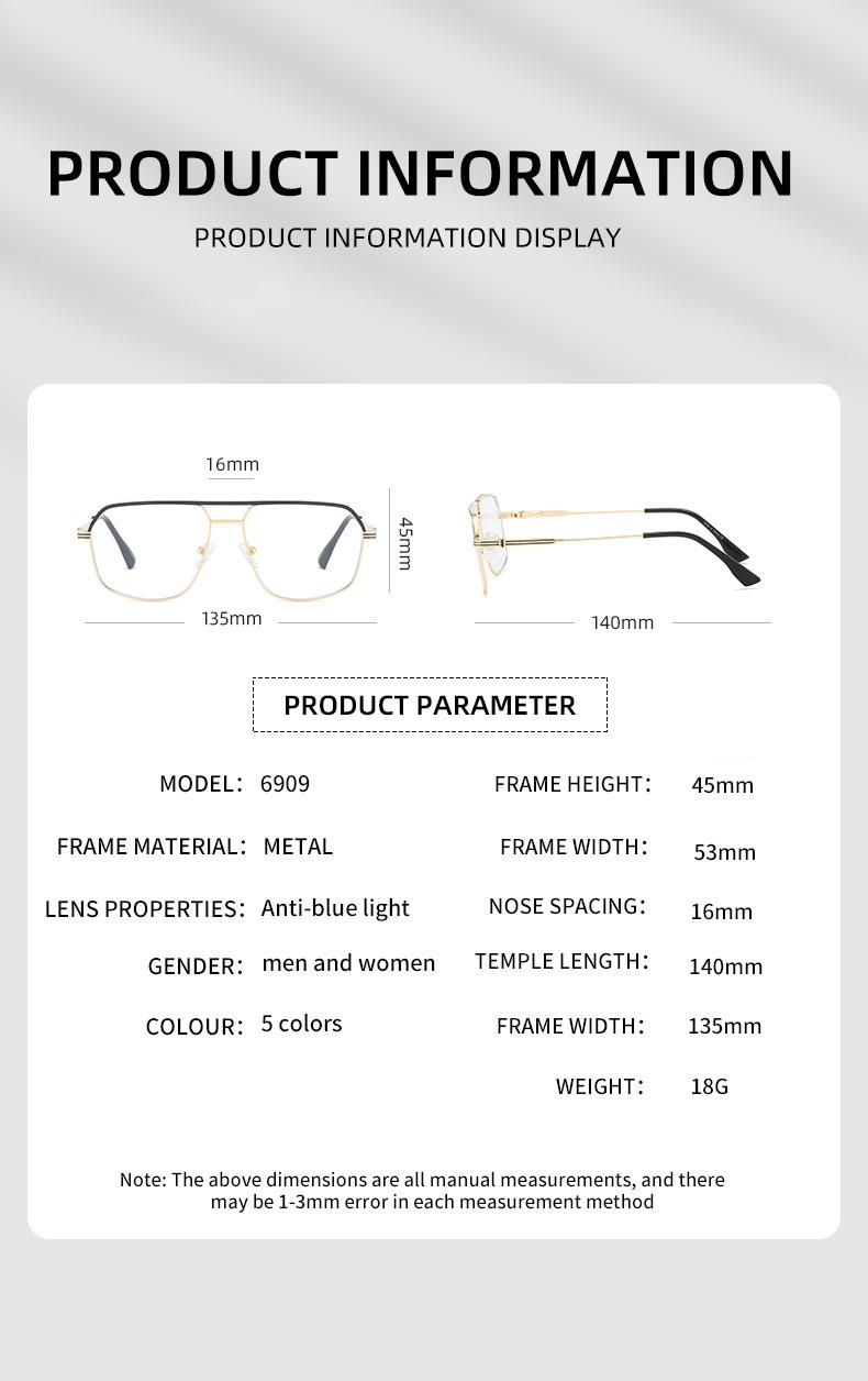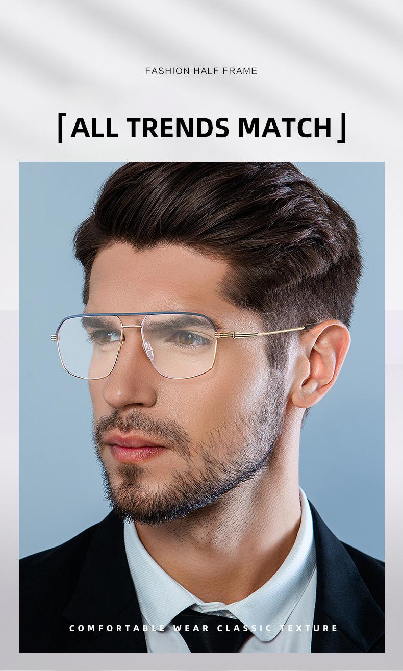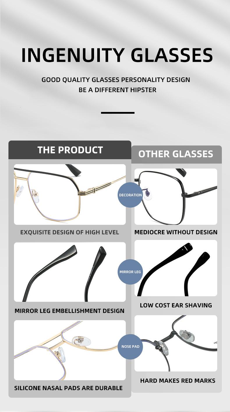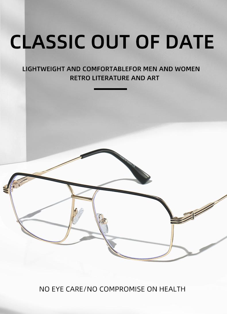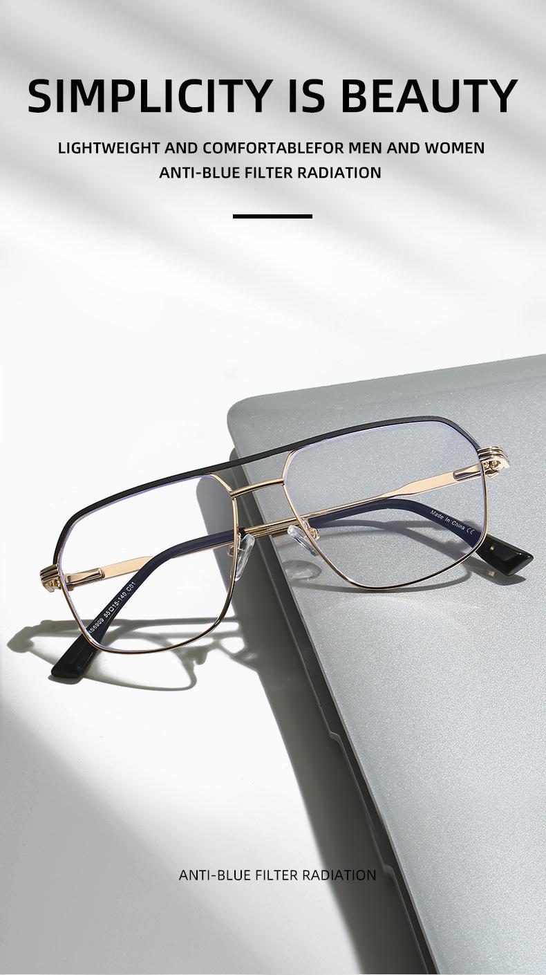 Gafas de sol antiazules retro de metal transfronterizo, sencillas, de doble haz, con montura plana, a la moda