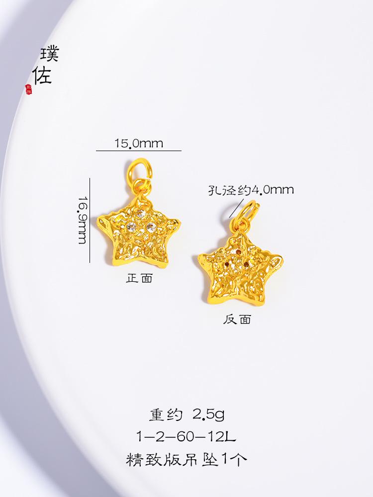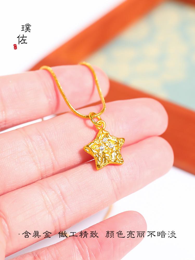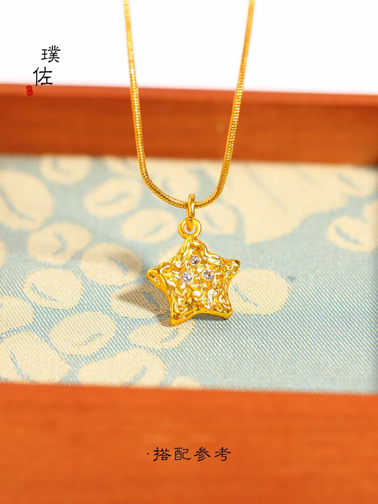 Tienda de oro con colgante de estrella de cinco puntas con patrón de martillo de diamante dorado y arena de Vietnam, accesorios de bricolaje, collar, diseño de cadena de clavícula para mujer