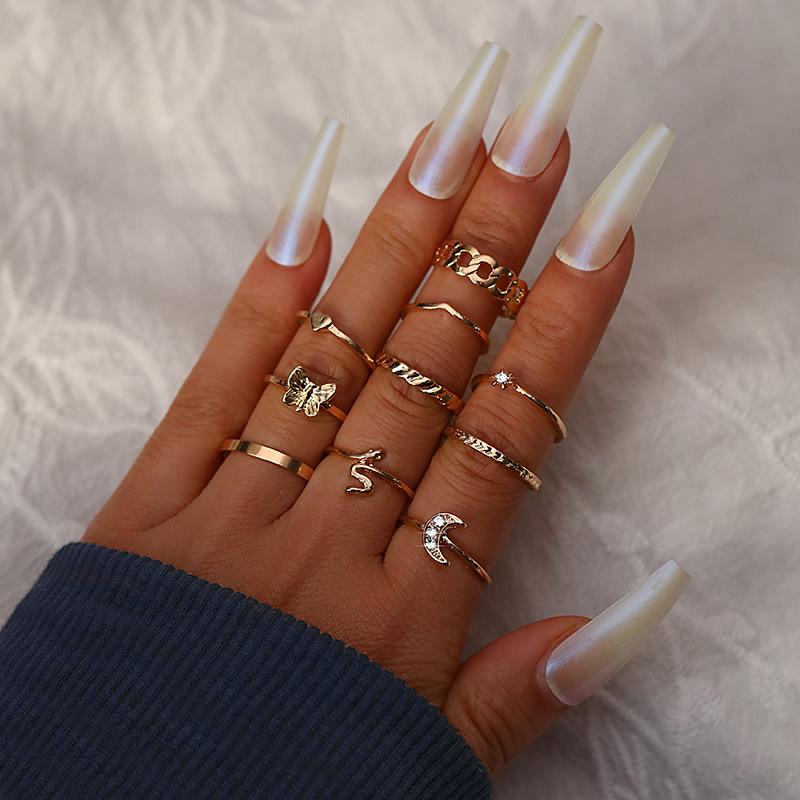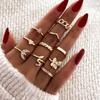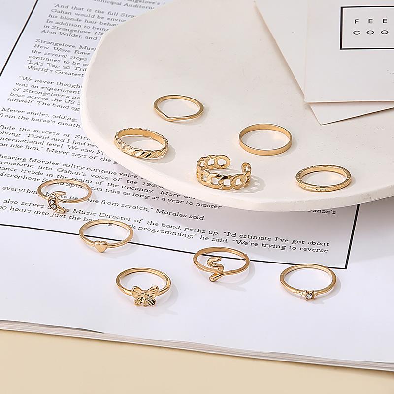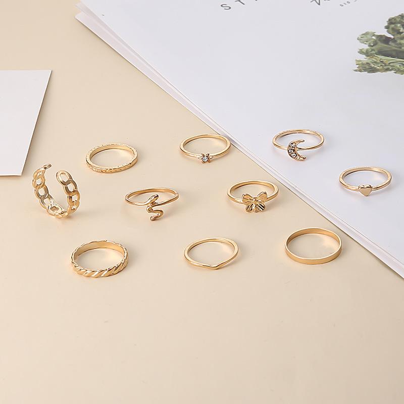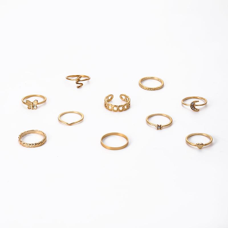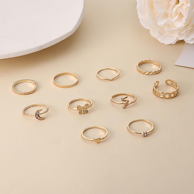 Cuidadosamente Seleccionado Anillo Transfronterizo Cadena Elementos Metálicos Retro Diamante Luna Mariposa Corazón Anillo con Forma de Serpiente Juego de 10 Piezas