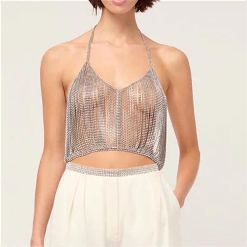 Nueva cadena corporal de diamantes de imitación sexy transfronteriza estilo discoteca moda fiesta lujosa cadena de pecho de diamantes de imitación accesorios europeos y americanos al por mayor