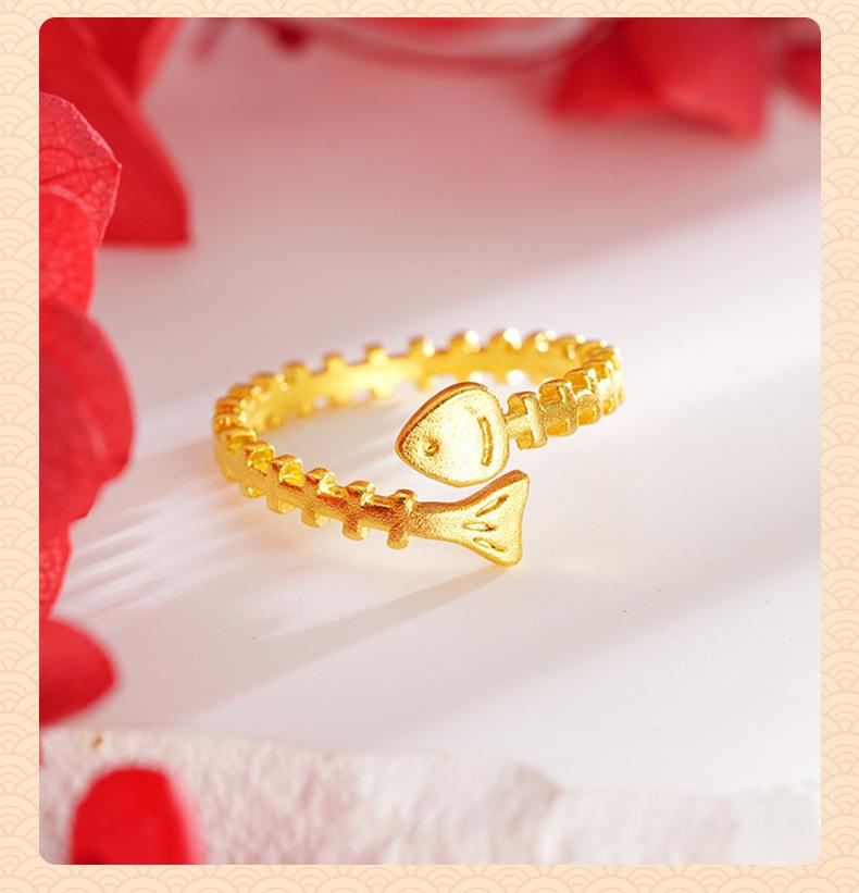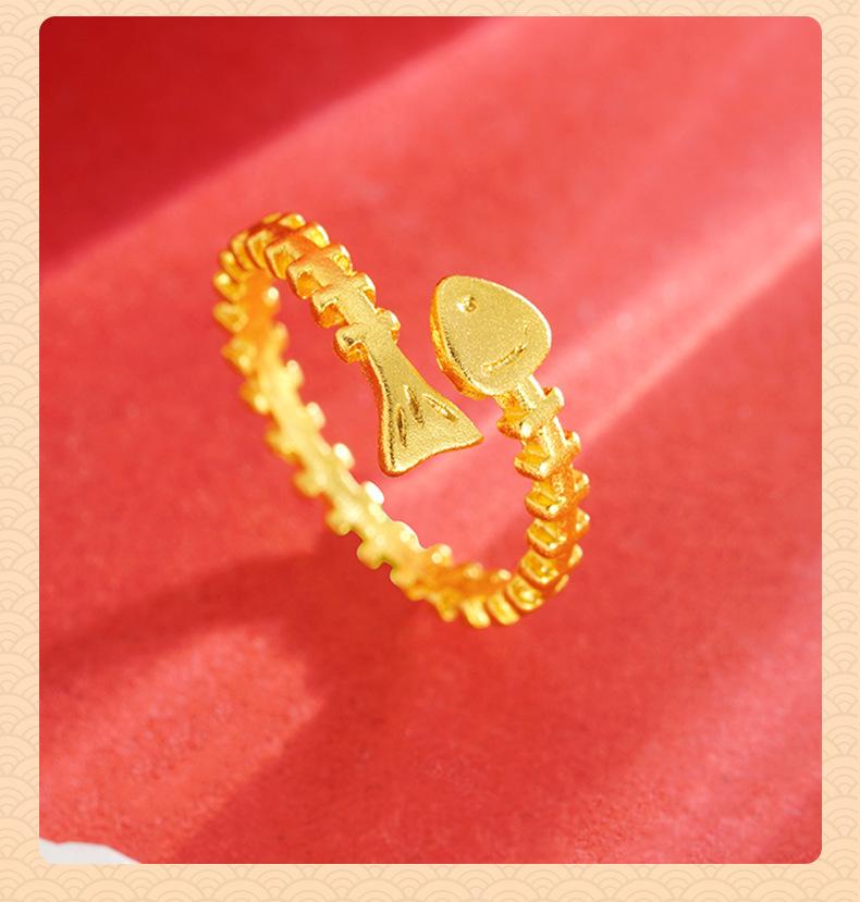 Anillo de oro arena para mujer, diseño de nicho de alta gama, personalizado, espina de pescado, no se desvanece durante mucho tiempo, elegante y simple anillo de oro de imitación de moda.