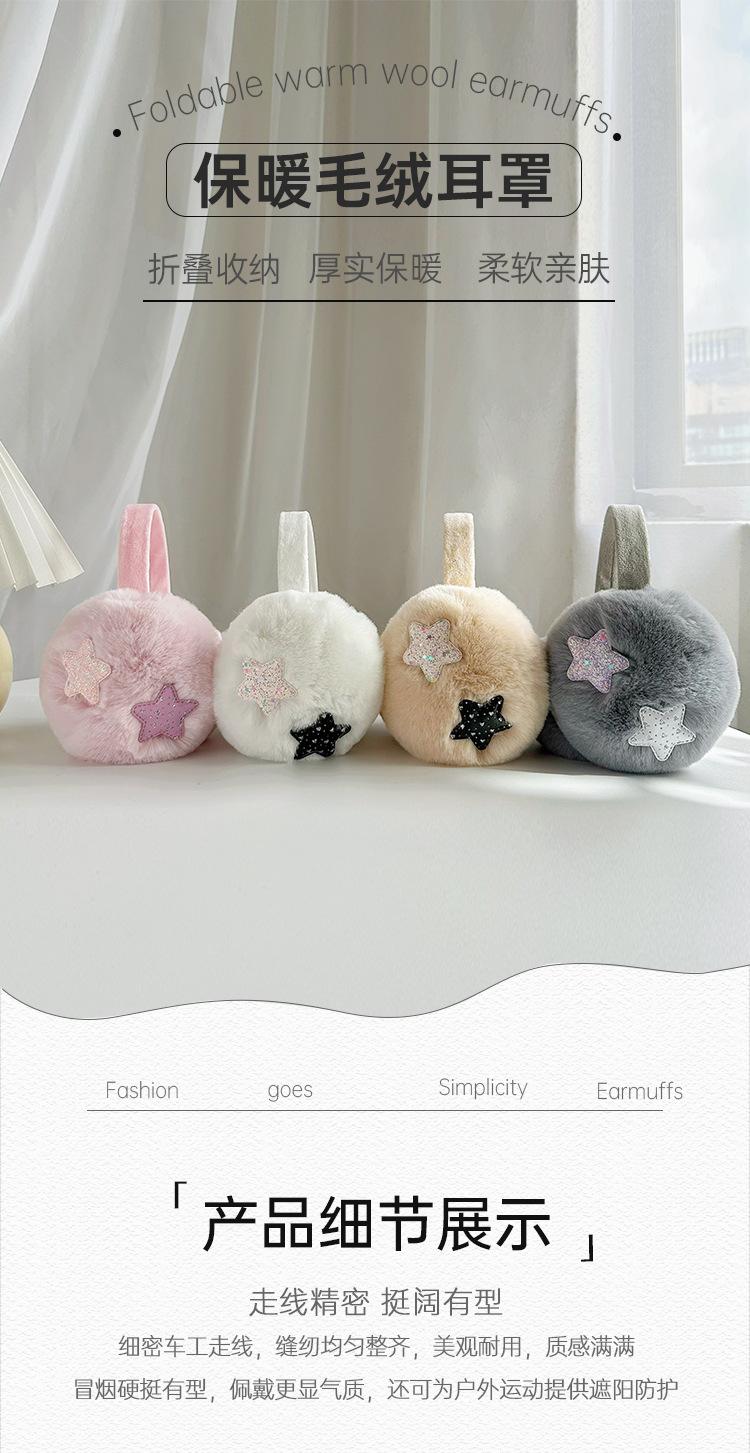 Preciosas orejeras de felpa para mujer, lindas orejeras de invierno para estudiantes, nuevas orejeras cálidas con estrellas, a prueba de viento y anticongelantes.