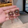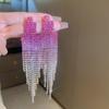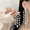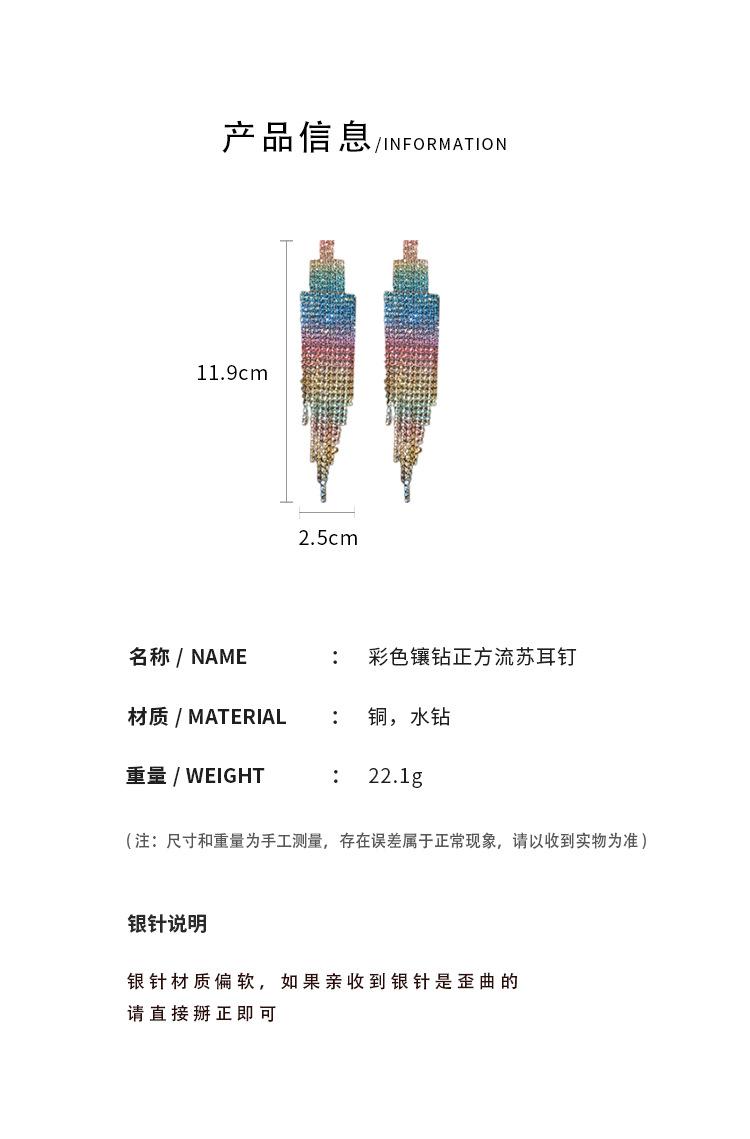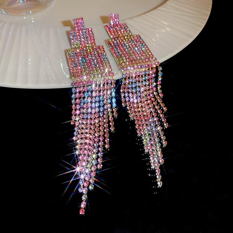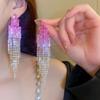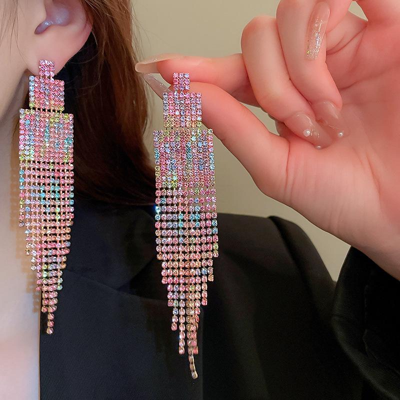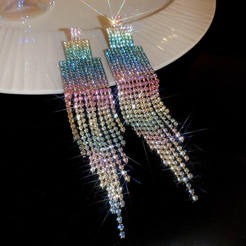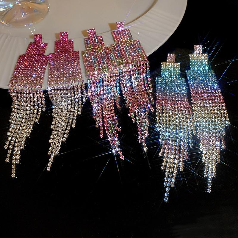 Pendientes de plata con borlas largas y cuadradas de diamantes con degradado exagerado, pendientes de lujo ligeros y de alta gama con personalidad europea y americana para mujer