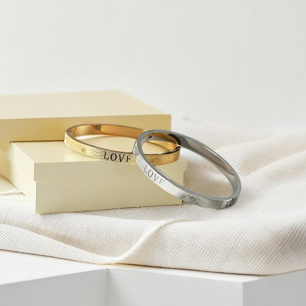 Pulsera transfronteriza nueva de acero de titanio creativa simple corrosión AMOR AMOR hebilla pulsera de pareja joyería de acero inoxidable