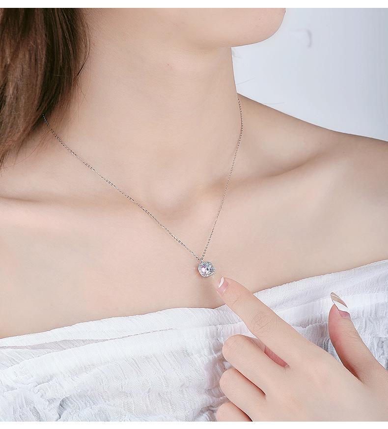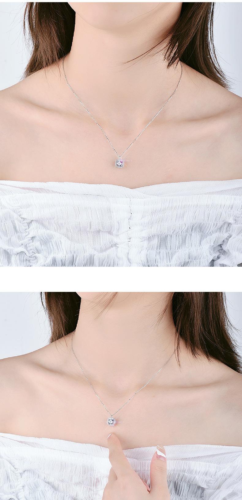 Collar con colgante de bolso cuadrado de princesa para mujer, con diamantes Mosan de 1 quilate y plata de ley 925, cadena de clavícula de platino, de lujo ligero.