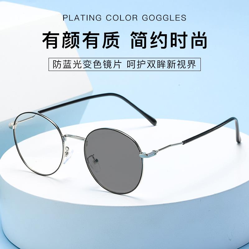 Gafas Metálicas que Cambian de Color de Moda Transfronteriza Montura Redonda Retro Moderna Sencilla Versátil Marco de Gafas Mujer de Alta Gama