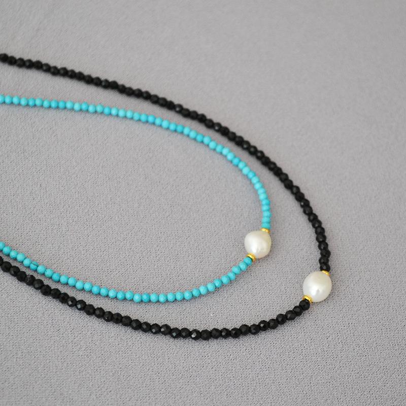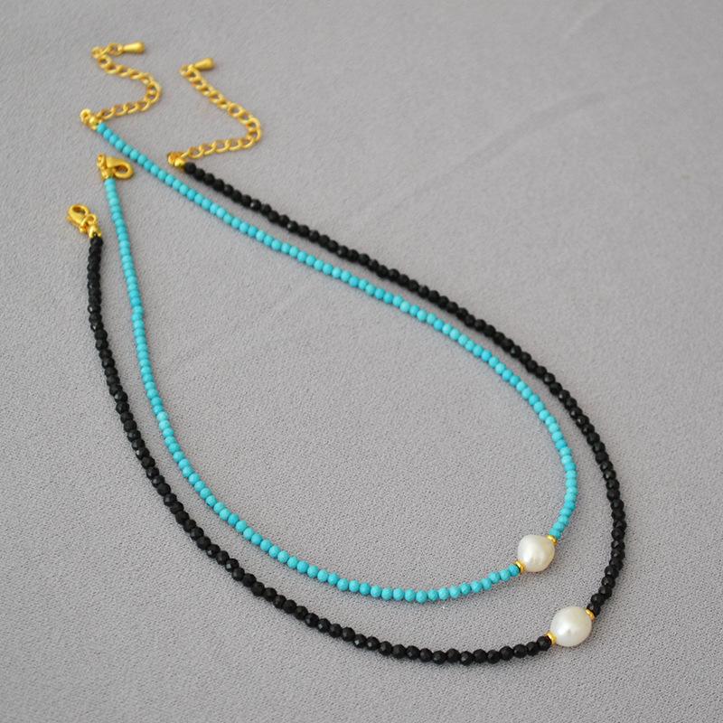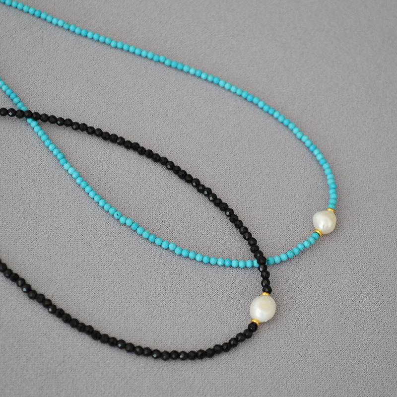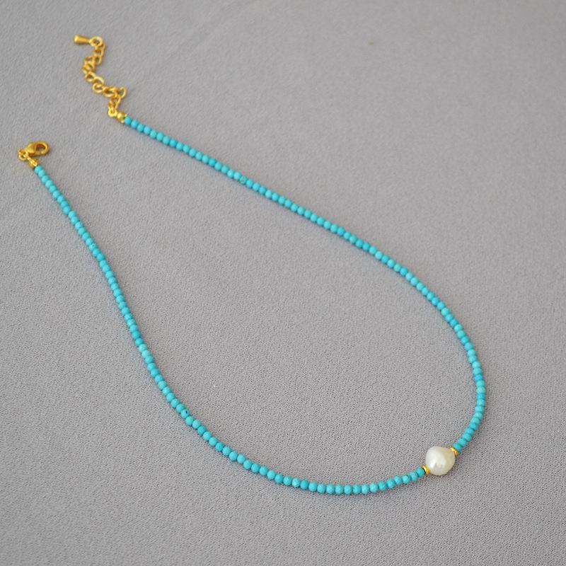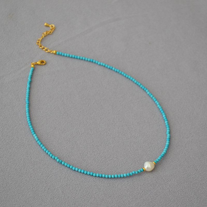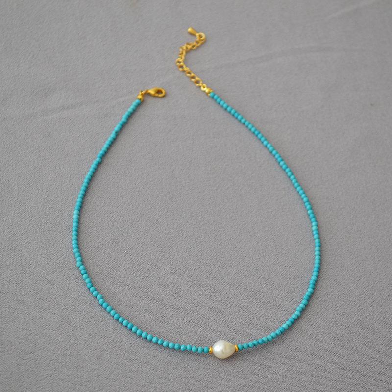 Cuentas hechas a mano, longitud aproximada de 38 cm + cadena de extensión de 5 cm.