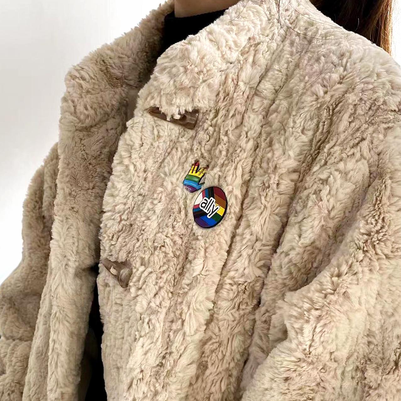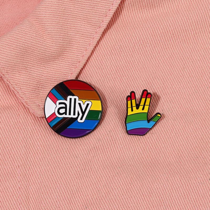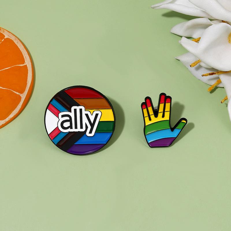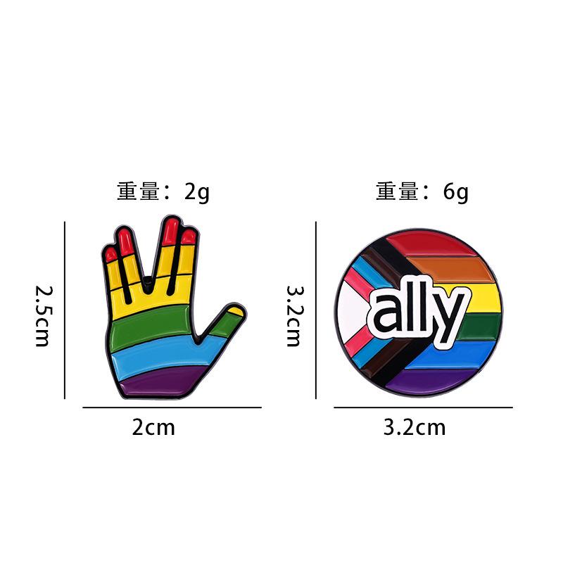 Broche de metal con letras del arcoíris de colores creativos de comercio exterior, serie de dedos, personalizado, combina con todo, para ropa, sombrero, insignia decorativa