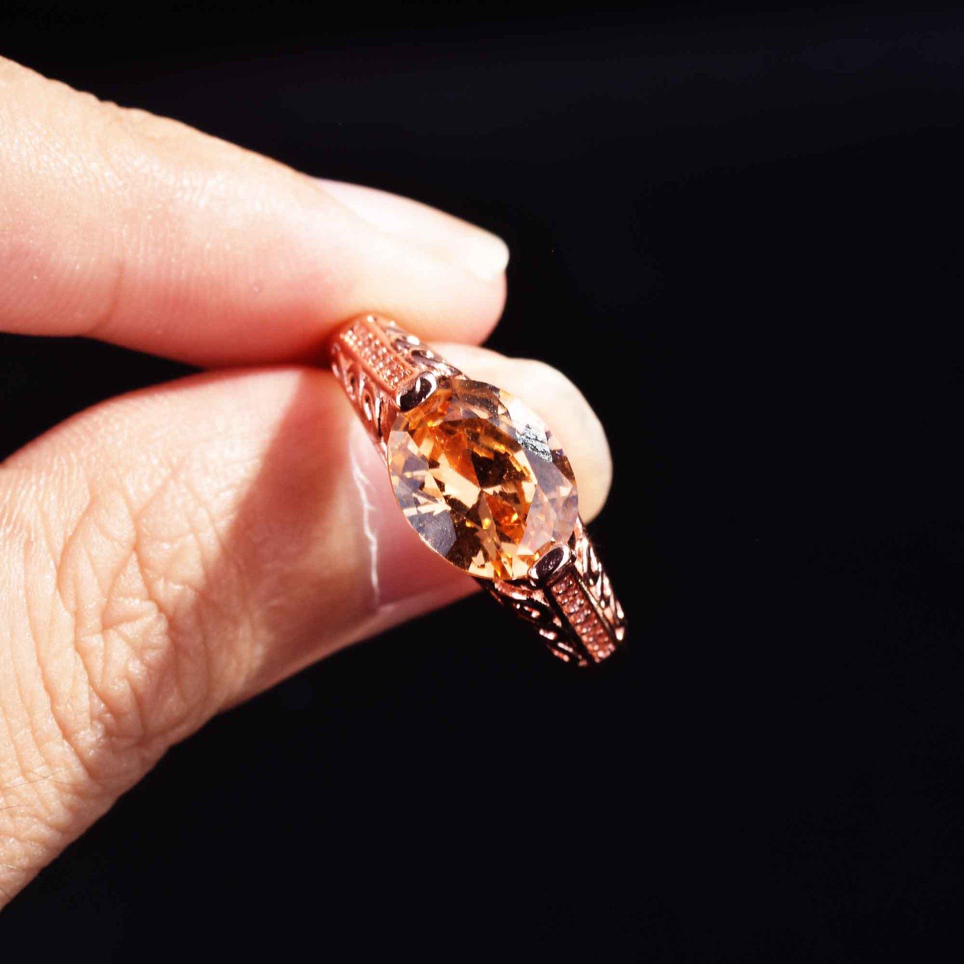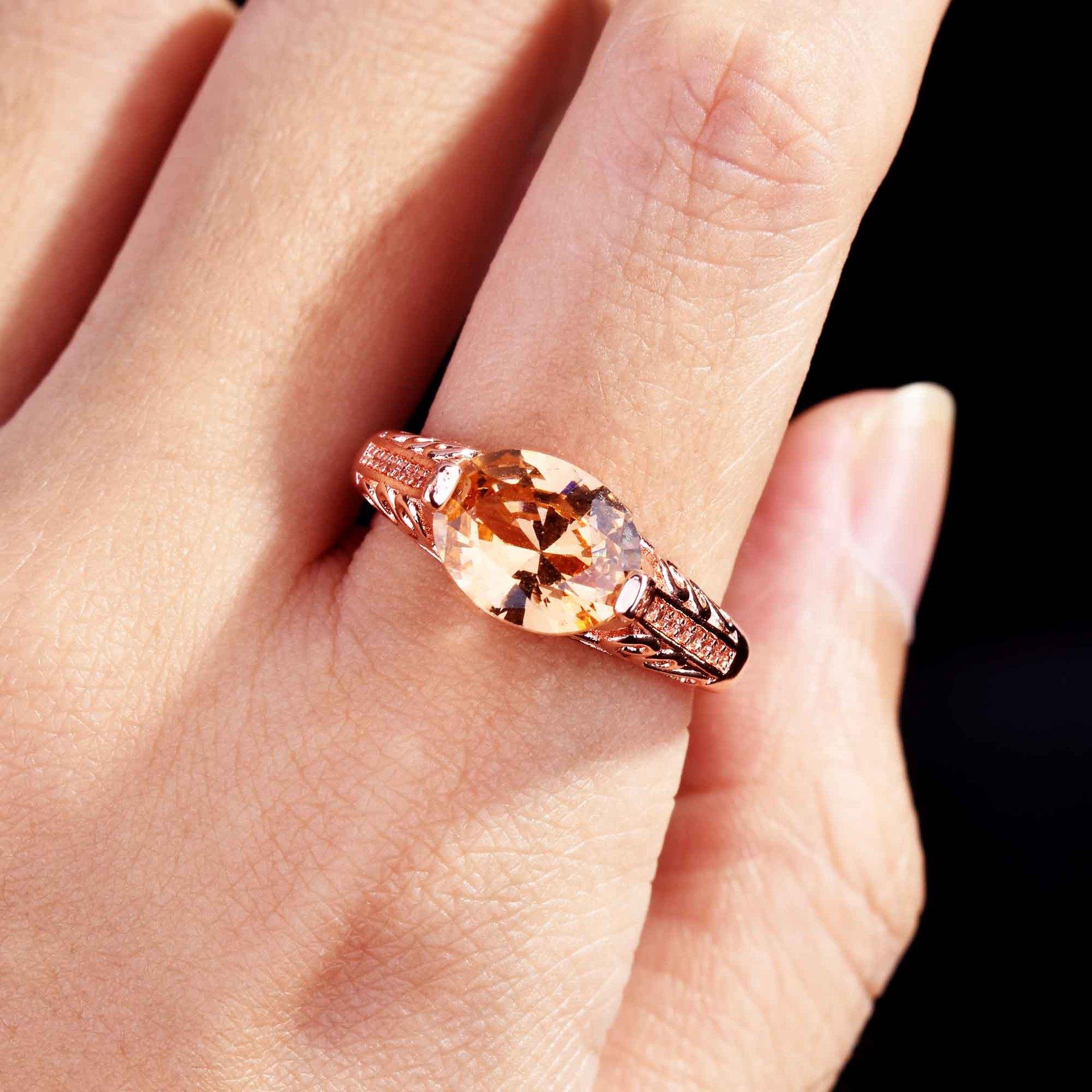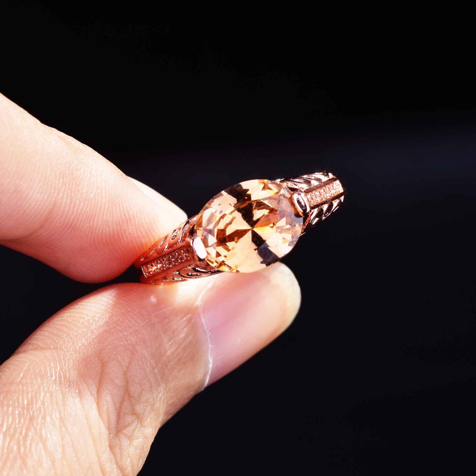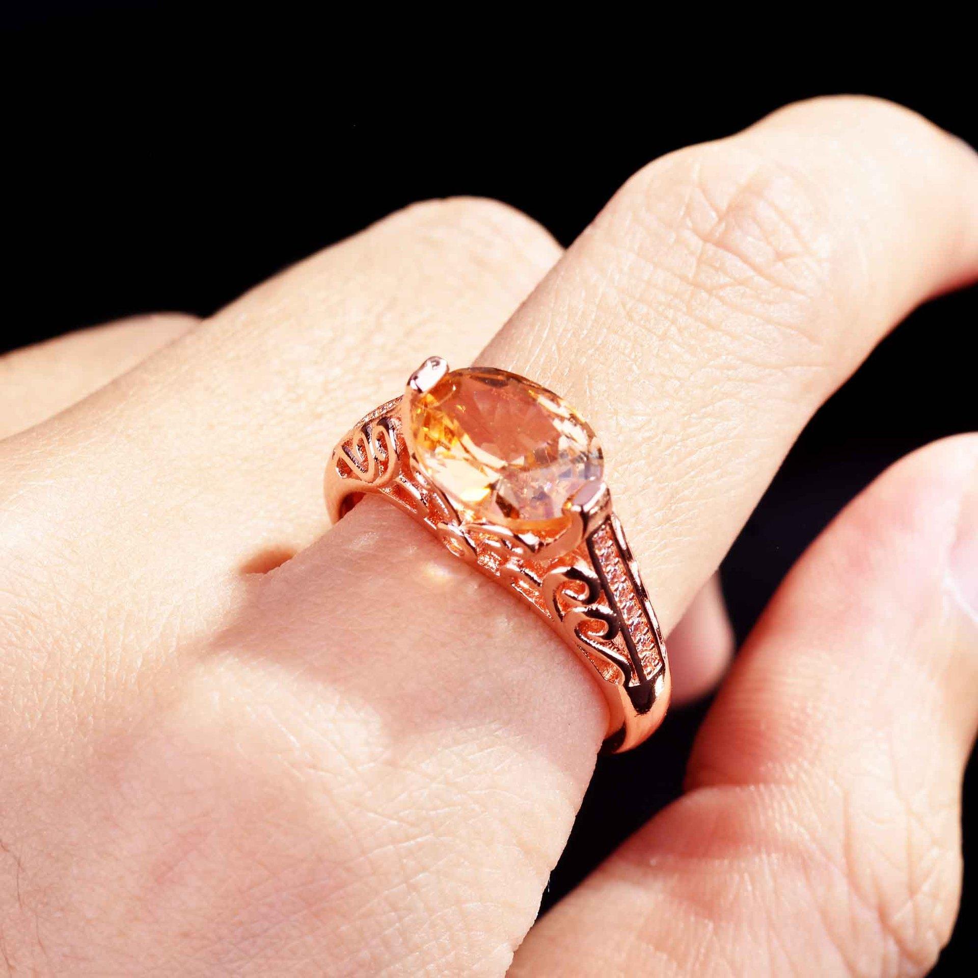 Zhen Rong desea que AliExpress ofrezca un nuevo anillo hueco de color champán morganita europeo y americano para mujer.