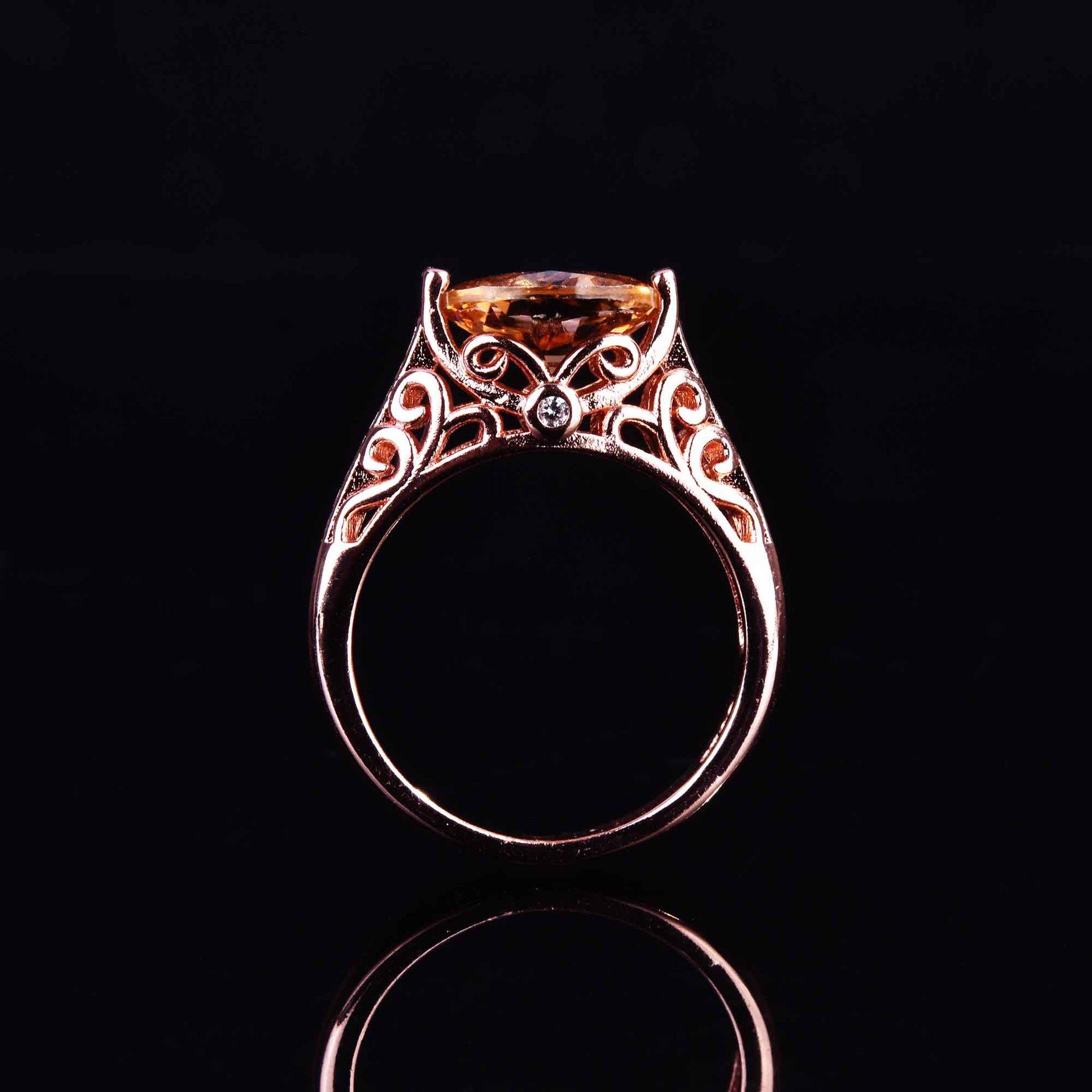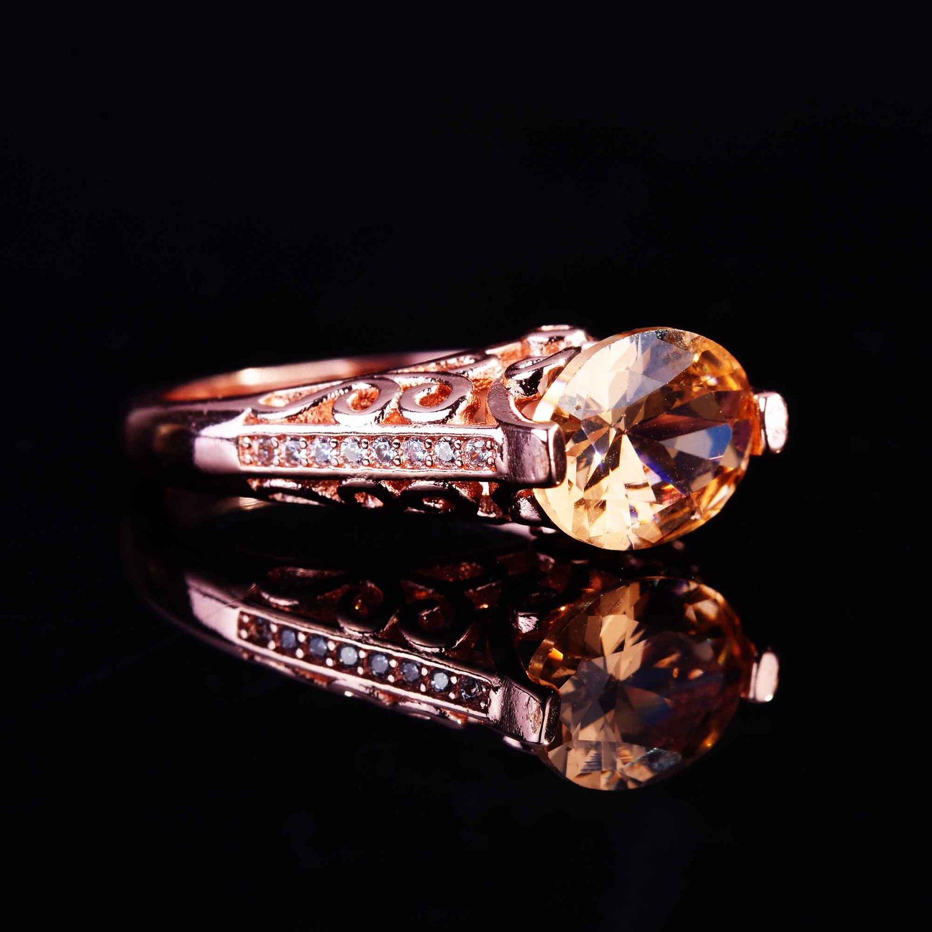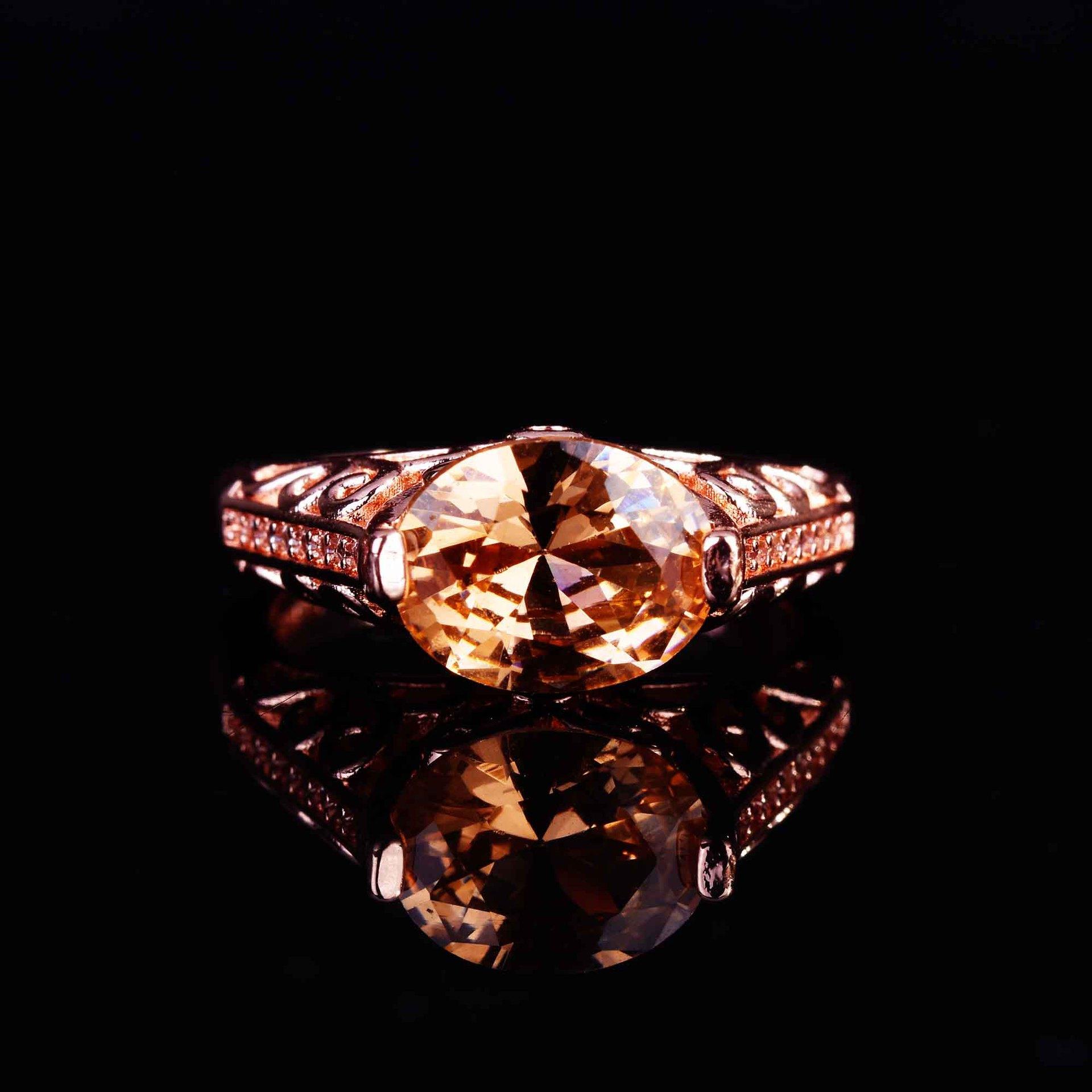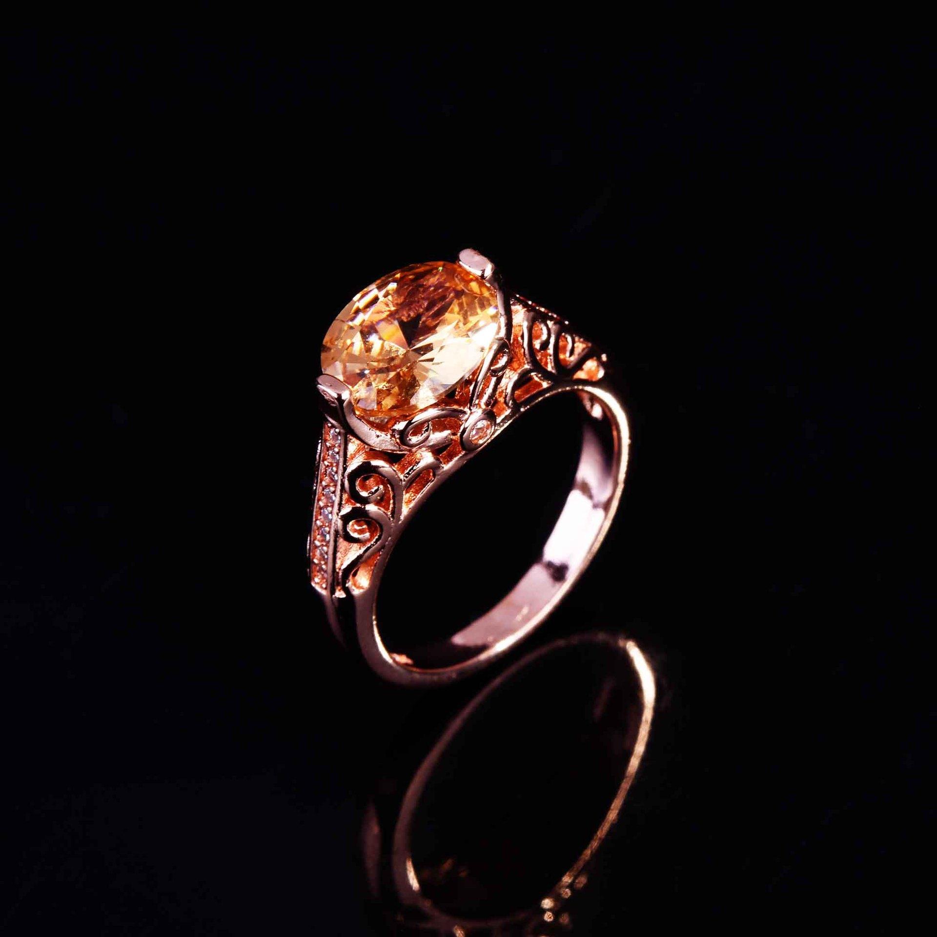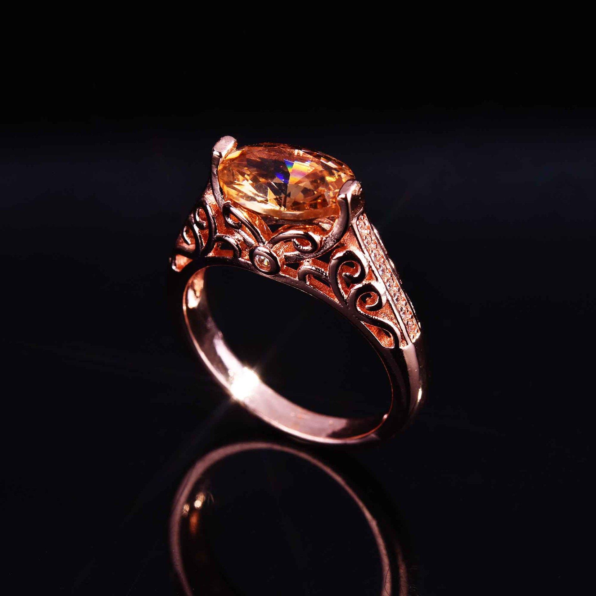 Zhen Rong desea que AliExpress ofrezca un nuevo anillo hueco de color champán morganita europeo y americano para mujer.