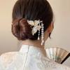 Horquilla de estilo chino con borlas de mariposa y perlas, estilo antiguo, con textura, accesorios para el cabello de nicho de moda nacional.