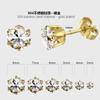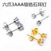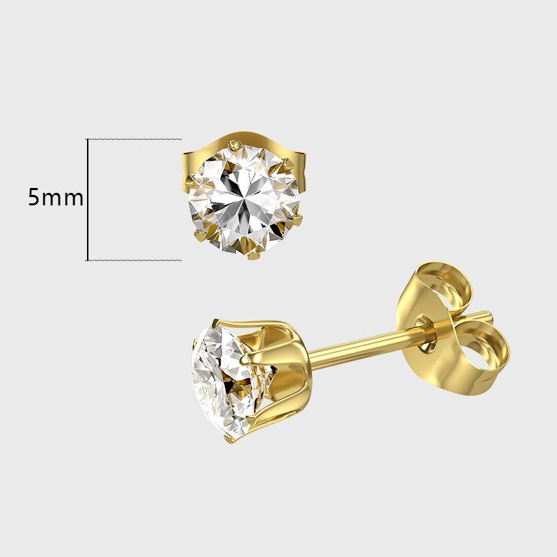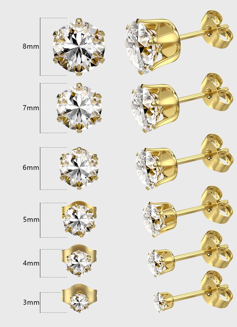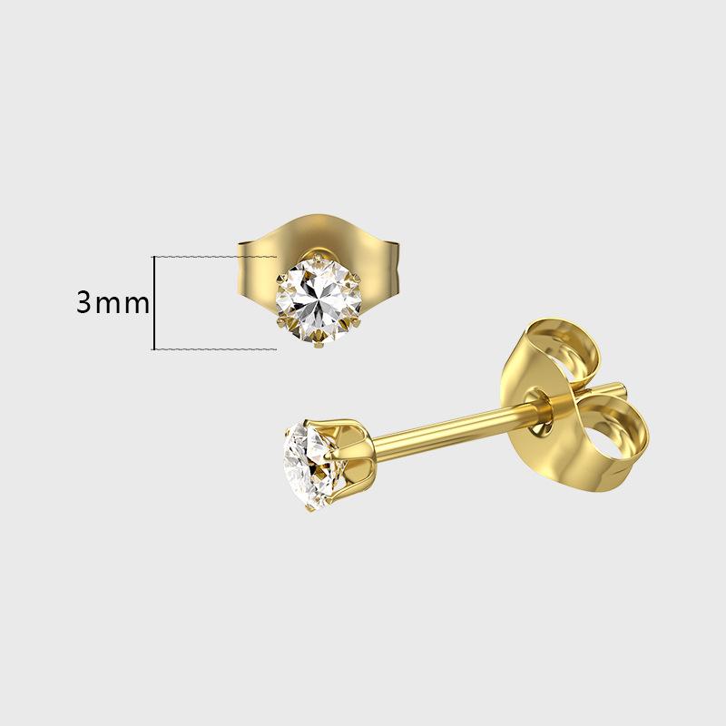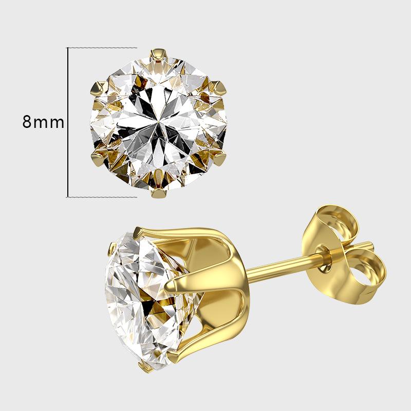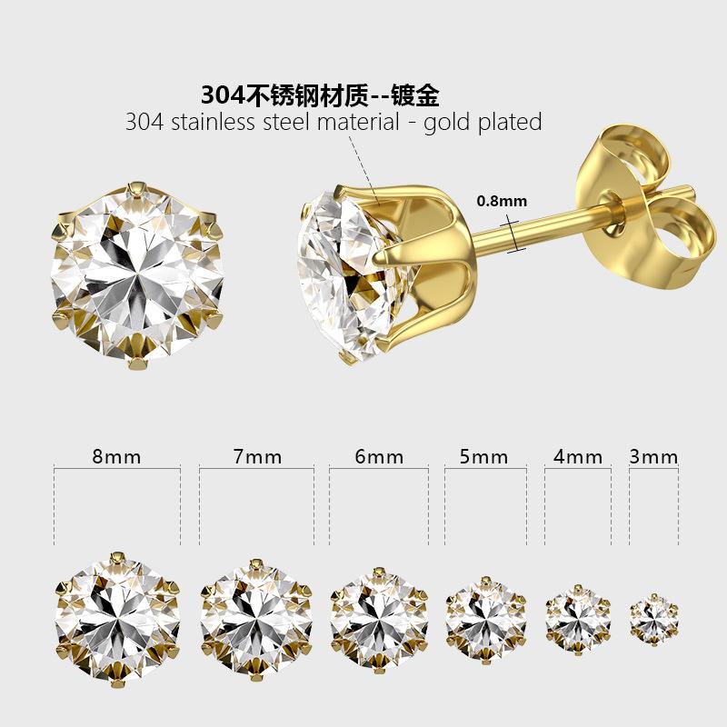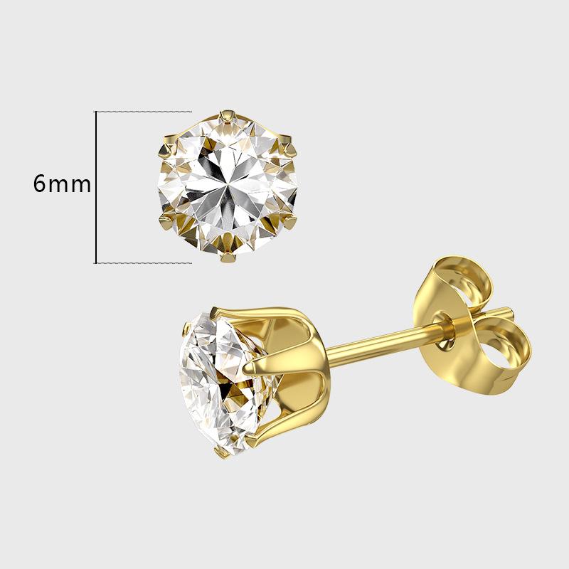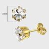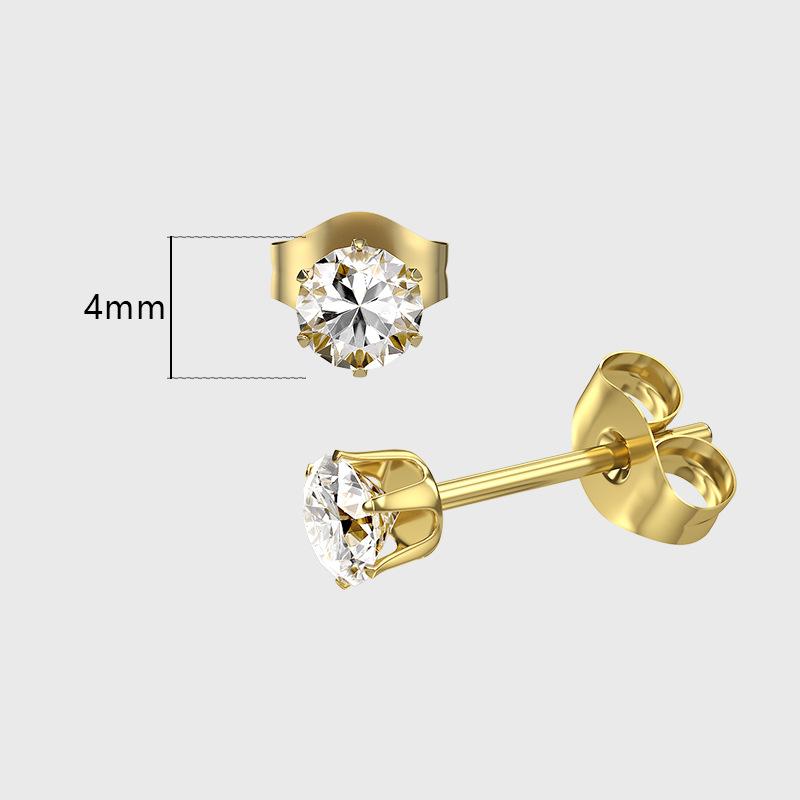 Pendientes de acero inoxidable con circonitas y corona de seis garras para mujer, clásicos, chapados en oro de 4 mm.