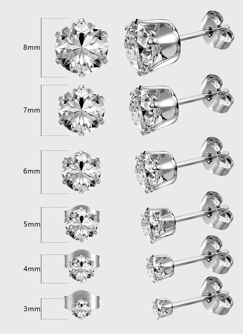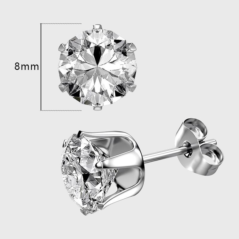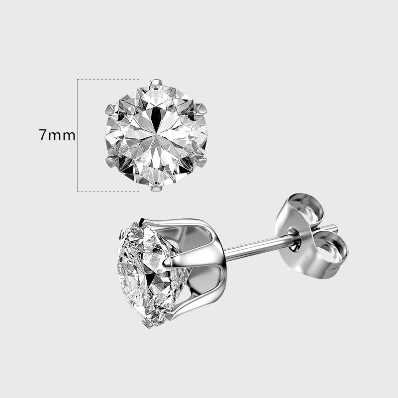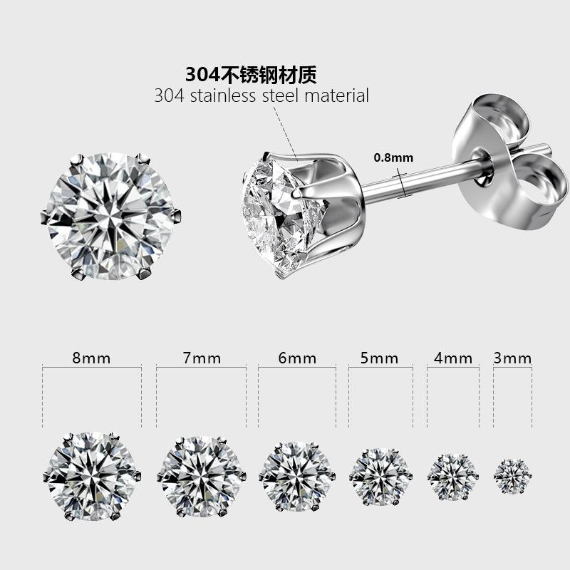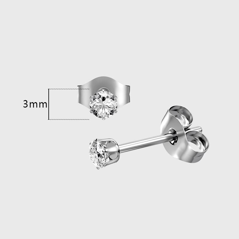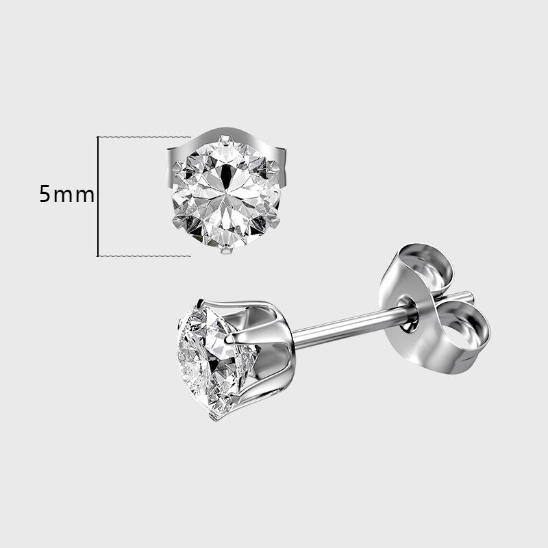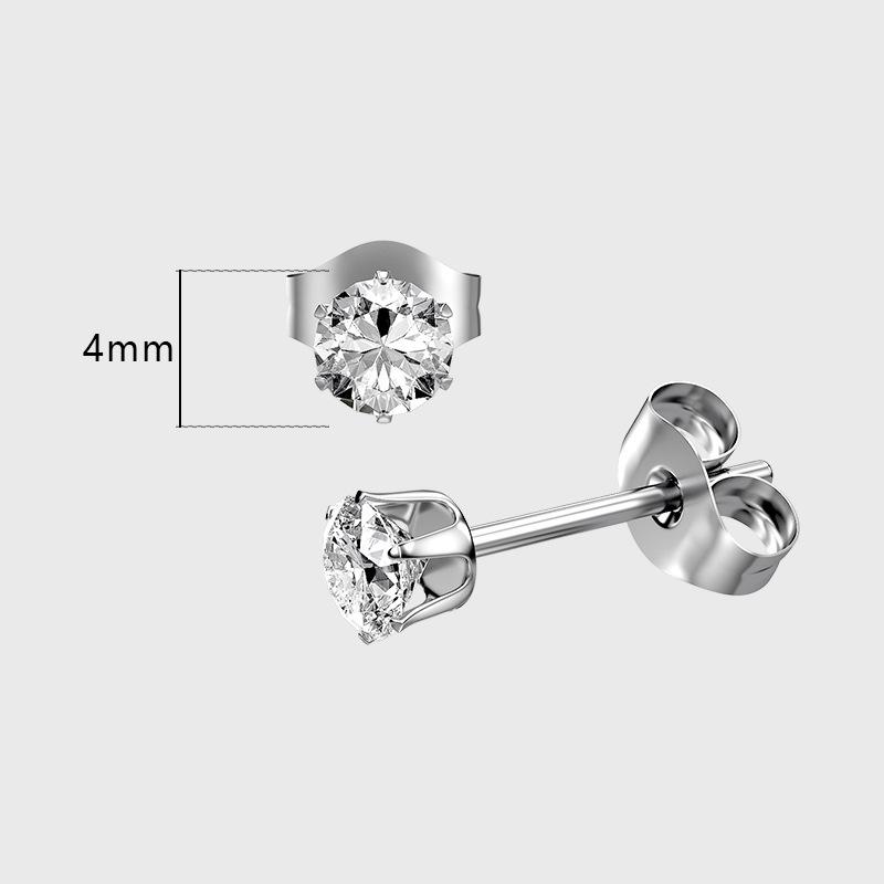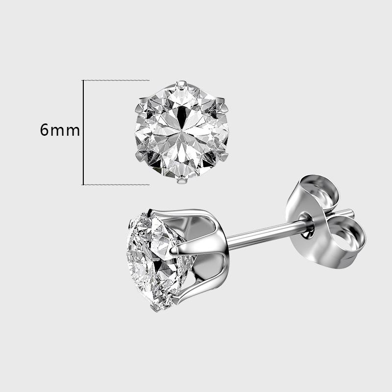 Pendientes de acero inoxidable con circonitas y corona de seis garras para mujer, clásicos, chapados en oro de 4 mm.