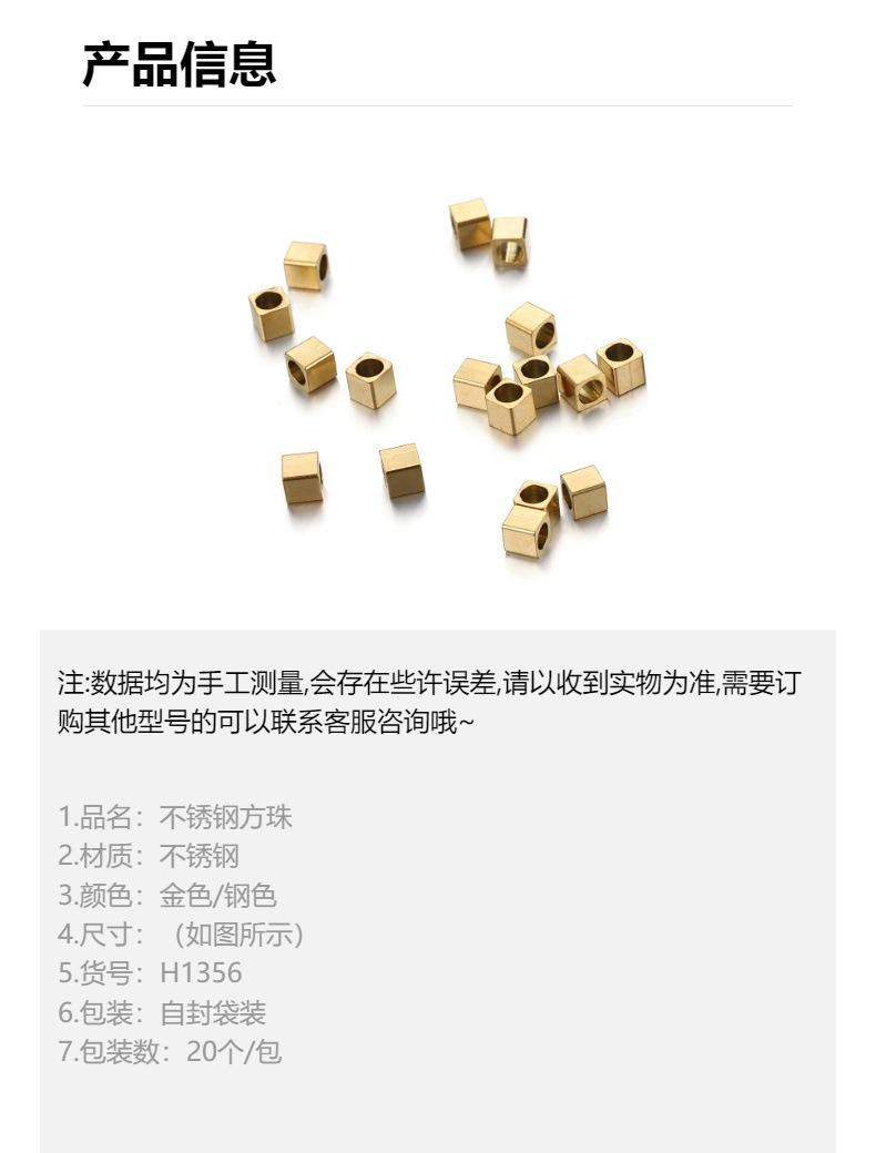 Cuentas cuadradas de acero inoxidable, cuentas de oro auténtico con preservación del color, cuentas sólidas de Gossy, accesorios de joyería para bricolaje.