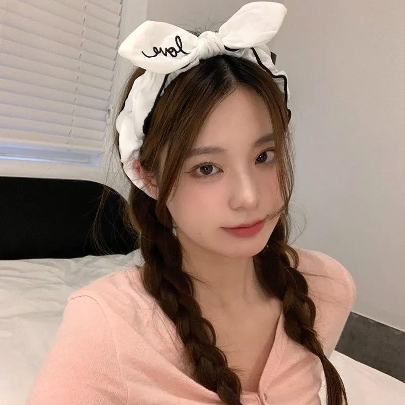 Banda para el cabello con orejas de conejo de amor coreanas, banda antideslizante para el cabello, banda para el cabello, banda para el cabello de seda para mujeres