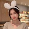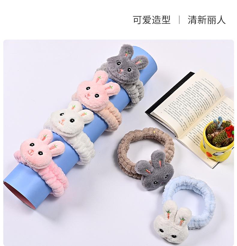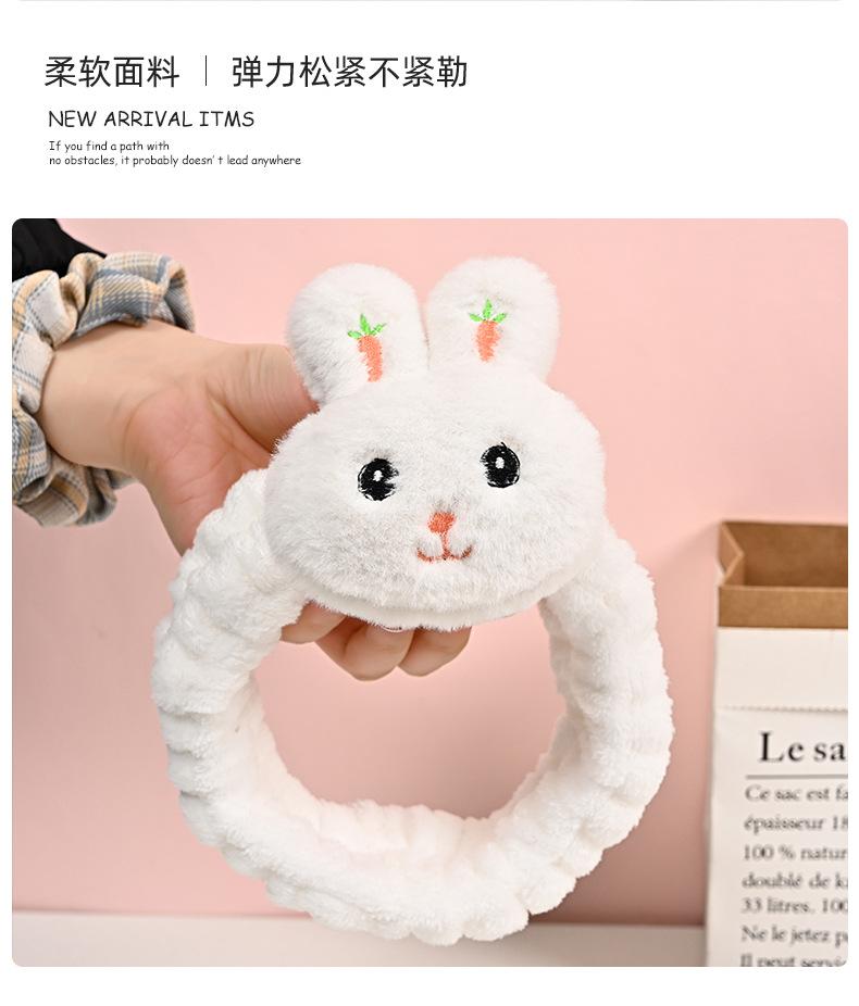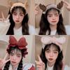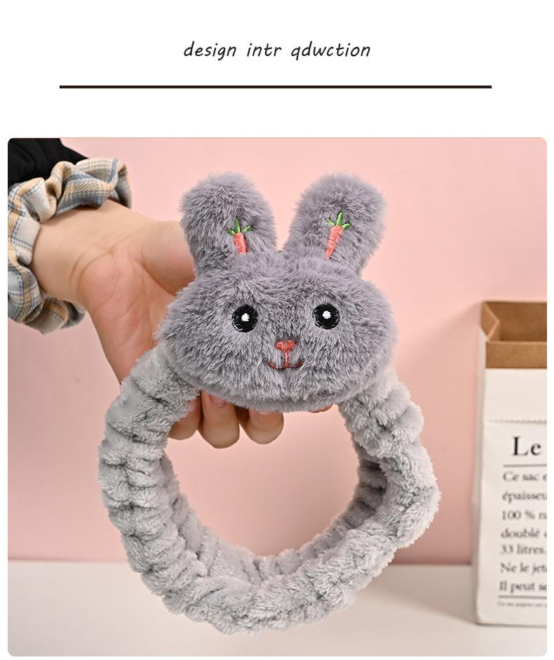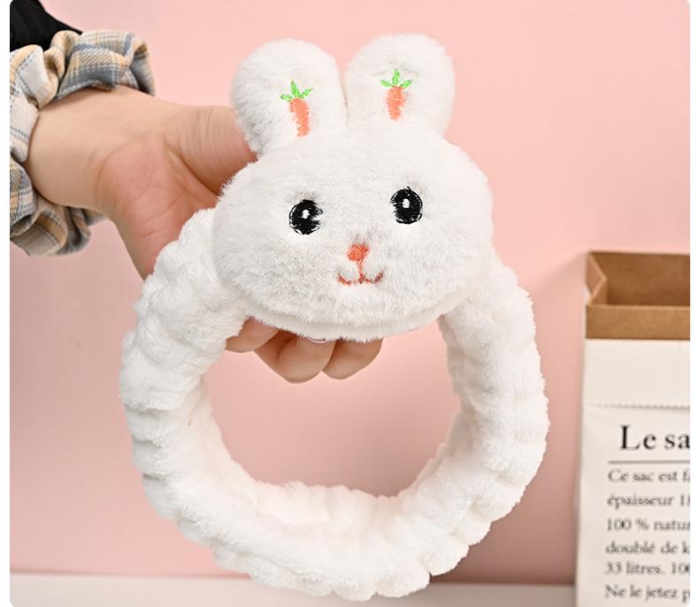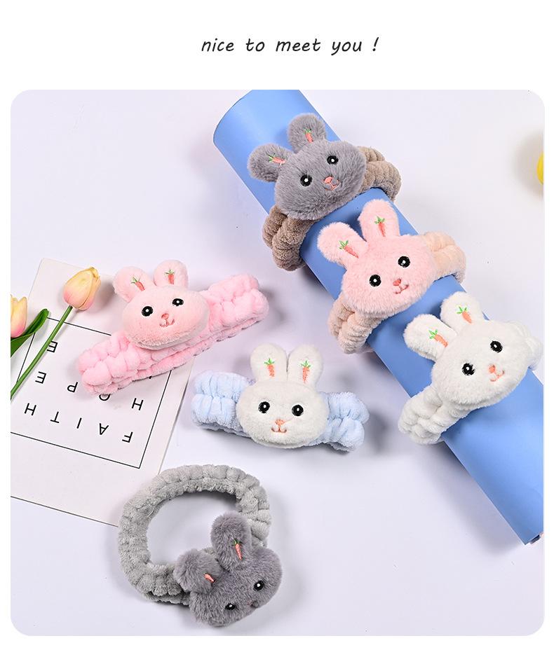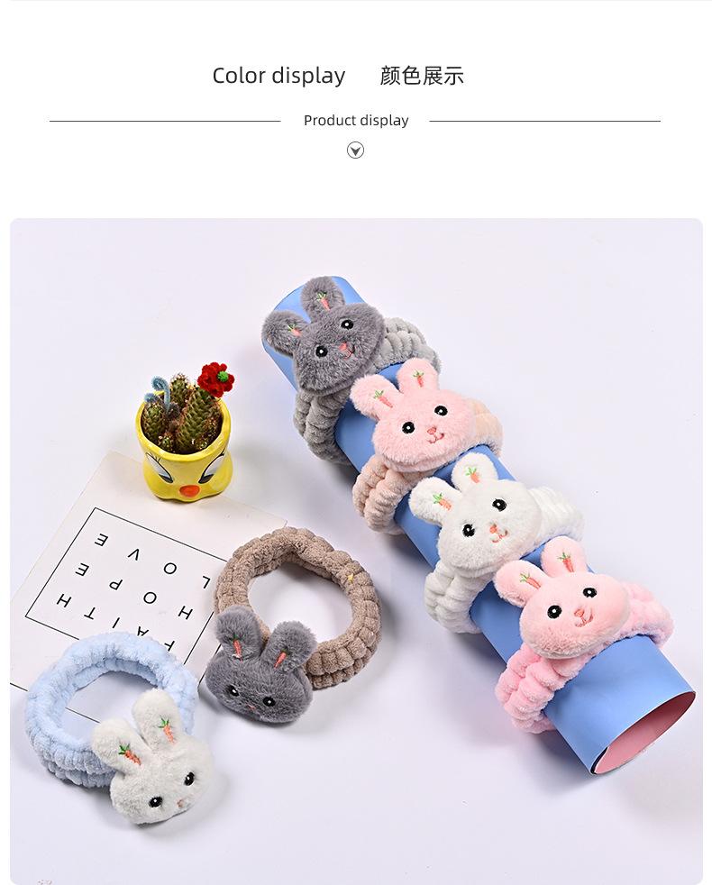 Bonita diadema de conejo con orejas de zanahoria de peluche tridimensional para mujer, banda para el cabello con lavado facial, banda para el cabello de color rojo cibernético.