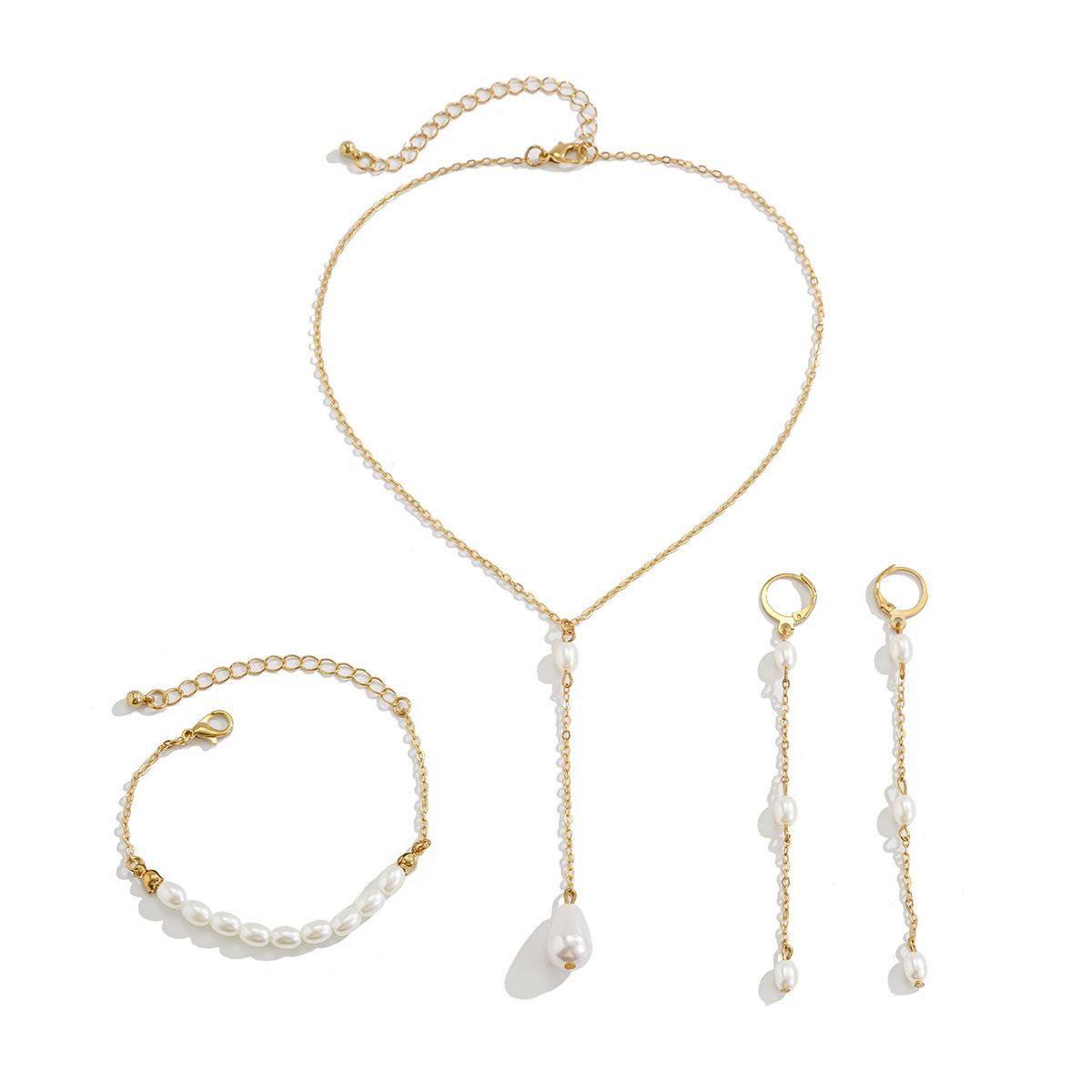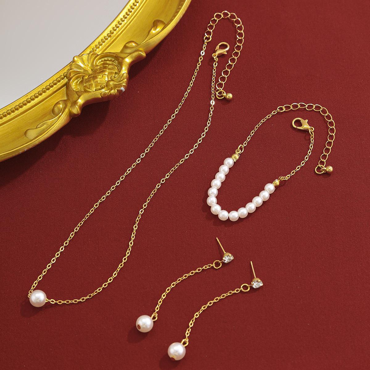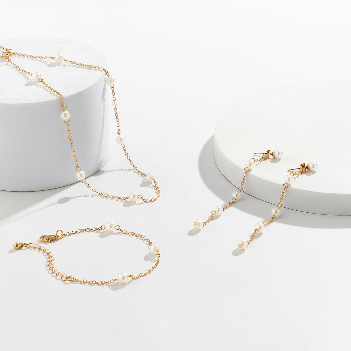 Categoría de producto: Collar, pulsera y pendientes (4218) Color del producto: Oro, Blanco K/Oro, Baño de plata Material del producto: Cadena de hierro revestida de cobre + Perla de imitación / Cadena de hierro revestida de cobre + Perla de imitación Embalaje del producto: bolsa OPP, embalaje independiente. Peso y dimensiones del producto: Ver etiqueta de la imagen.(Las dimensiones y los pesos se miden manualmente, por lo que habrá un ligero error. Consulte el producto real. Preste atención al tamaño antes de comprar). |