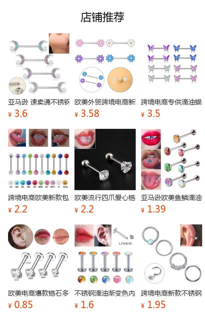 Joyería de perforación europea y americana acero inoxidable amor anillo gota de aceite letras cuerno uñas de leche cruz venta al por mayor