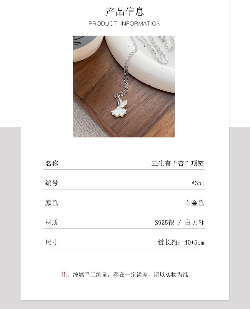 Collar de fritilaria de hoja de ginkgo de la suerte de tres vidas en plata esterlina S925 para mujer, cadena de clavícula de alta calidad de nicho de lujo ligero, regalo de cumpleaños