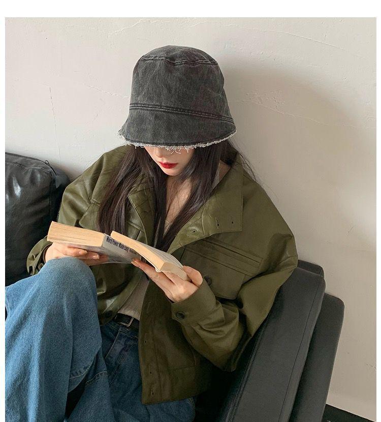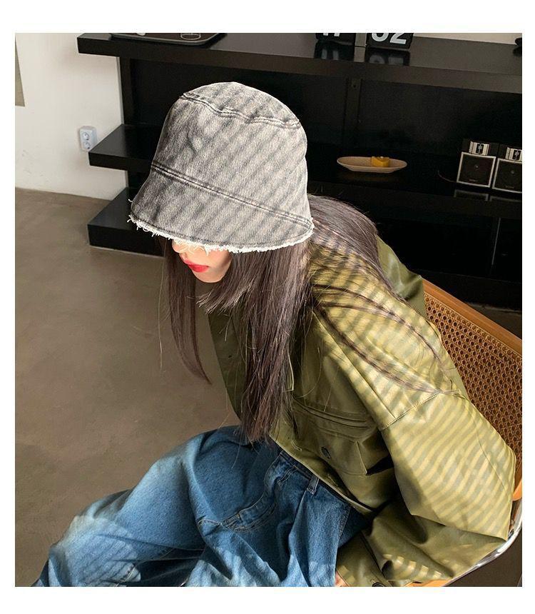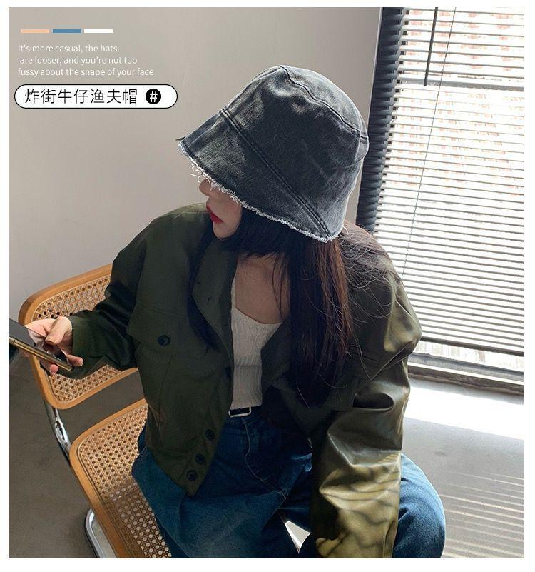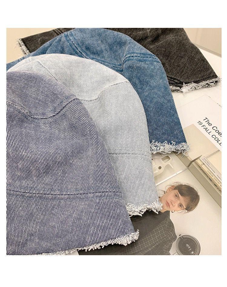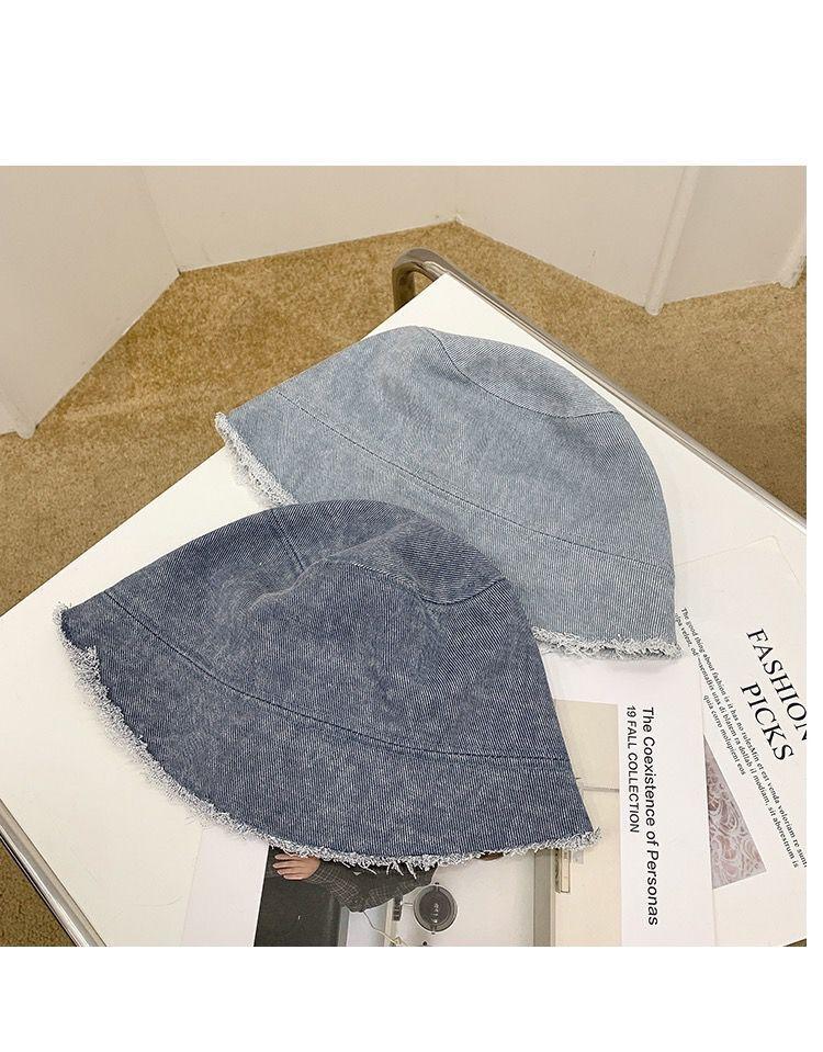 Sombrero de pescador japonés de mezclilla lavada con bordes crudos para primavera y verano, combina con todo, protector solar para niños, sombrero de cubo con protección facial, sombrero de lavabo con marea