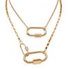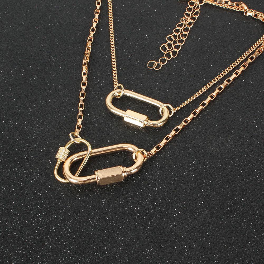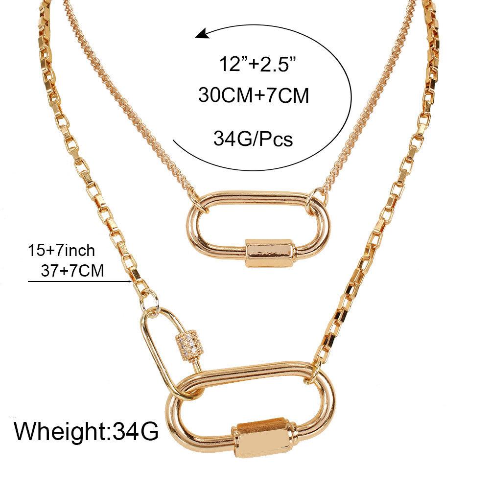 Collar con colgante geométrico retro de aleación con mosquetón de doble capa, accesorio para mujer, estilo europeo y americano, 14720