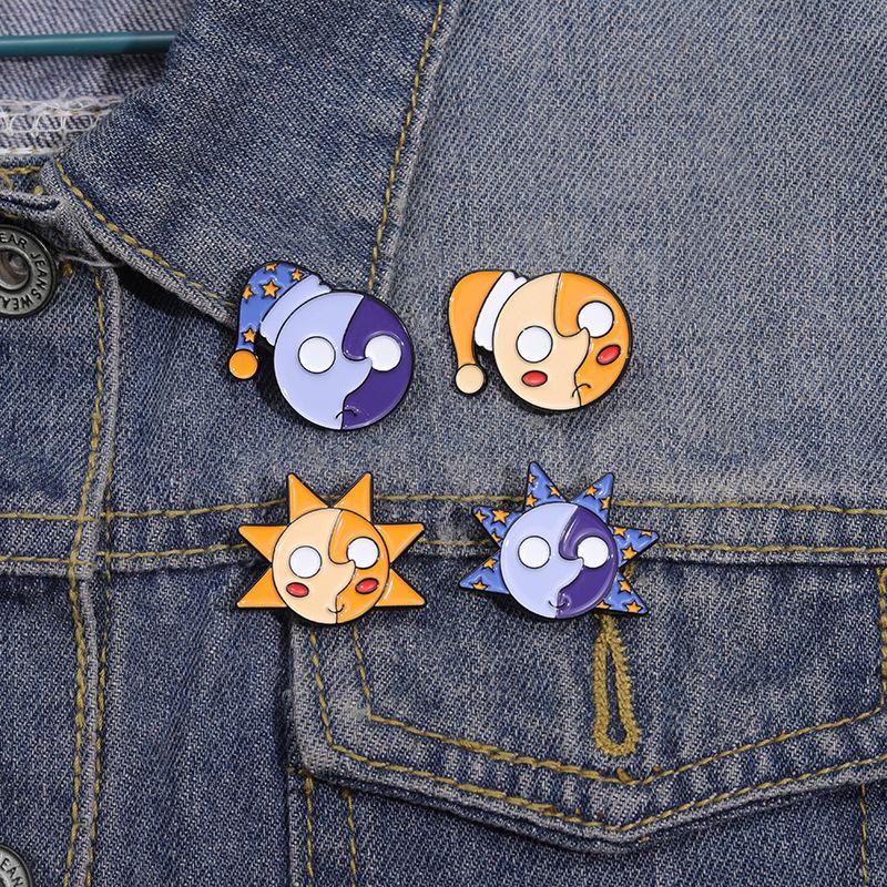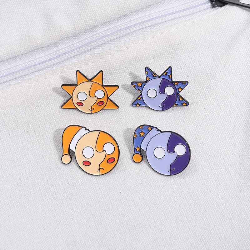Broche Creativo Sol Luna Tema Cool Horror Accesorios de Ropa Insignia Conmemorativa Periférica de Animación de Dibujos Animados para Niños