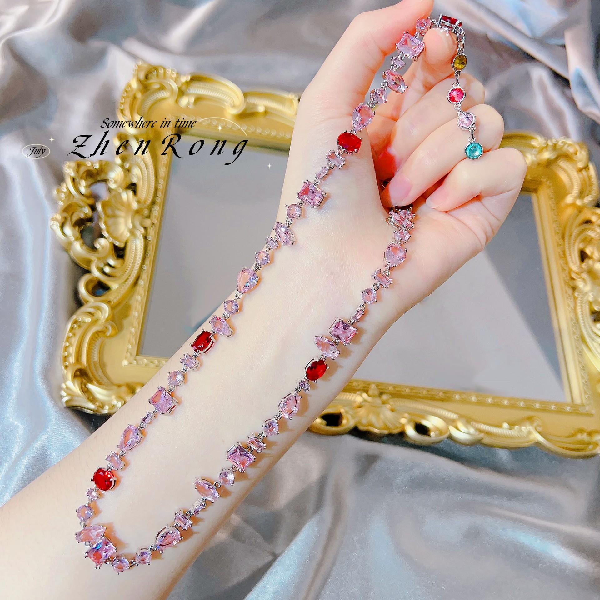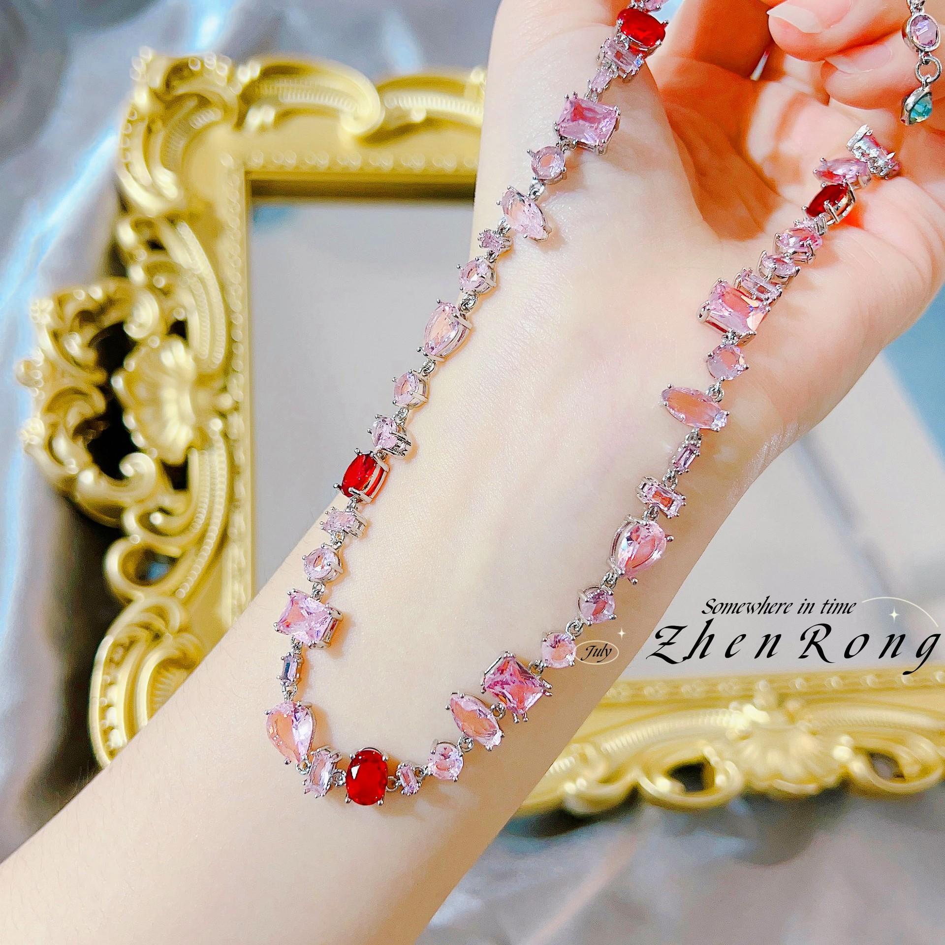 Pink diamond necklace [40 + 5cm]], Navy blue diamond necklace [40 + 5cm]]