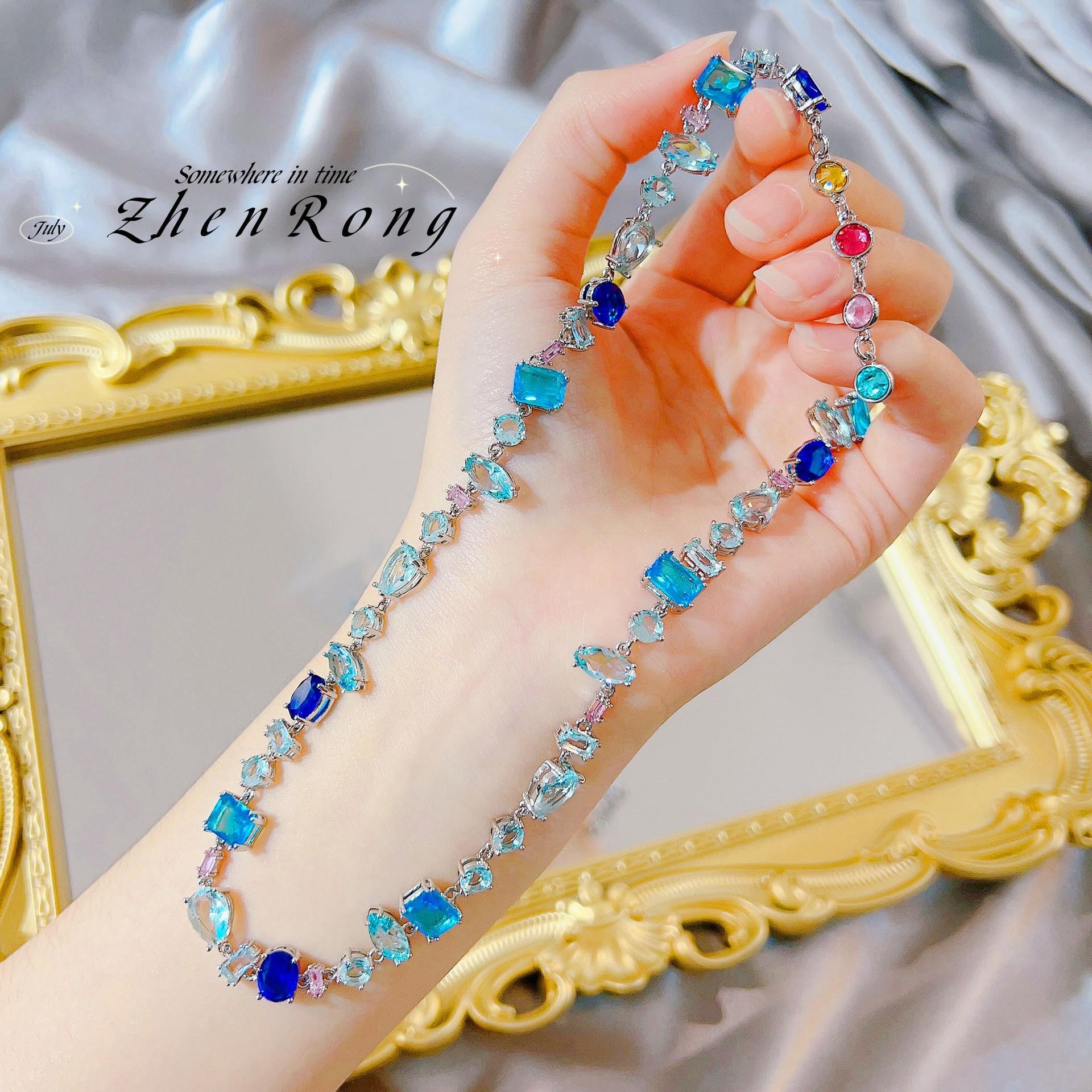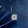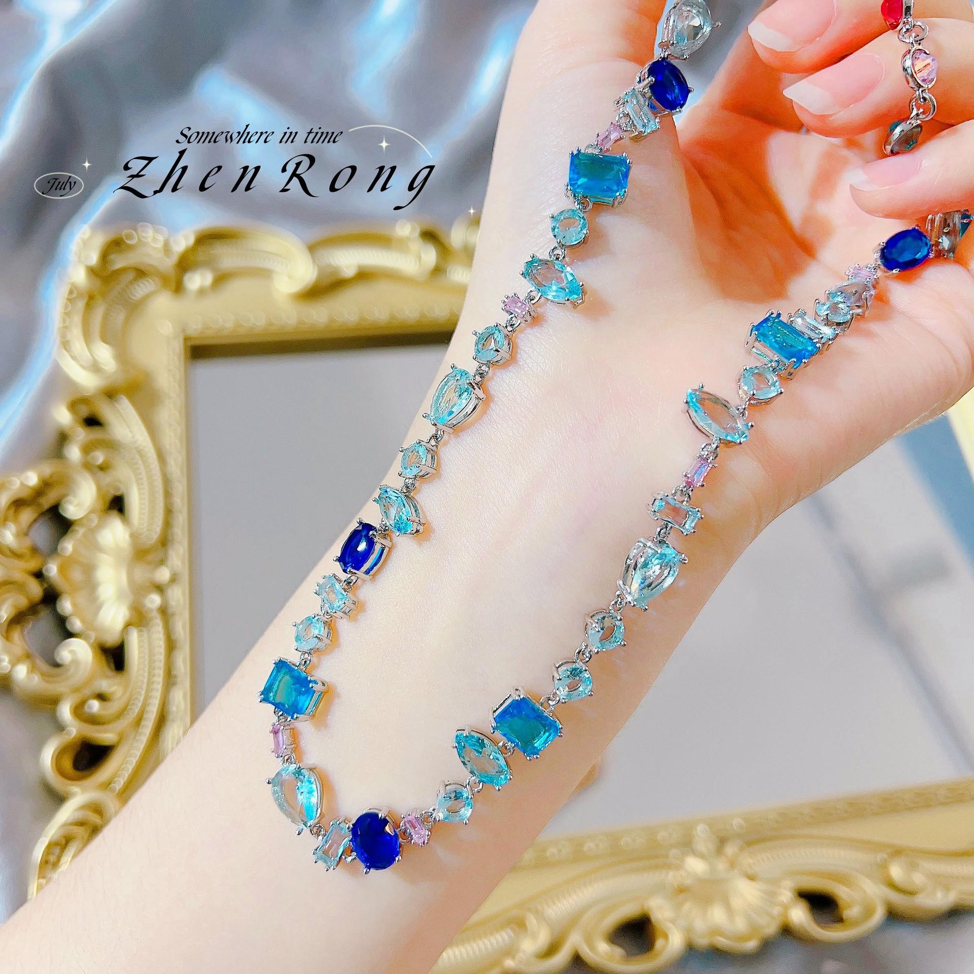 Collar de topacio femenino de lujo, de alta calidad y con incrustaciones de diamantes rosas y gemas de cristal azul marino cuadrado.