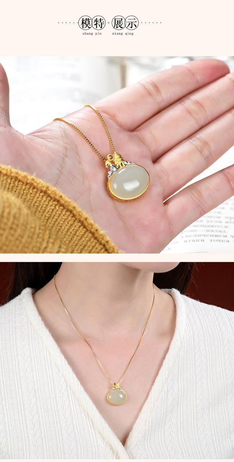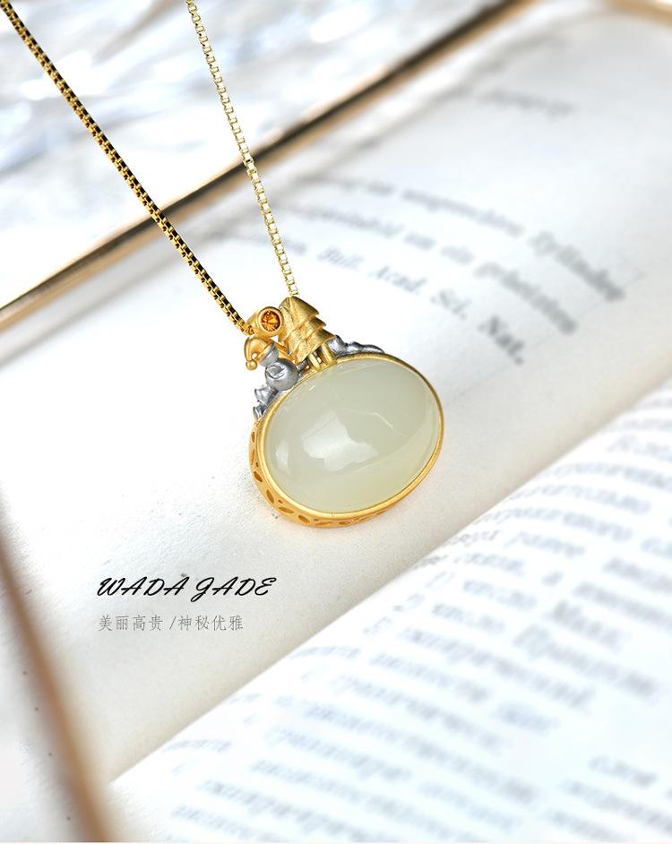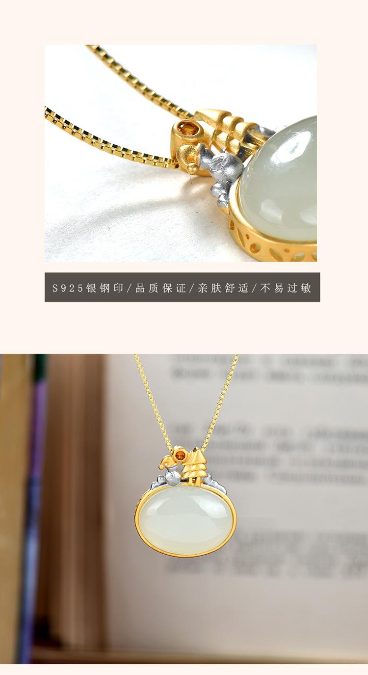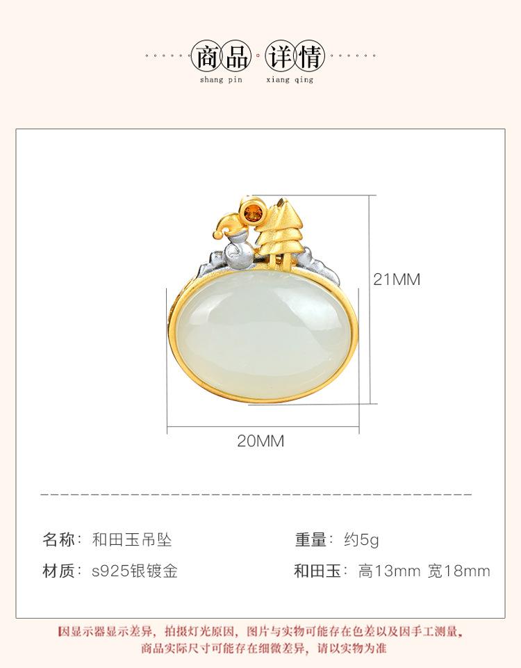 Colgante de jade hetiano natural chapado en oro de plata esterlina S925 de Yilu, personalizado, con lindo muñeco de nieve, pino y ciprés, collar para mujer