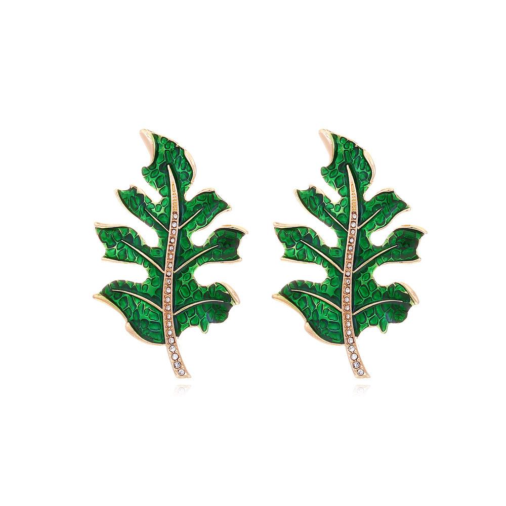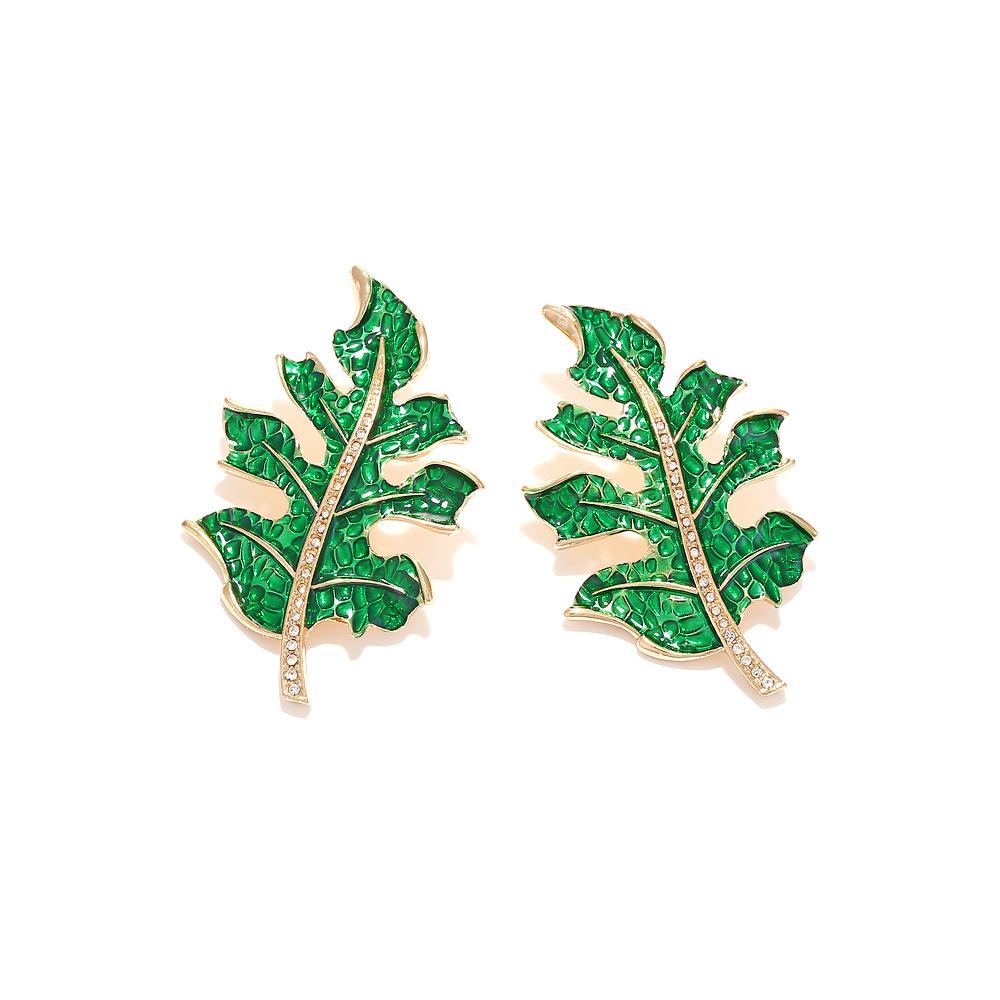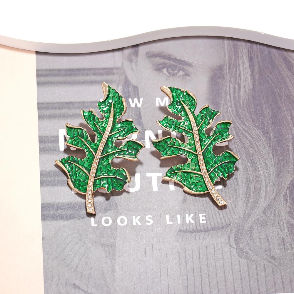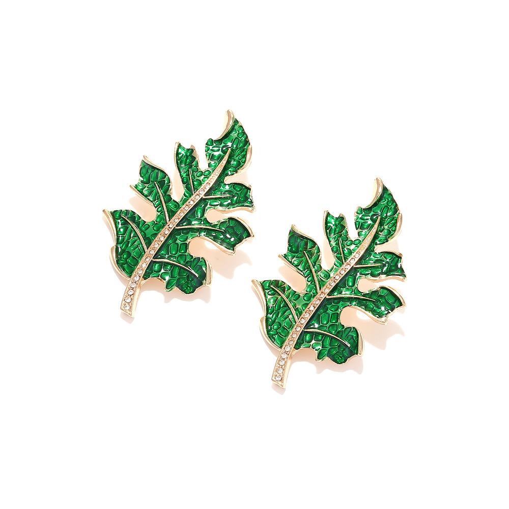 Pendientes de hoja de aceite con gota de aleación creativa de moda europea y americana, pendientes de hoja de diamantes de imitación con personalidad y temperamento, pendientes exagerados para mujer