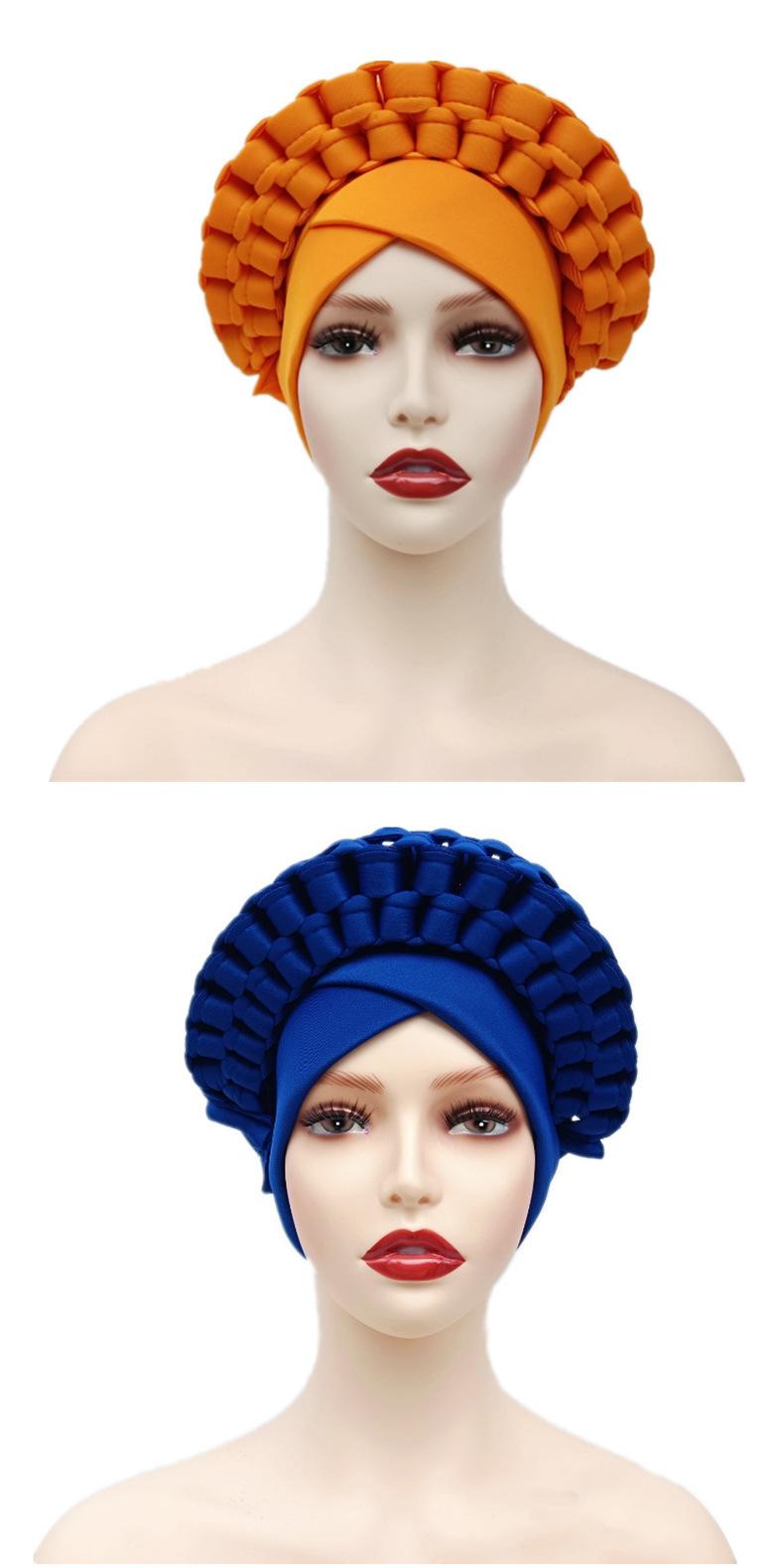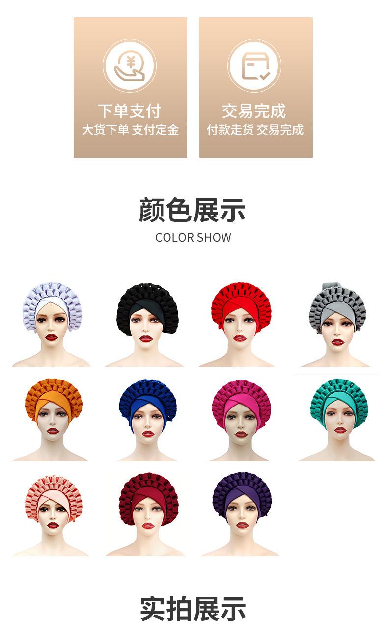 Nuevo Sombrero Turbante Musulmán Capa Espacial Color Sólido Sombrero Ajustable Autogele Sombrero Africano en Stock Venta al por Mayor