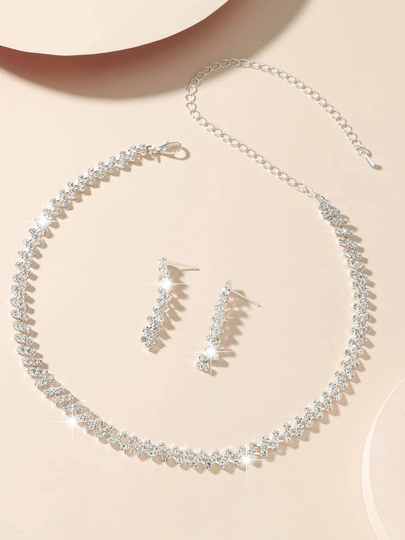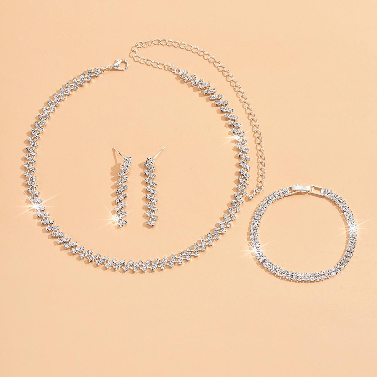 Collar de diamantes de imitación para novia, cadena de clavícula, estilo europeo y americano, venta caliente, con tres piezas, combina con todo, sencillo