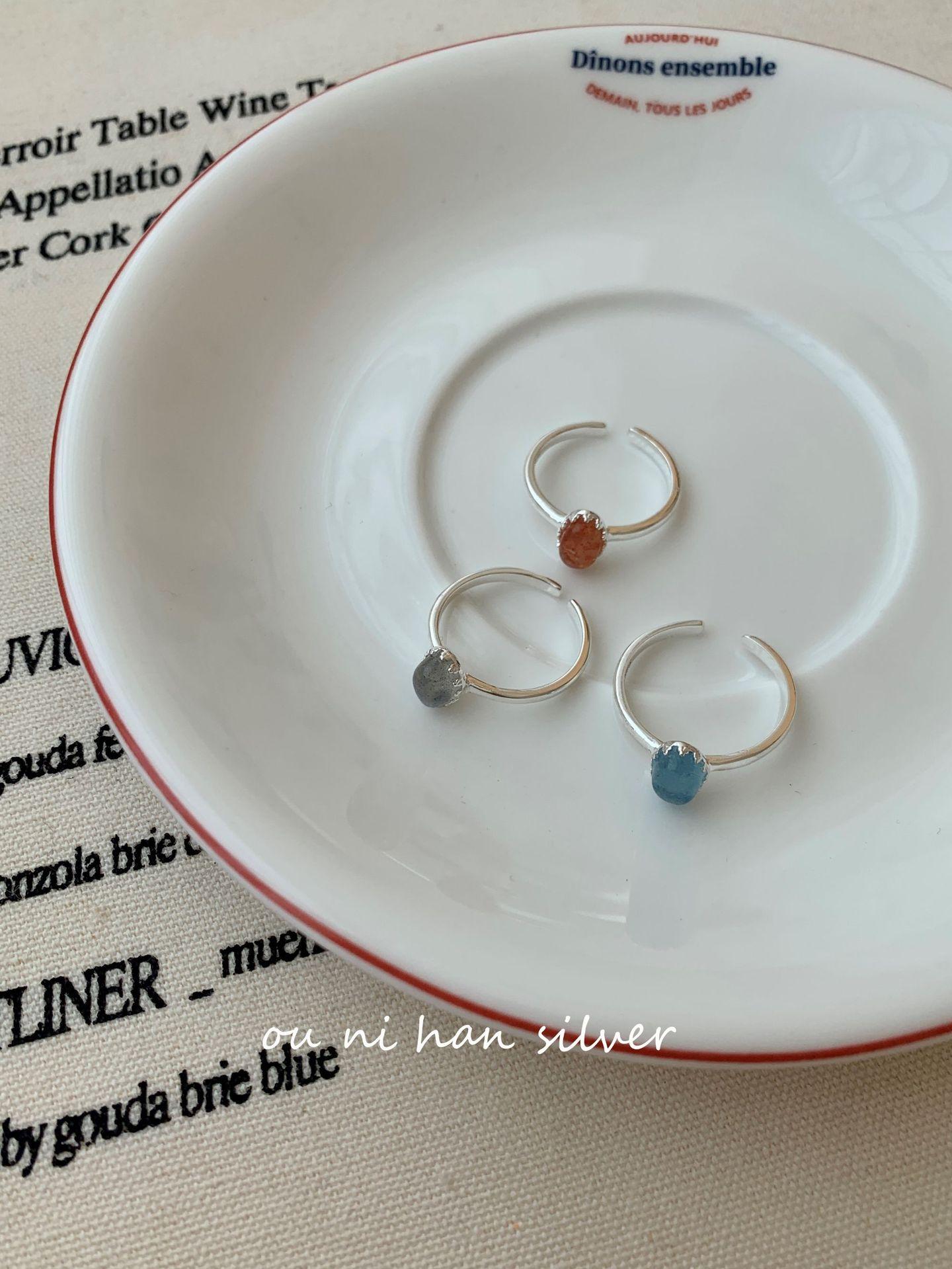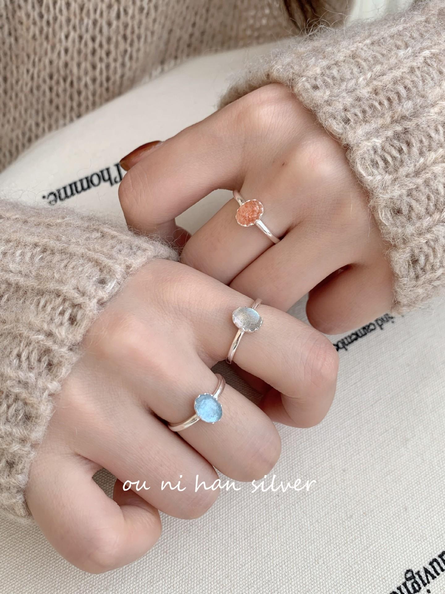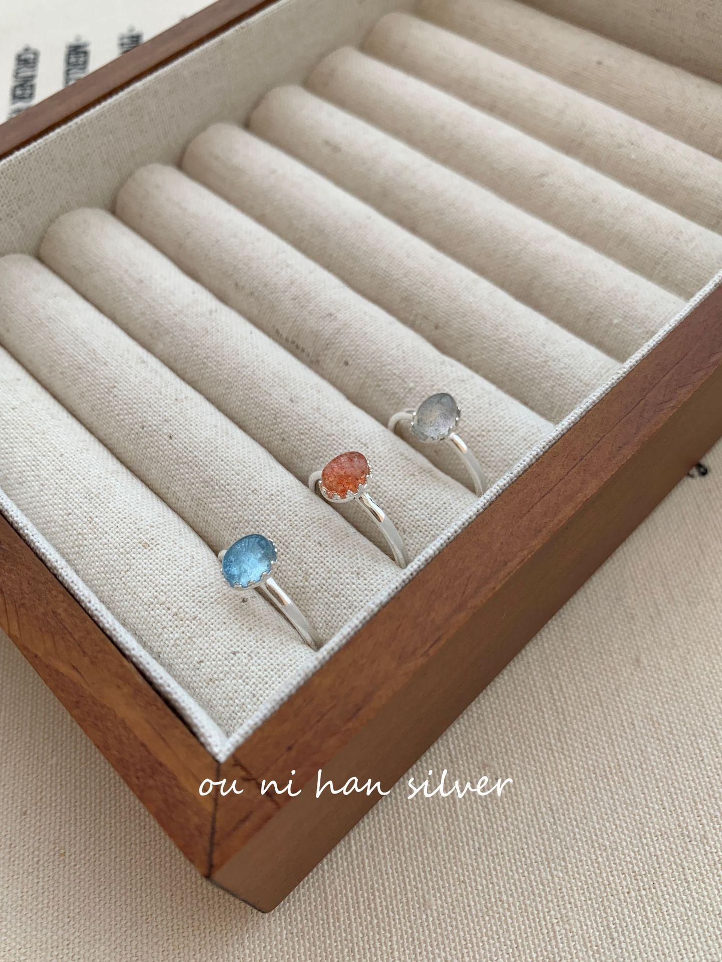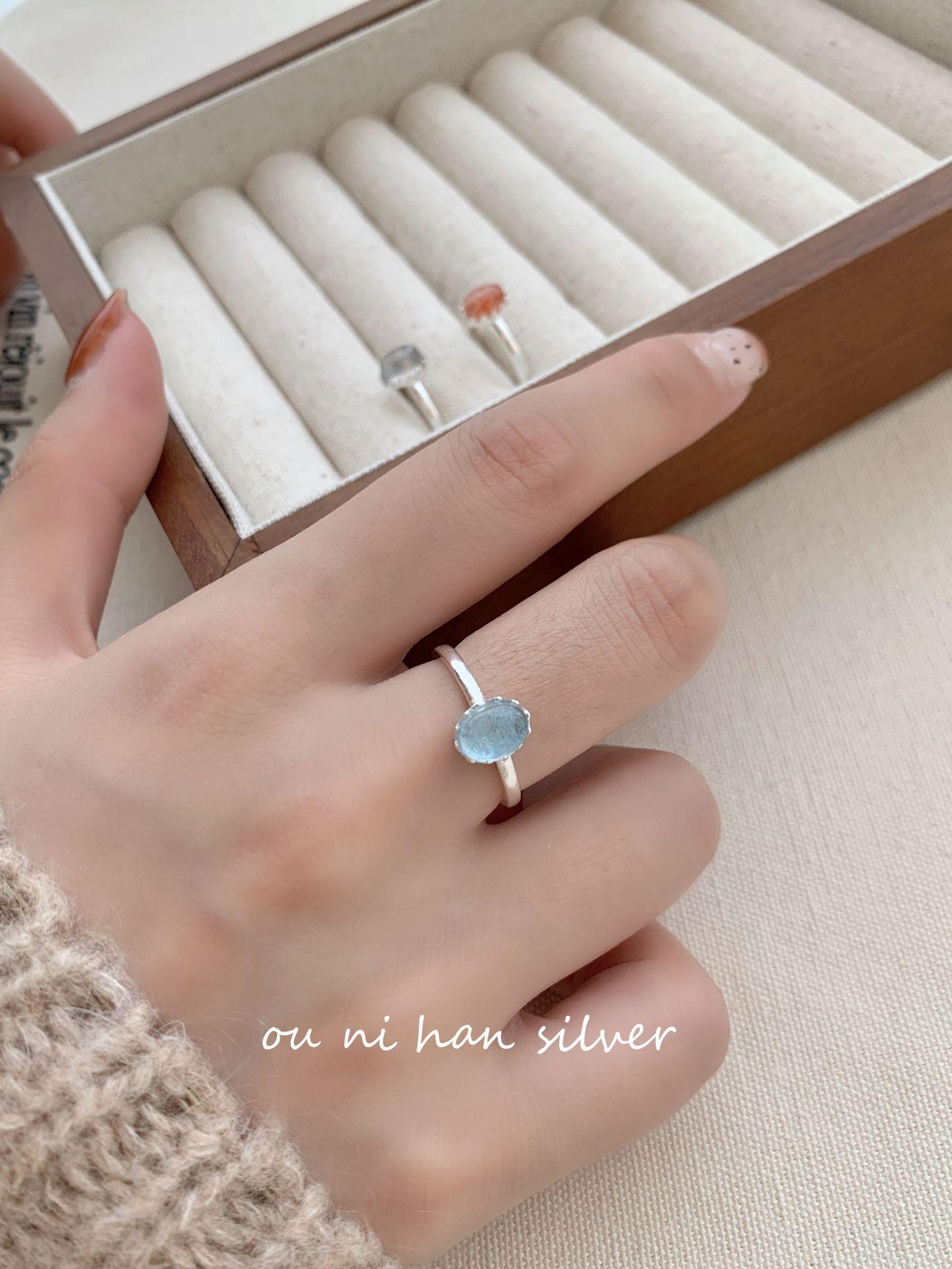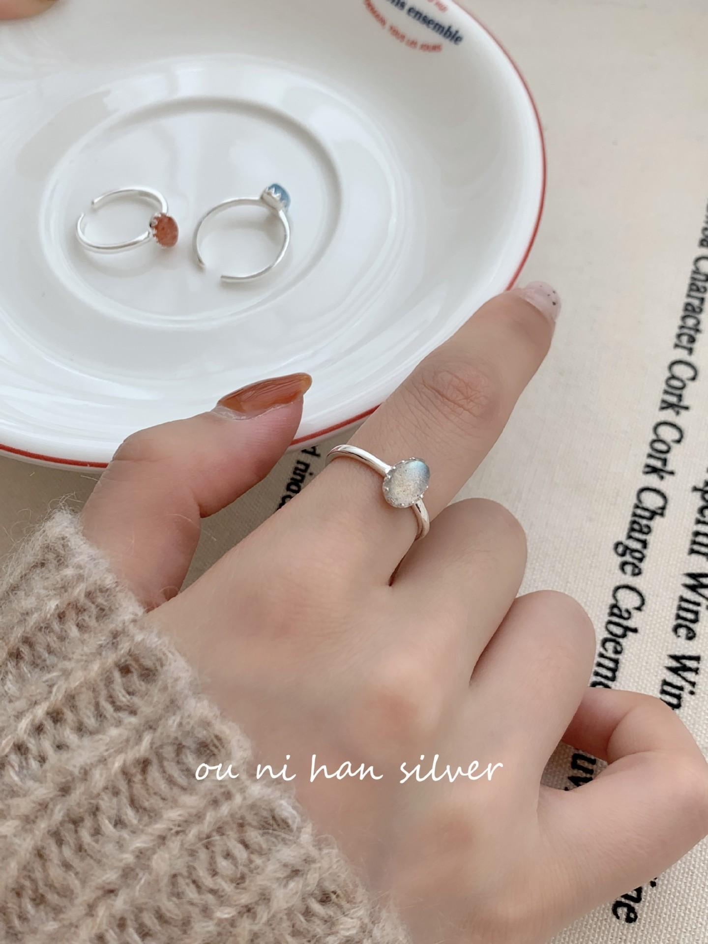 Anillo de plata de ley S925 con forma ovalada de piedra lunar azul marino de Oni, Corea del Sur, para mujer, diseño de nicho, anillo de dedo índice de moda