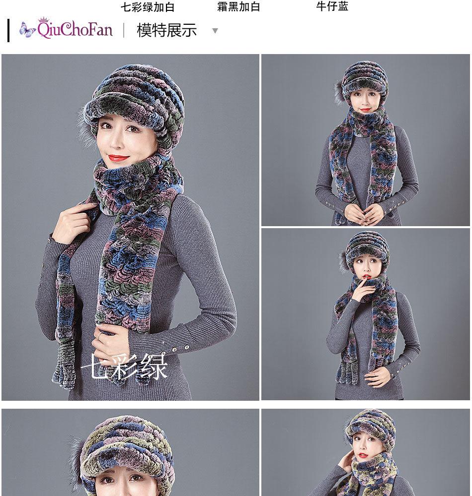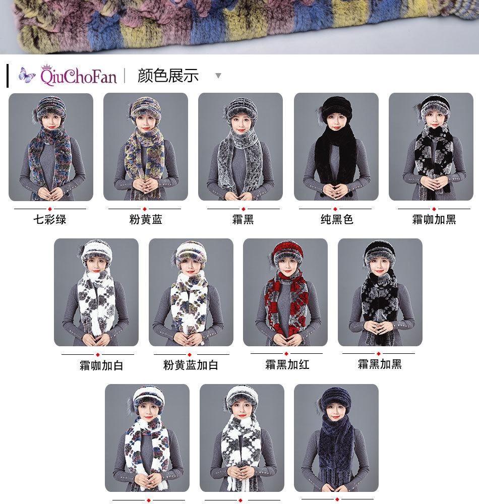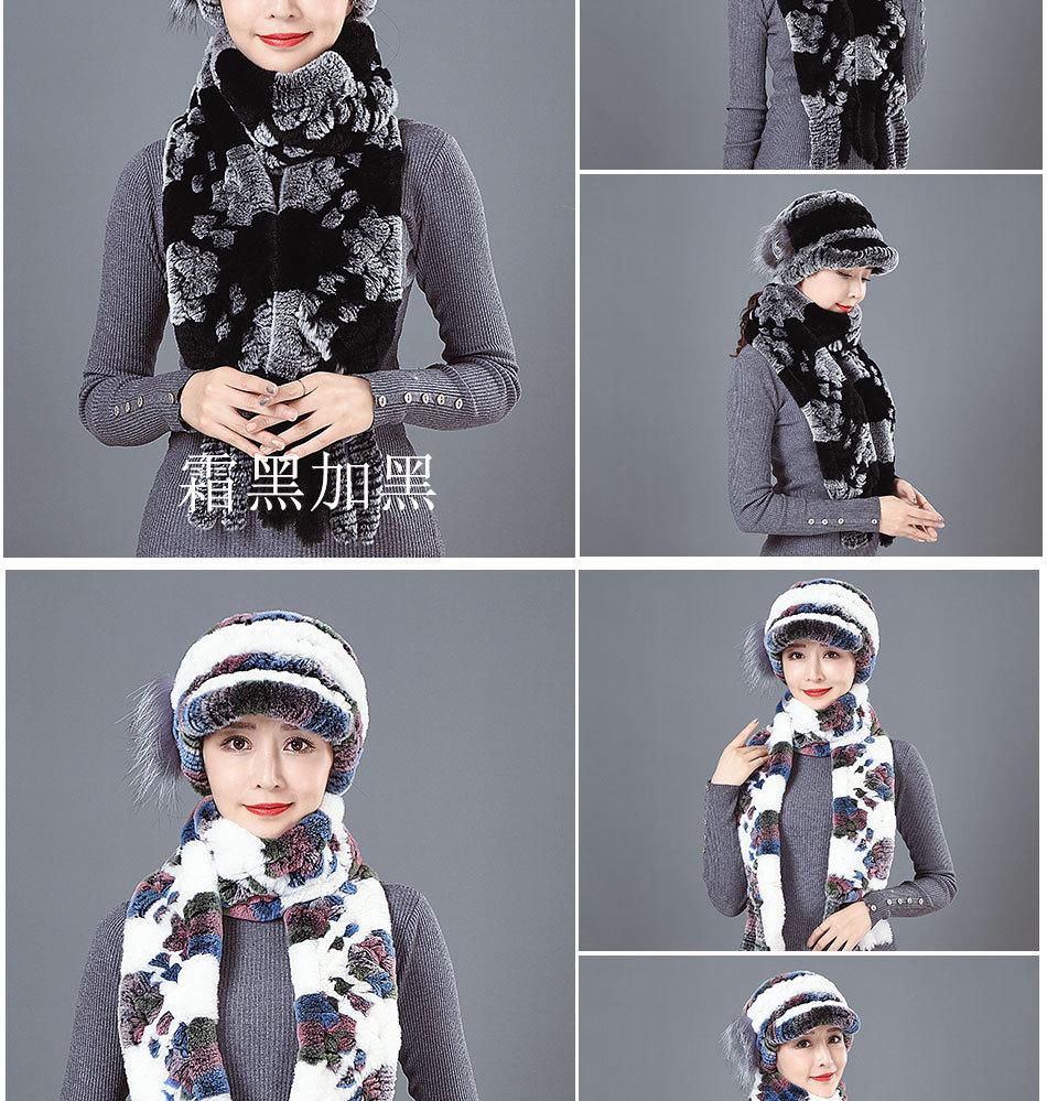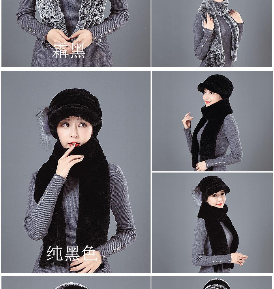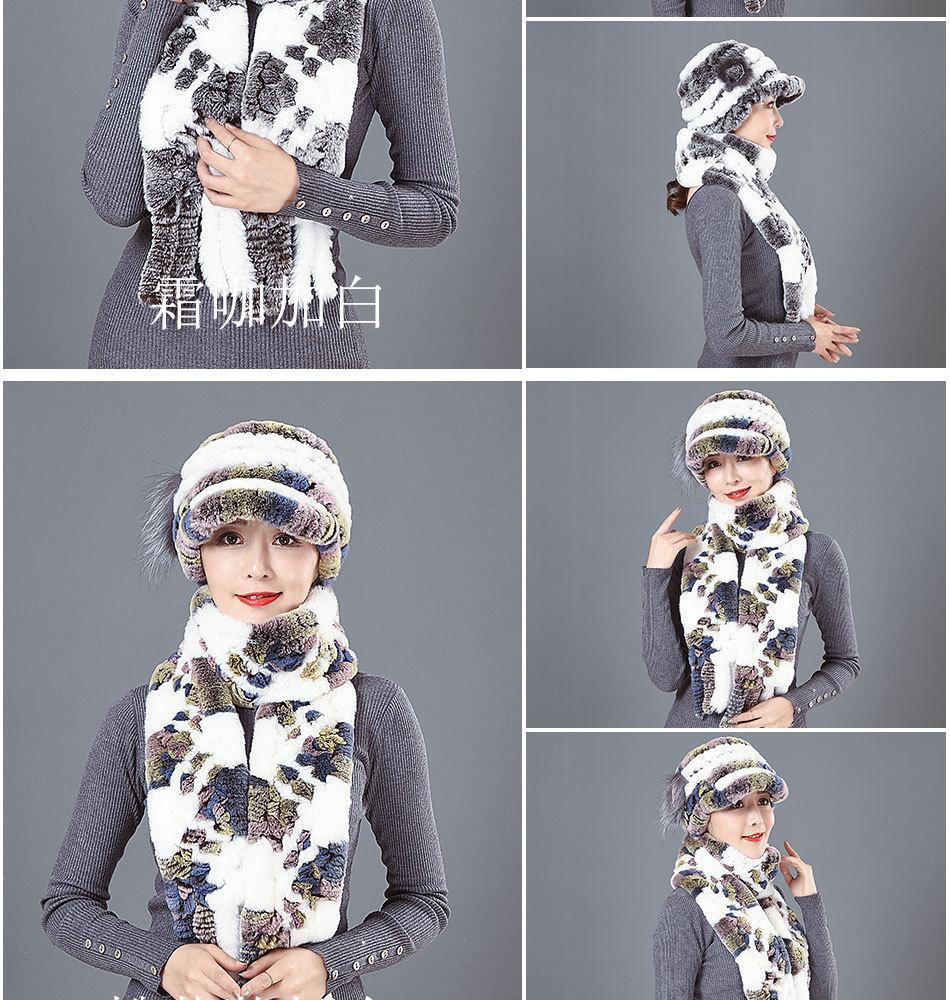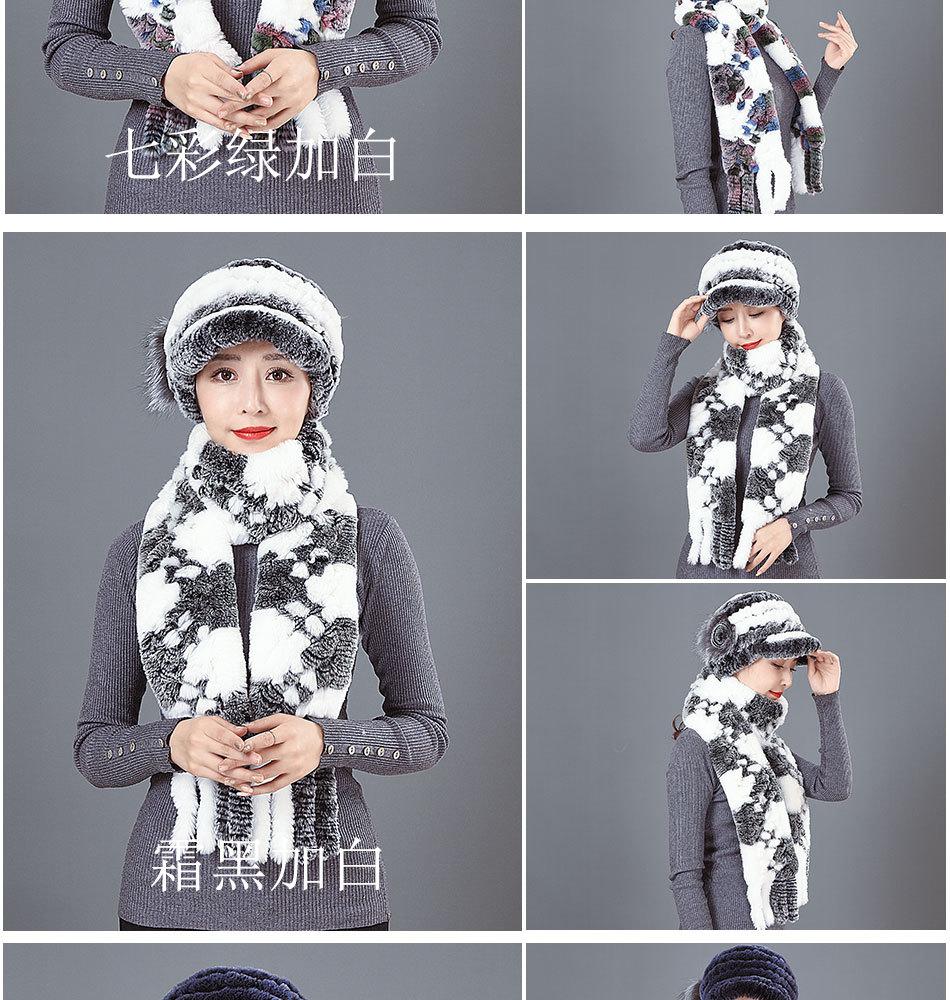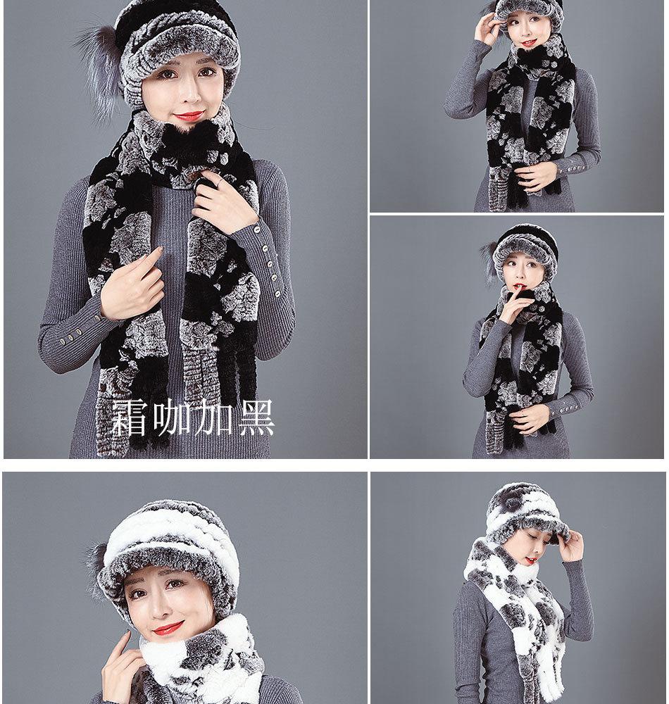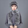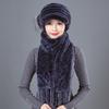 Conjunto de Dos Piezas Bufanda Sombrero para Mediana Edad y Ancianos Traje Cálido Piel de Conejo Rex Tejido Gorros Cálidos Gruesos Bufanda de Piel