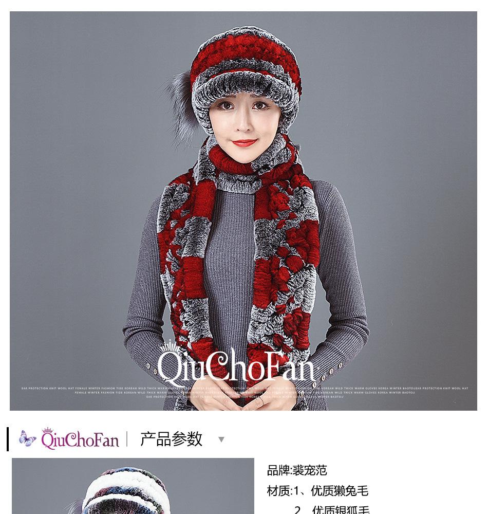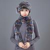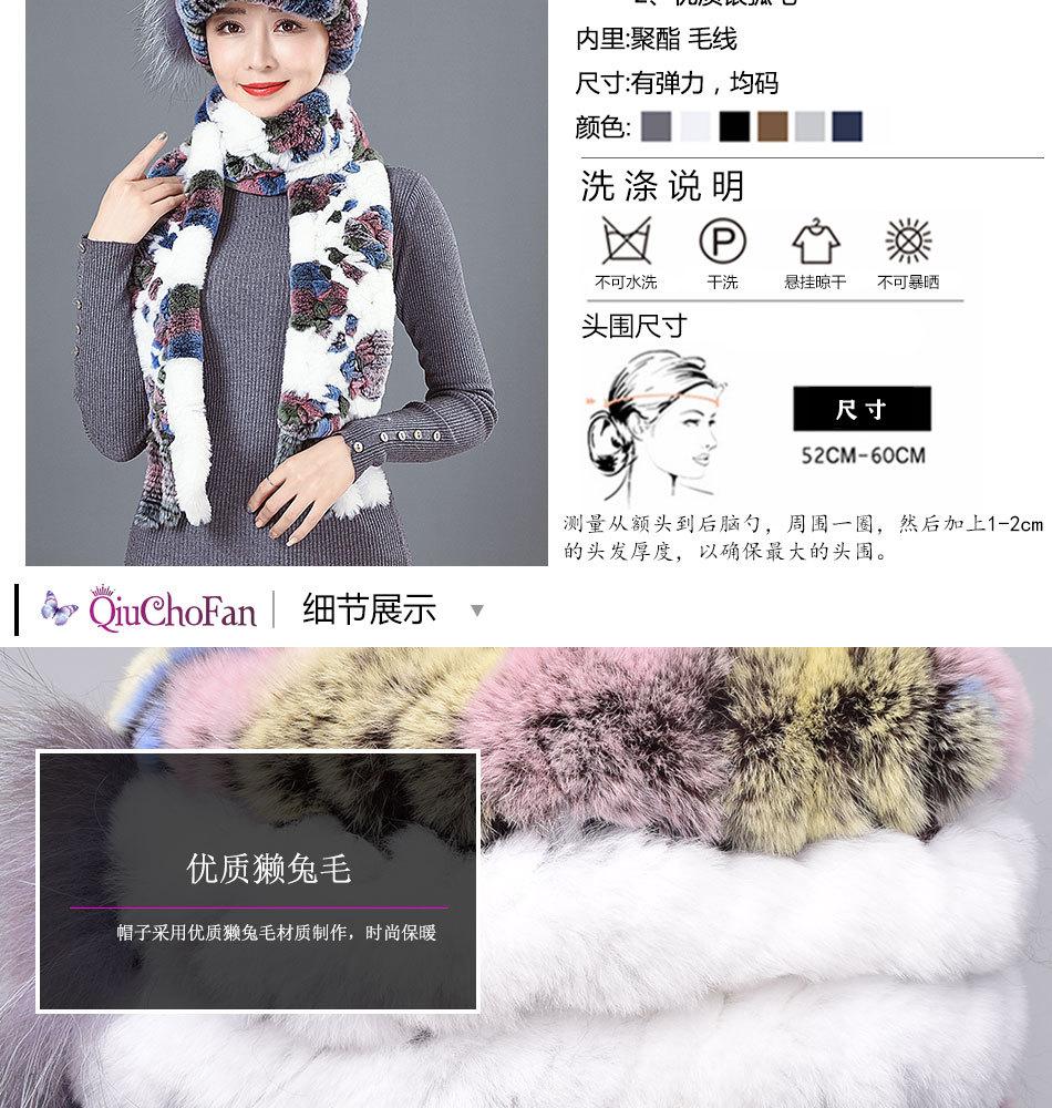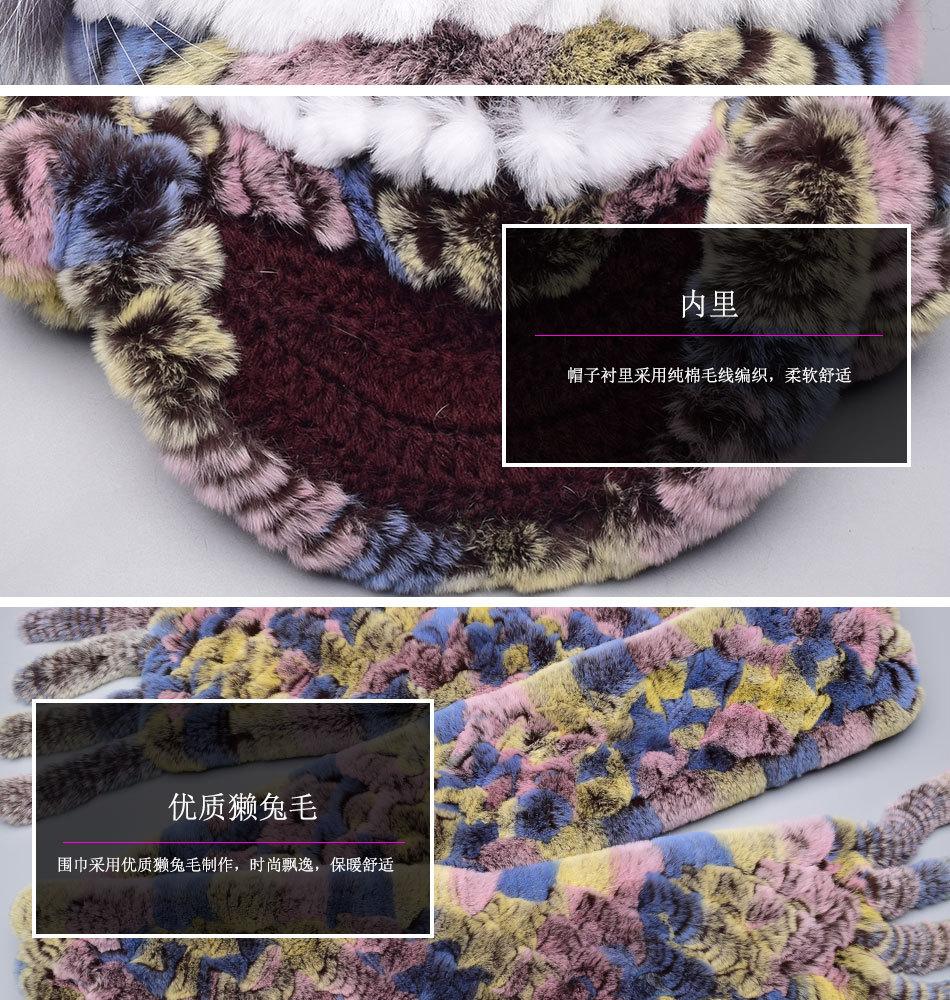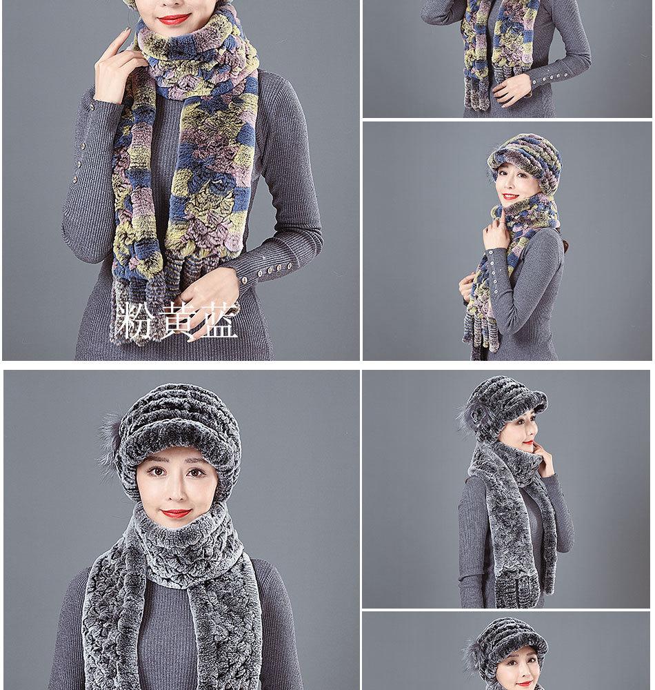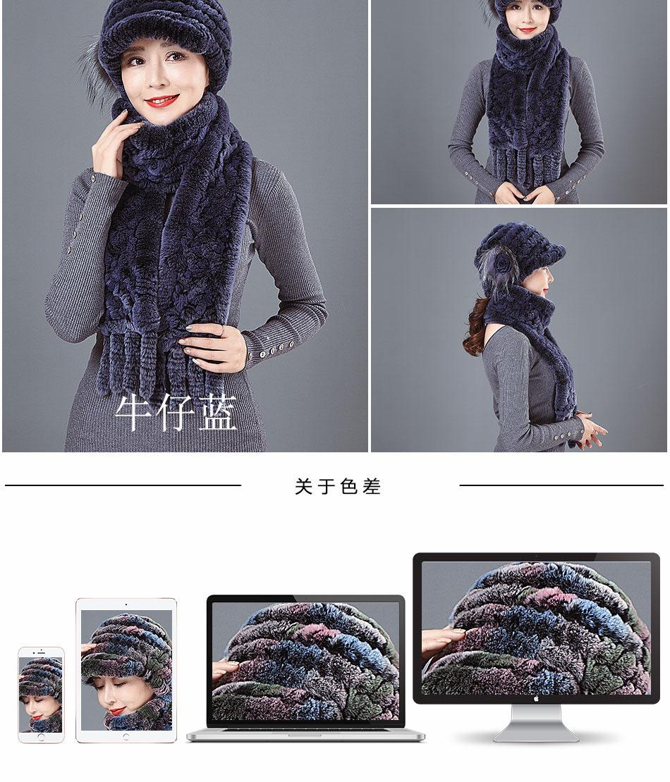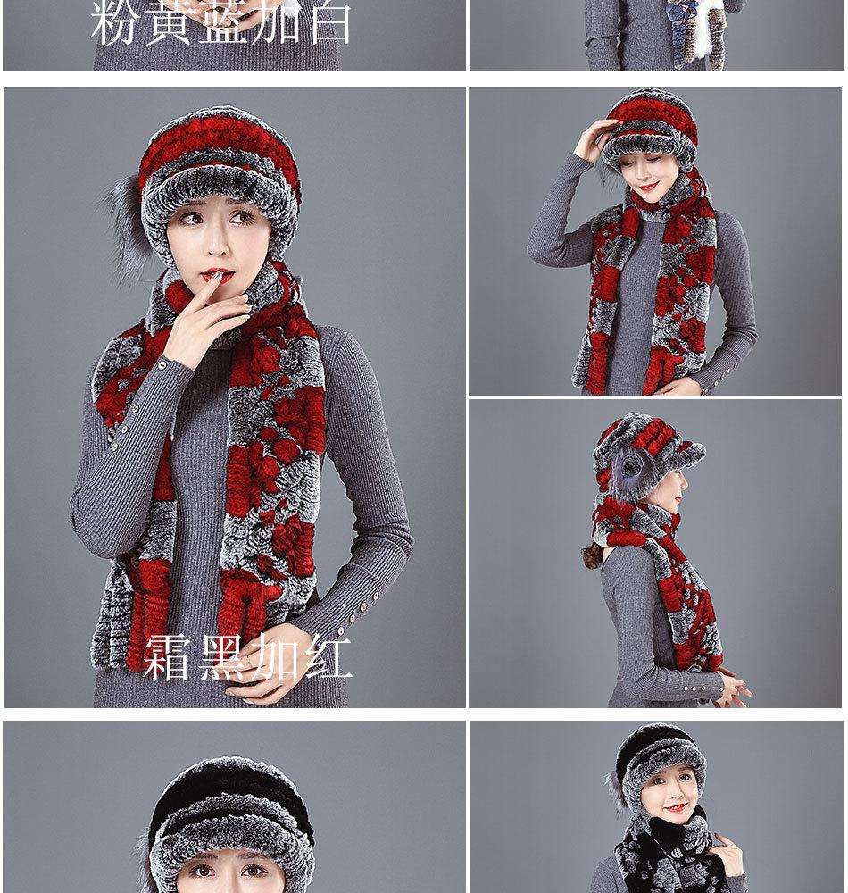 Conjunto de Dos Piezas Bufanda Sombrero para Mediana Edad y Ancianos Traje Cálido Piel de Conejo Rex Tejido Gorros Cálidos Gruesos Bufanda de Piel