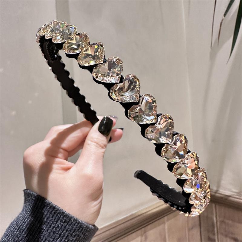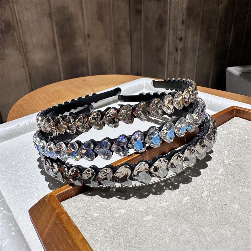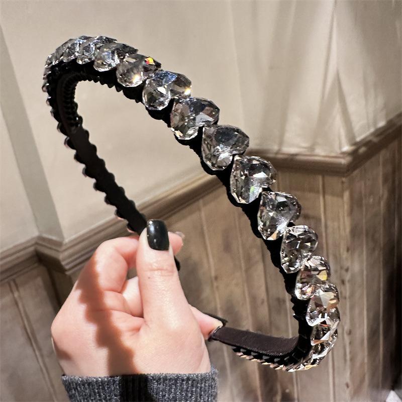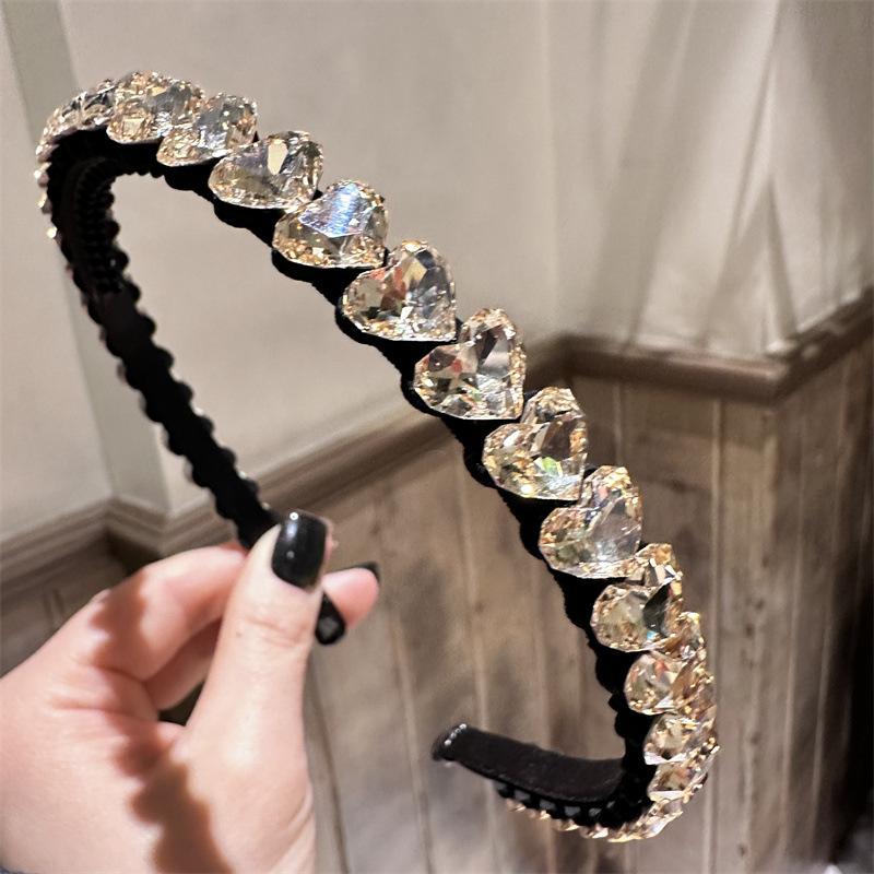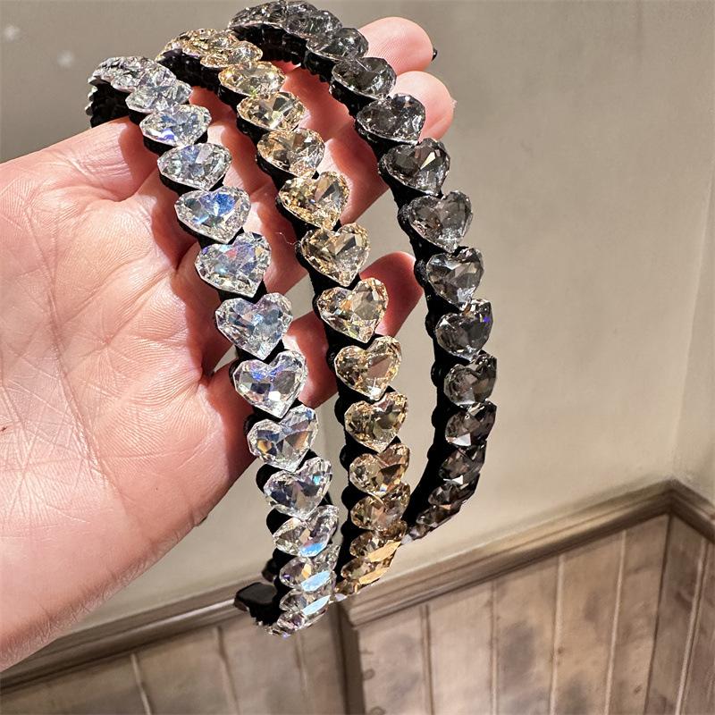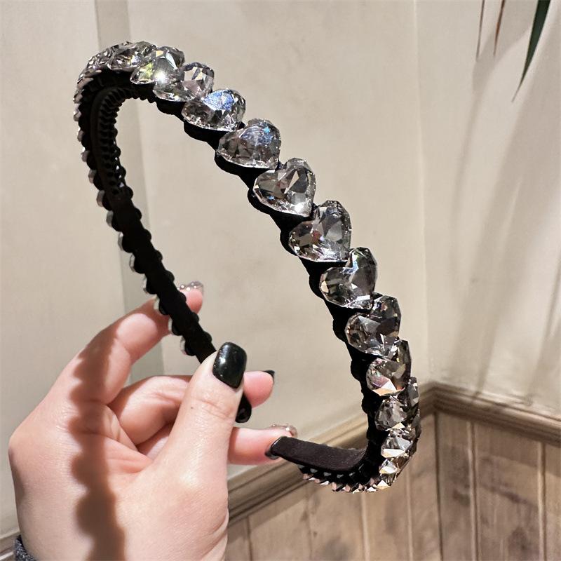 Diadema de cristal con forma de corazón de estilo francés, ligera, de lujo, con borde estrecho, antideslizante, moderna, con diamantes que combinan con todo, con horquillas de hierba para celebridades de Internet, accesorios para el cabello