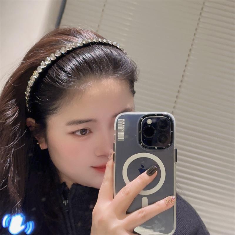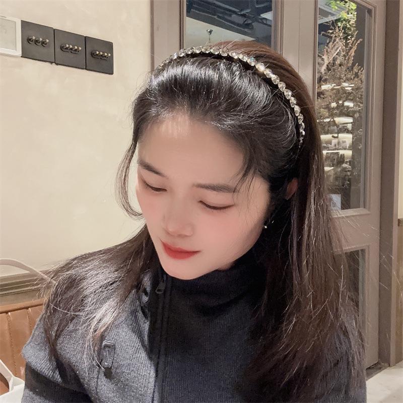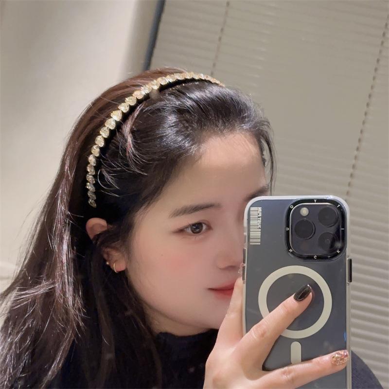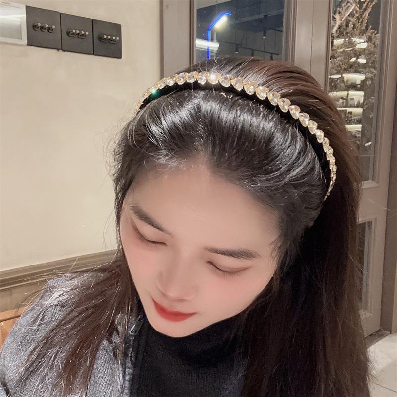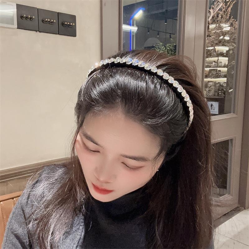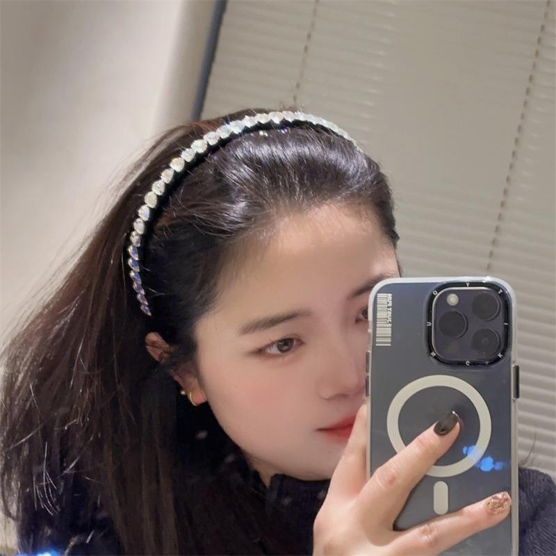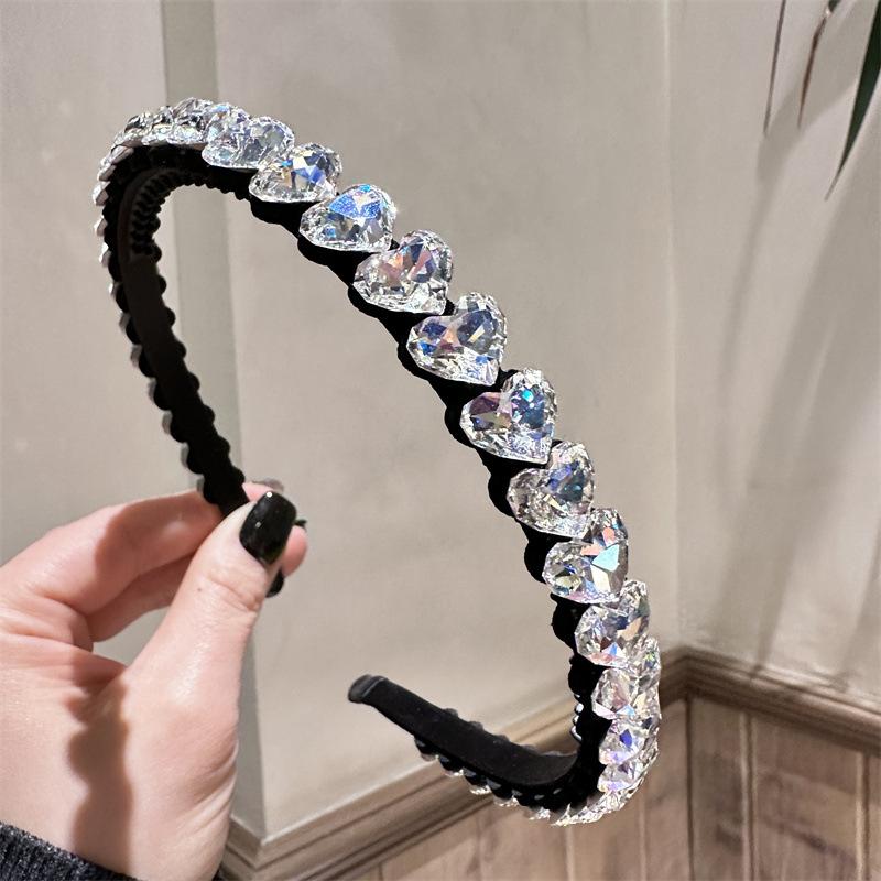 Diadema de cristal con forma de corazón de estilo francés, ligera, de lujo, con borde estrecho, antideslizante, moderna, con diamantes que combinan con todo, con horquillas de hierba para celebridades de Internet, accesorios para el cabello