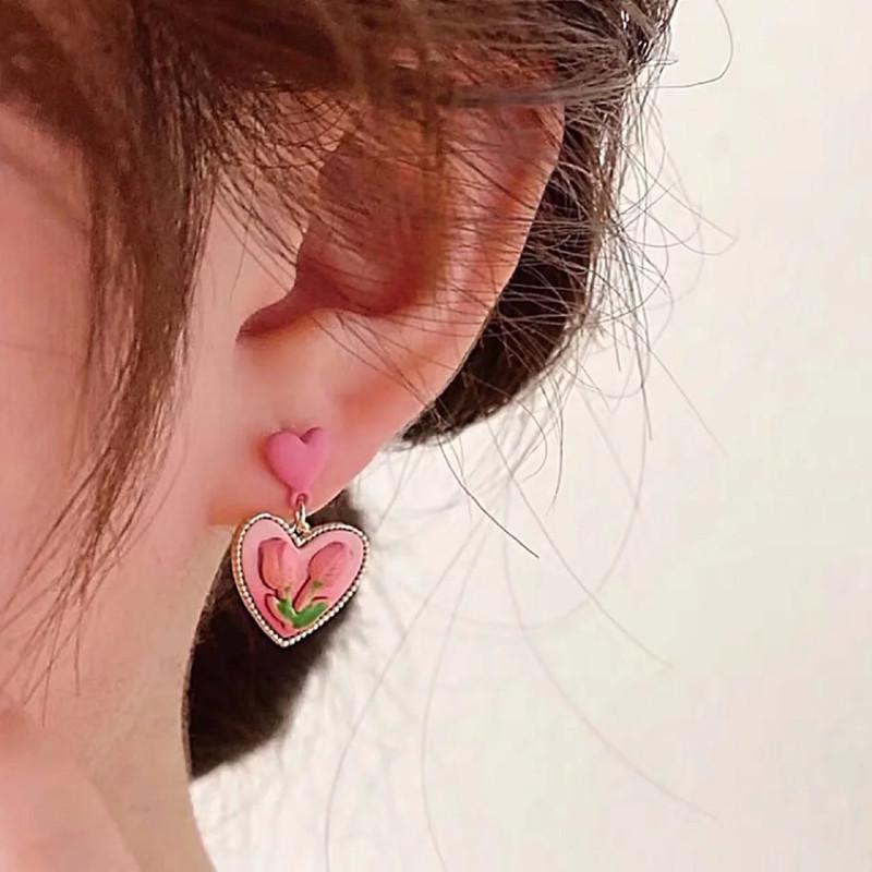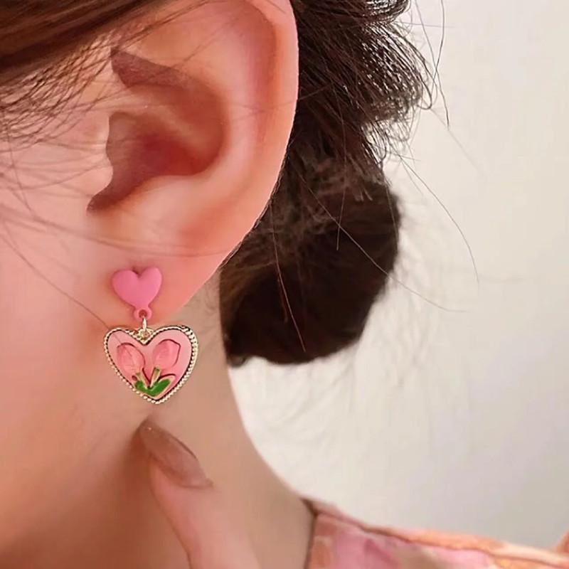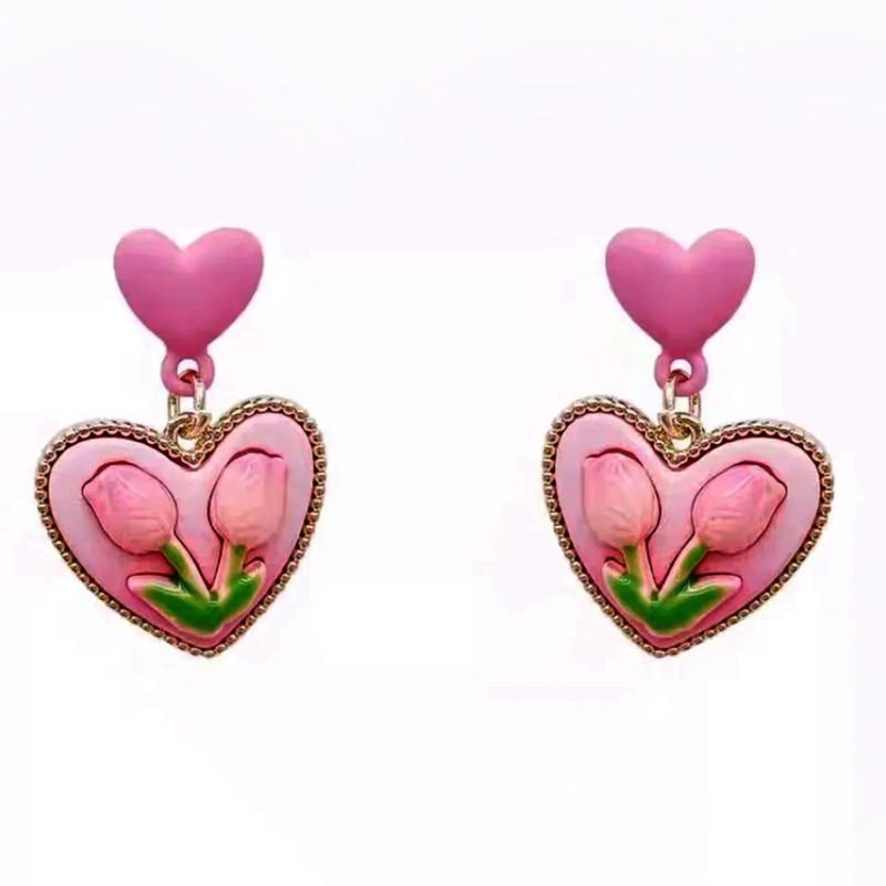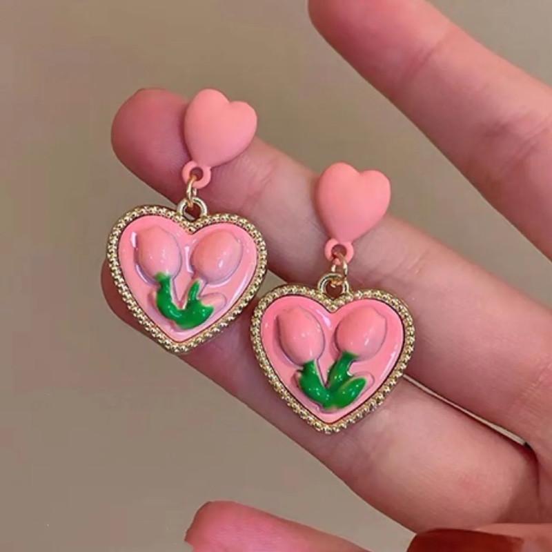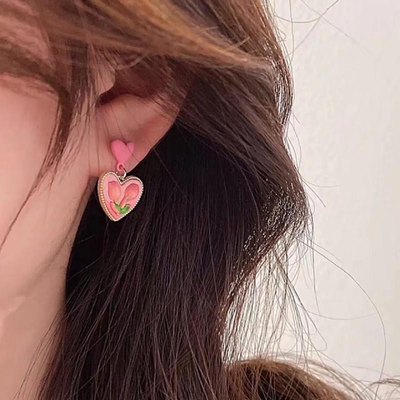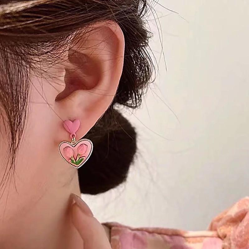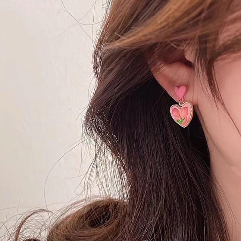 Hermosos pendientes de flor de tulipán rosa, diseño de nicho, pendientes de alta gama, nuevos pendientes de moda para mujer, verano