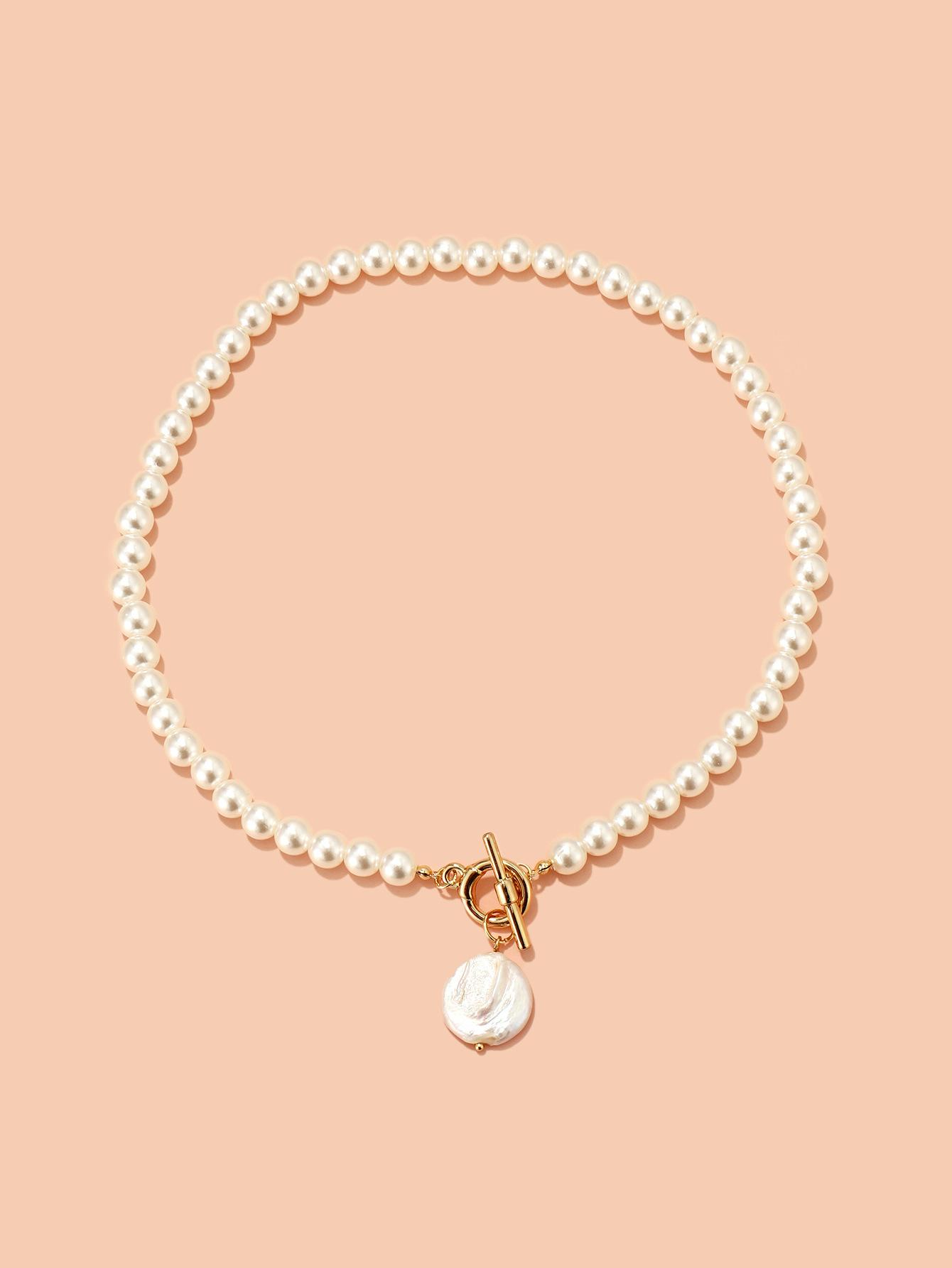 Collar de perlas elegante de moda europea y americana, collar con colgante de perlas redondas de verano para mujer, nueva cadena de clavícula que combina con todo.