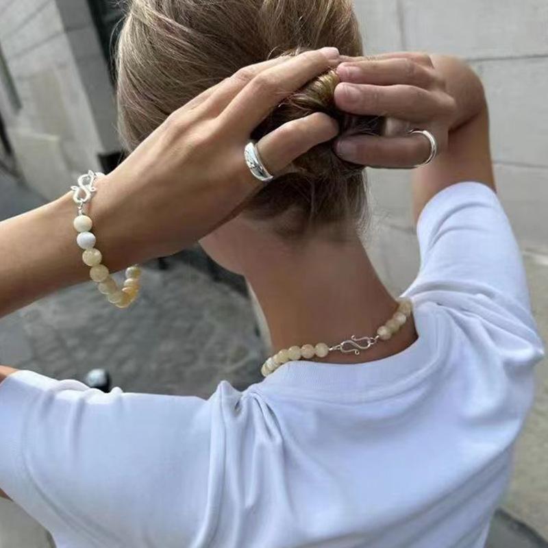 Collar de cuentas de ágata amarilla, nuevo en stock, cadena de clavícula con diseño de nicho de lujo ligero, collar elegante y sencillo transfronterizo europeo y americano.