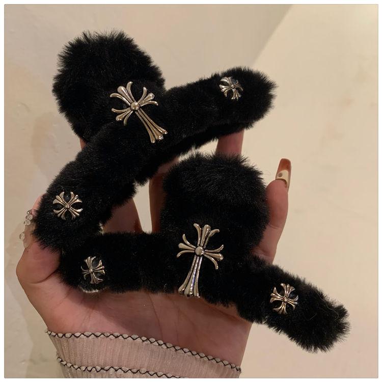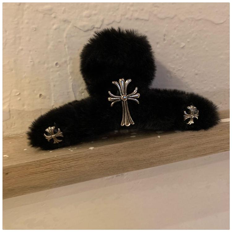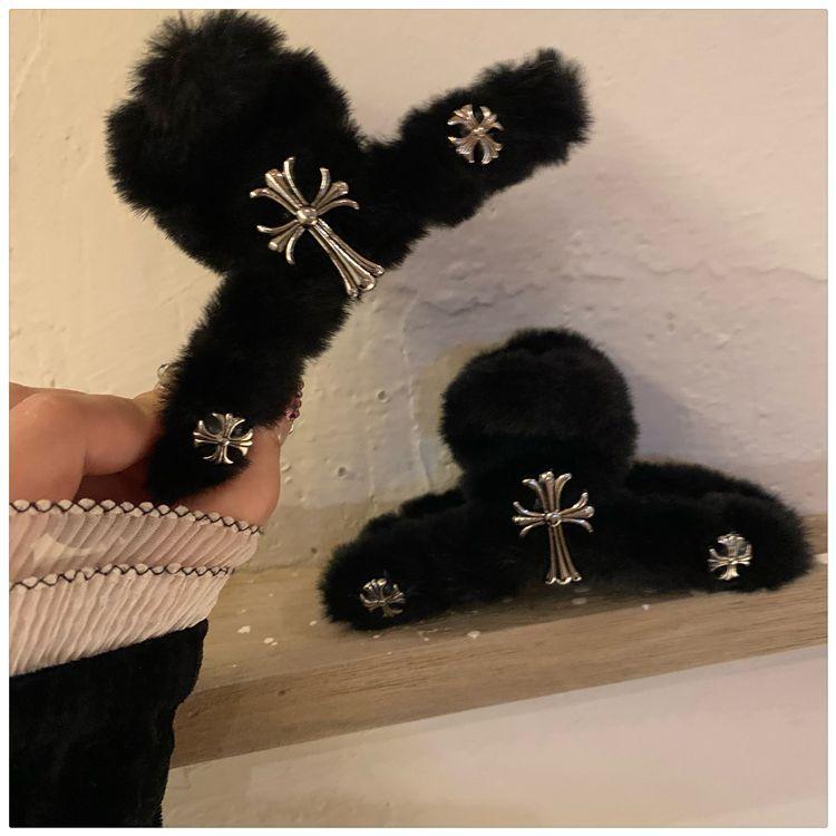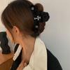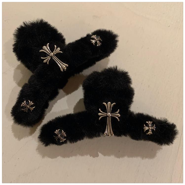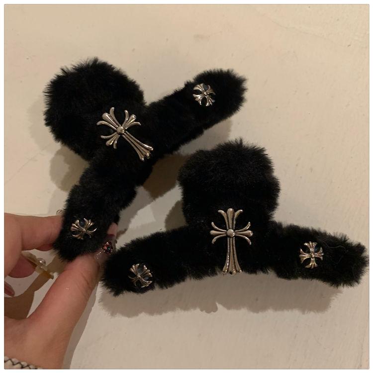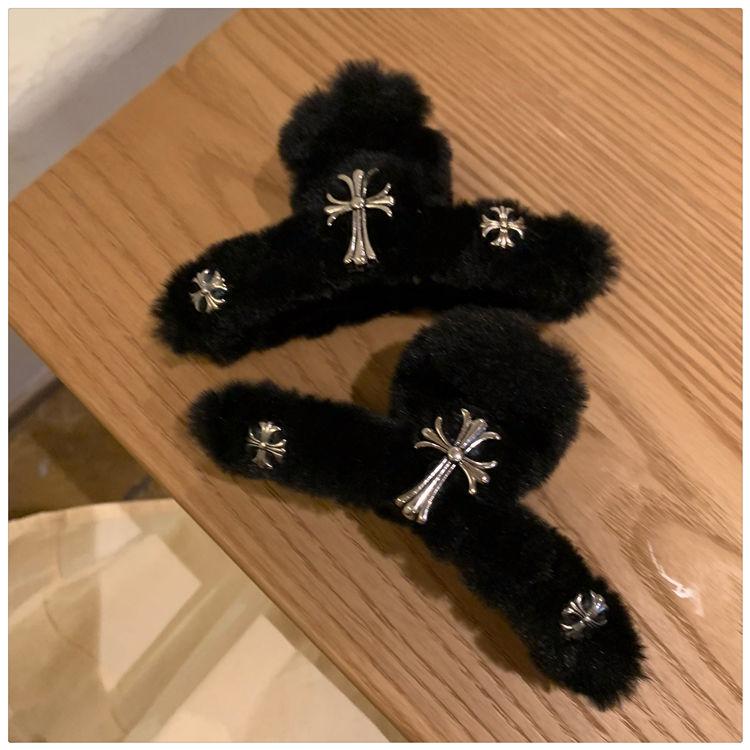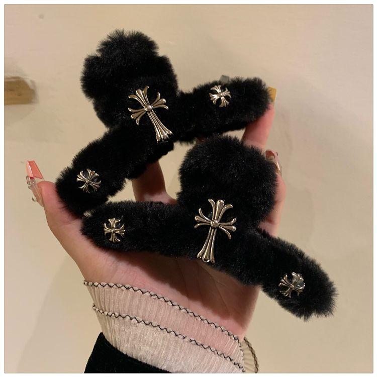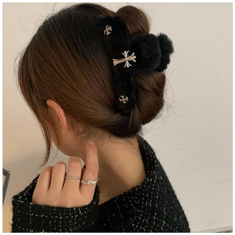 Horquilla de felpa para el pelo con forma de tiburón, estilo francés, color negro, para otoño e invierno, para mujer