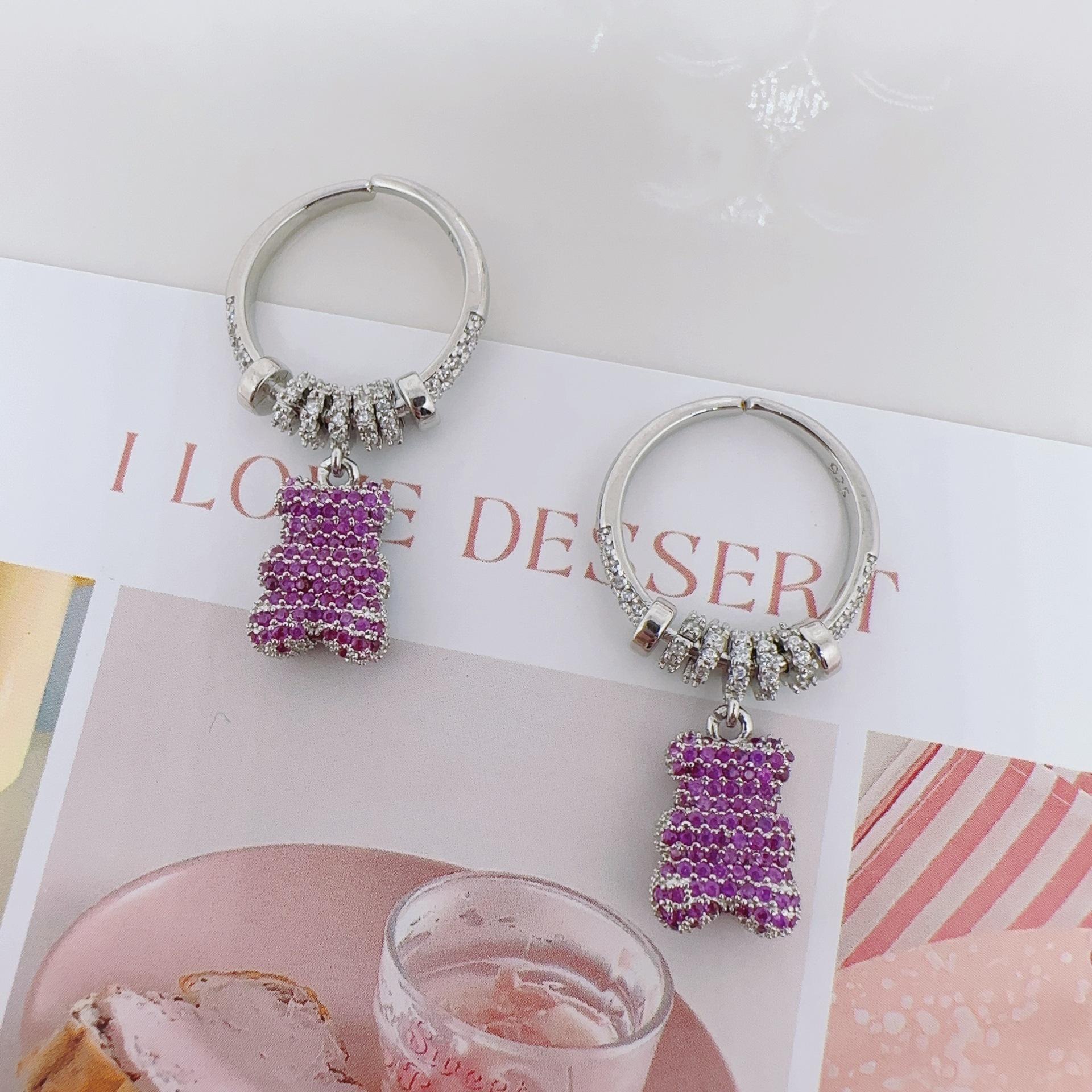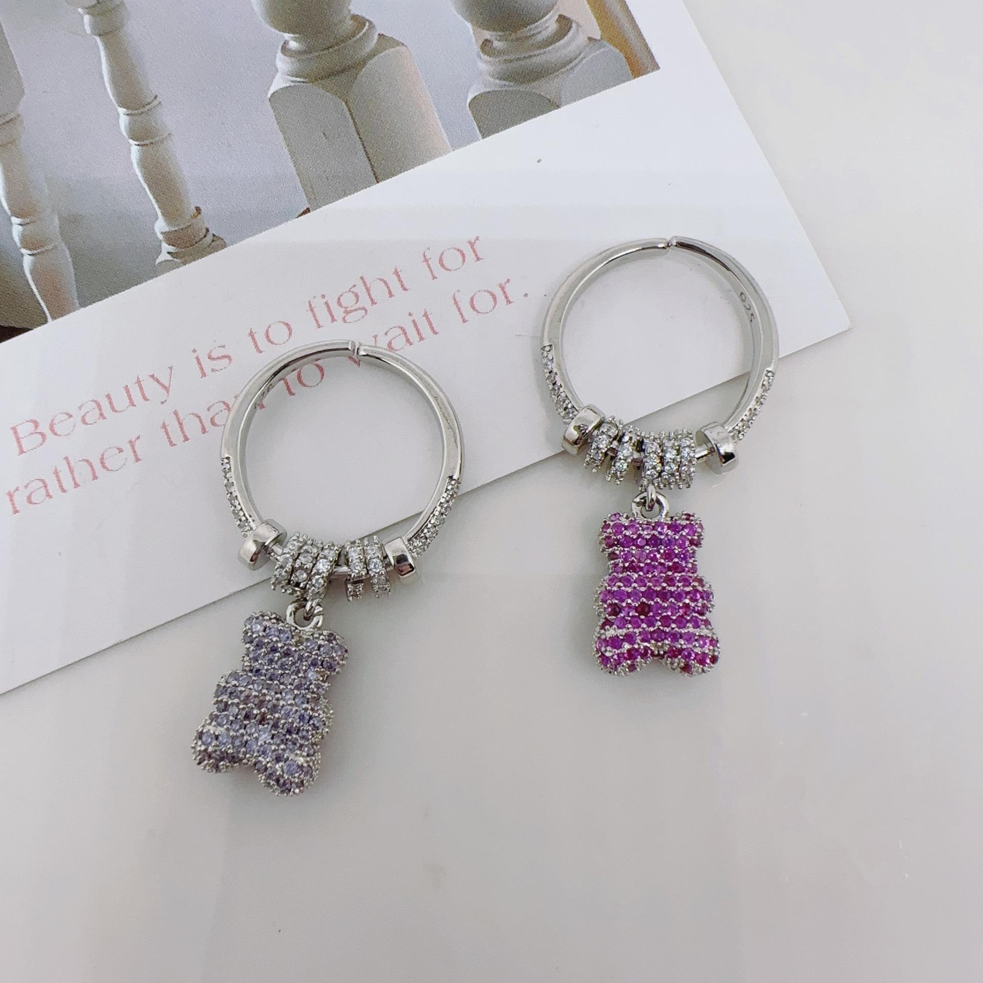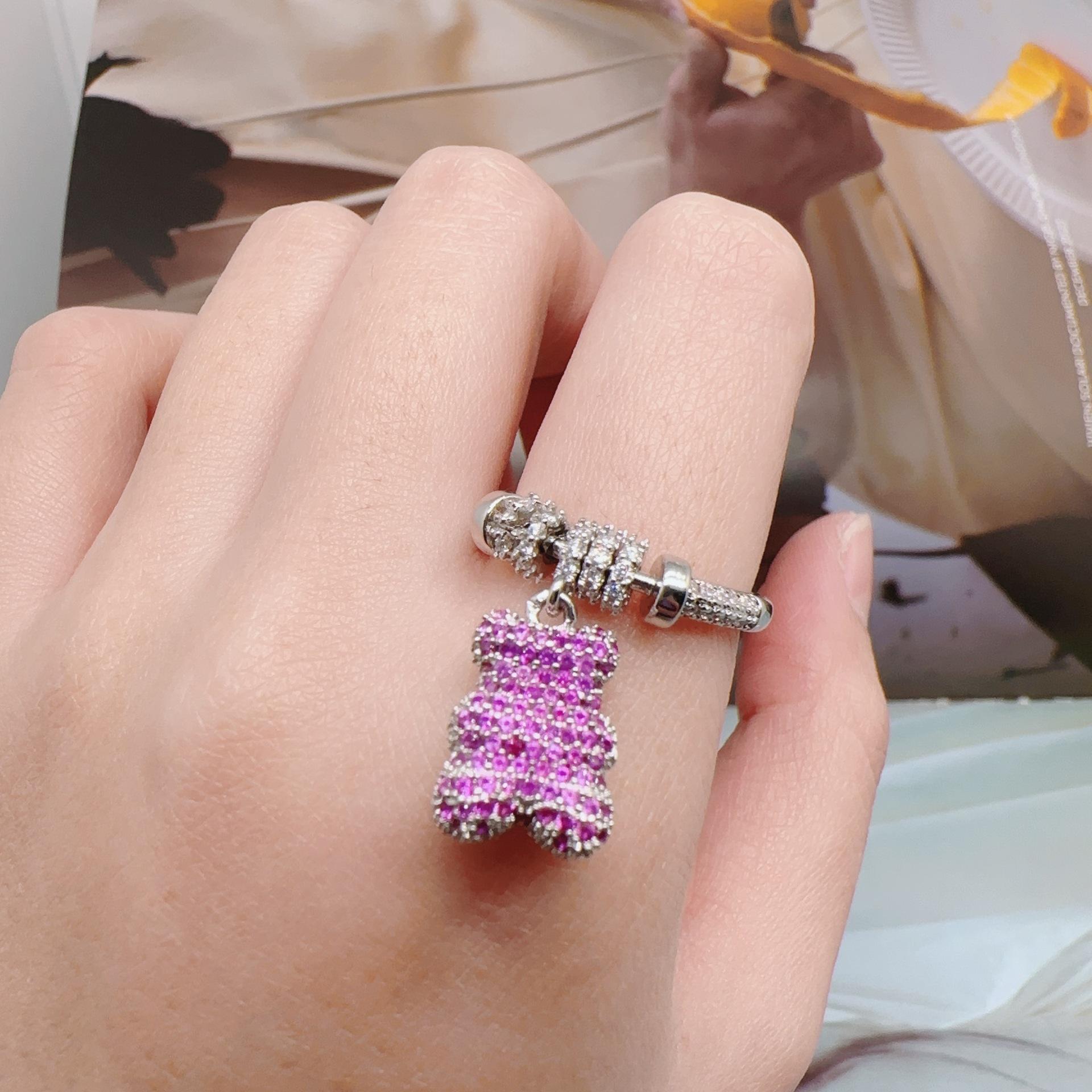 Cool Bear nuevo estilo lujo ligero alta gama micro incrustado circonita anillo de oso de doble cara personalidad nicho temperamento anillo abierto femenino