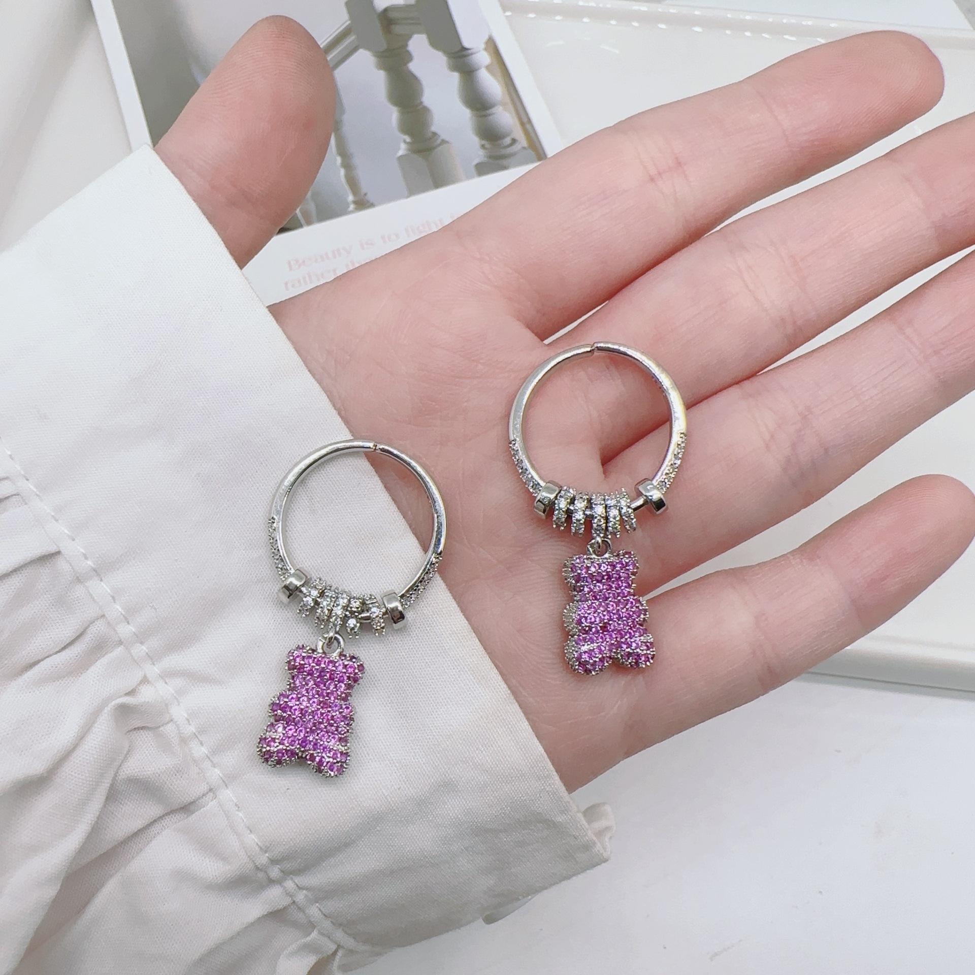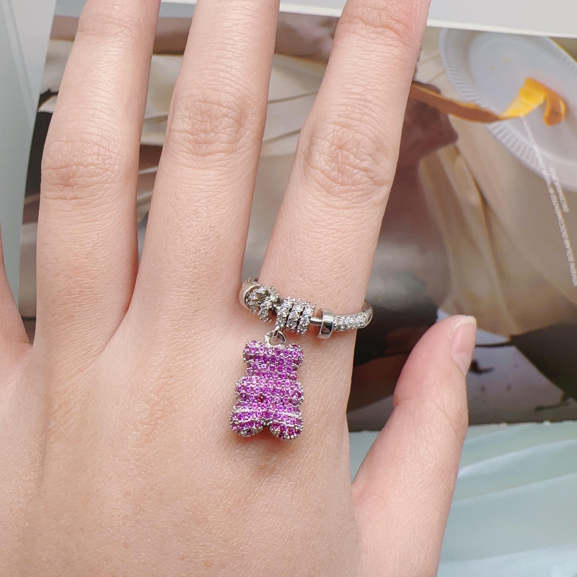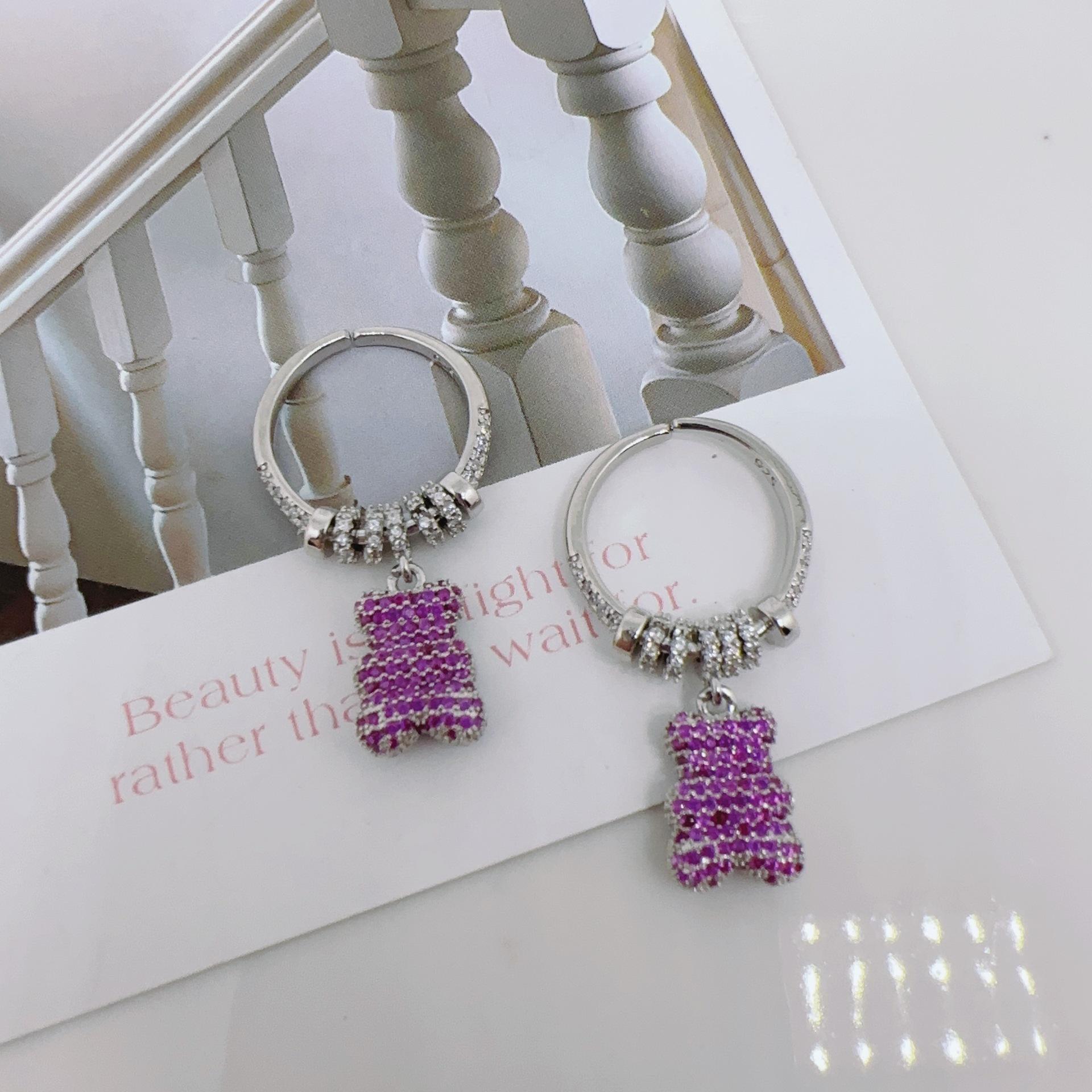 Cool Bear nuevo estilo lujo ligero alta gama micro incrustado circonita anillo de oso de doble cara personalidad nicho temperamento anillo abierto femenino