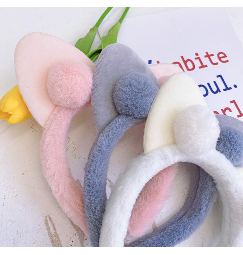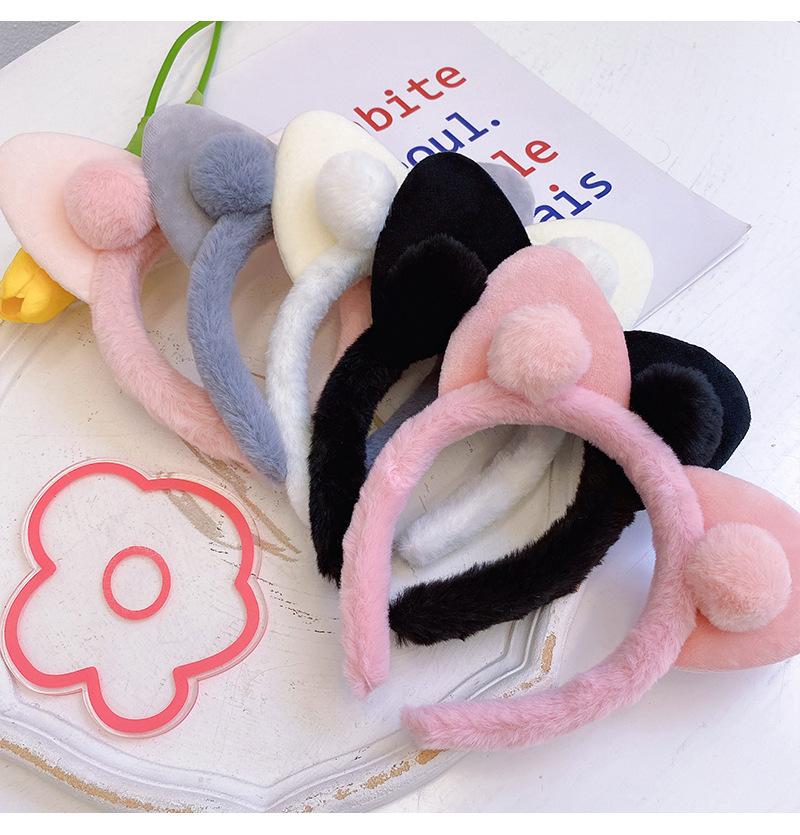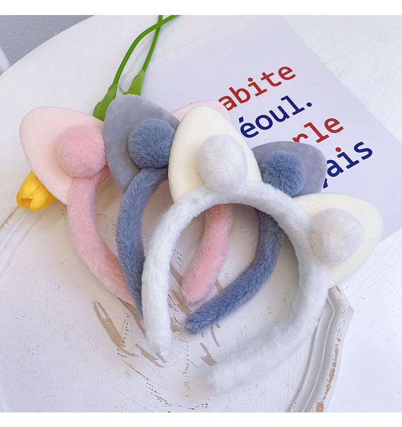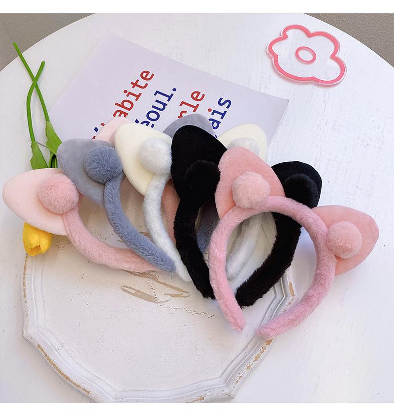Diadema con orejas de gato de peluche para mujer, sencilla y combinable con todo, para el rostro, accesorios coreanos para el cabello de otoño e invierno.