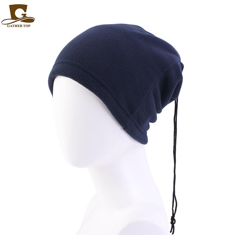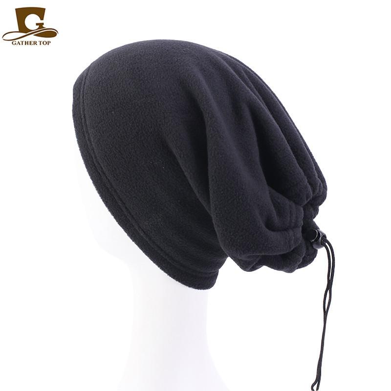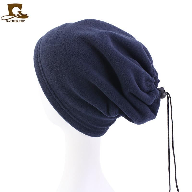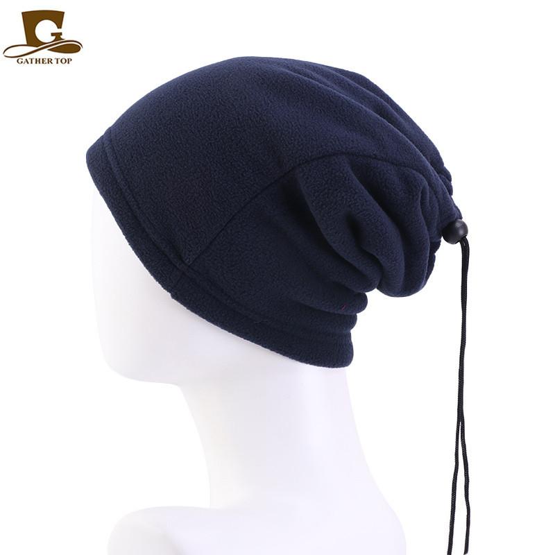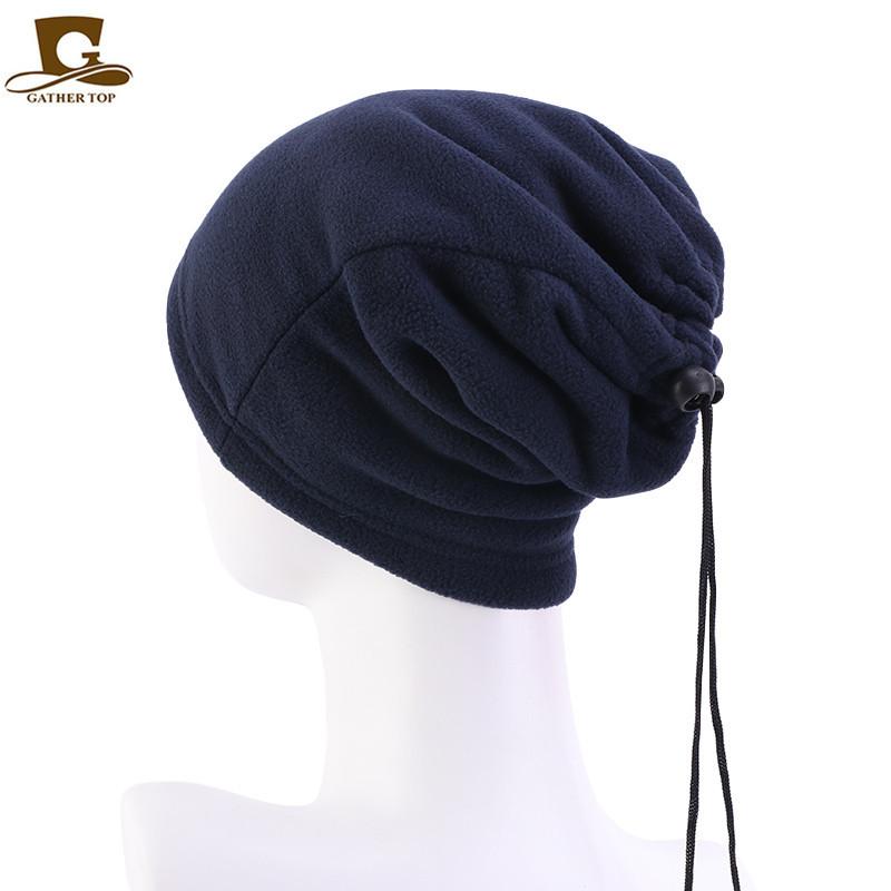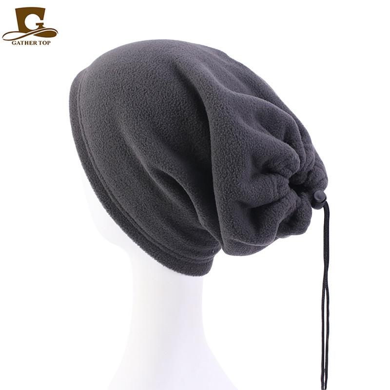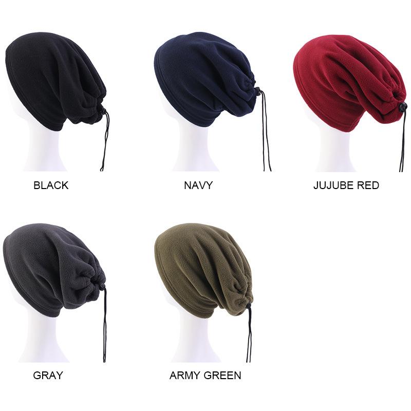 Deportes al aire libre cuello polar doble capa forro polar cordón ajustable bufanda multifuncional máscara a prueba de frío sombrero
