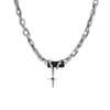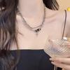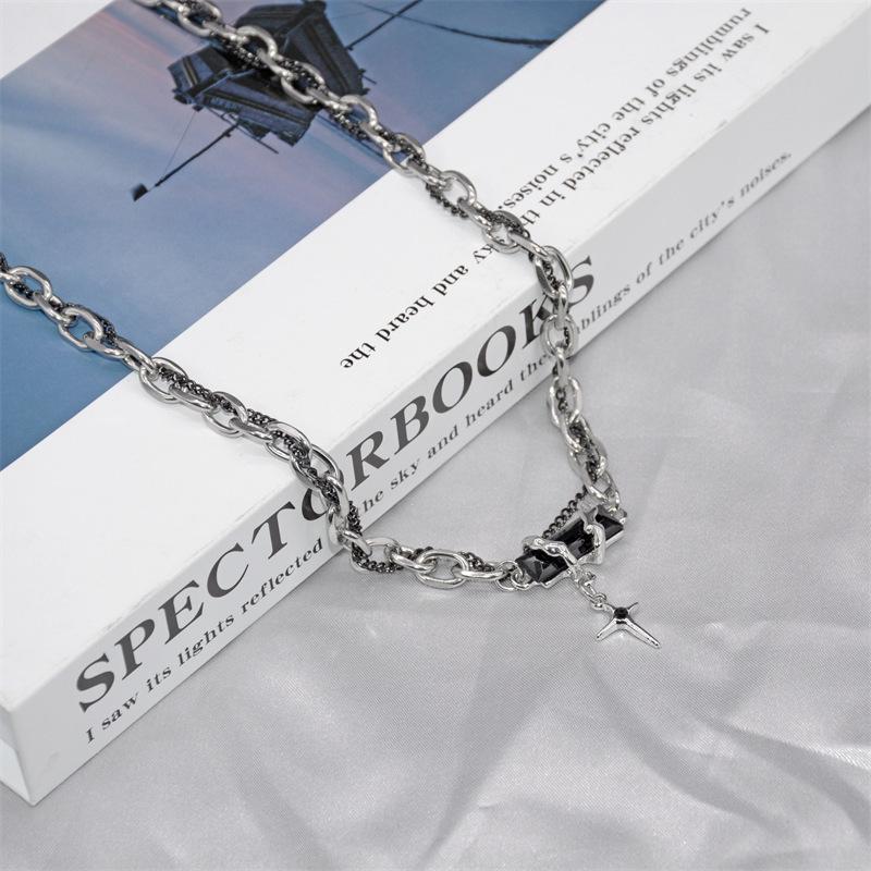 Collar con diseño de nicho, con gemas negras y punto de cruz, de alta calidad, de acero de titanio, cadena de clavícula moderna para hombres y mujeres.